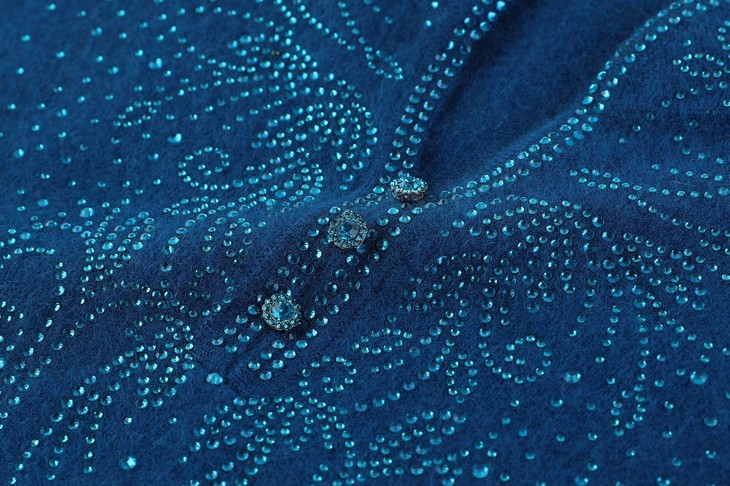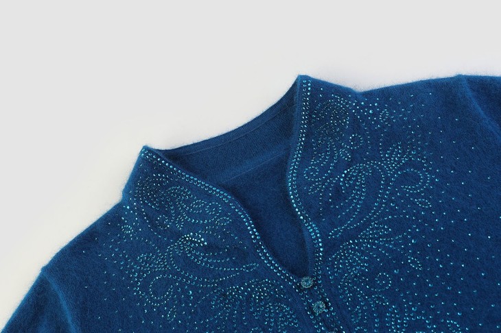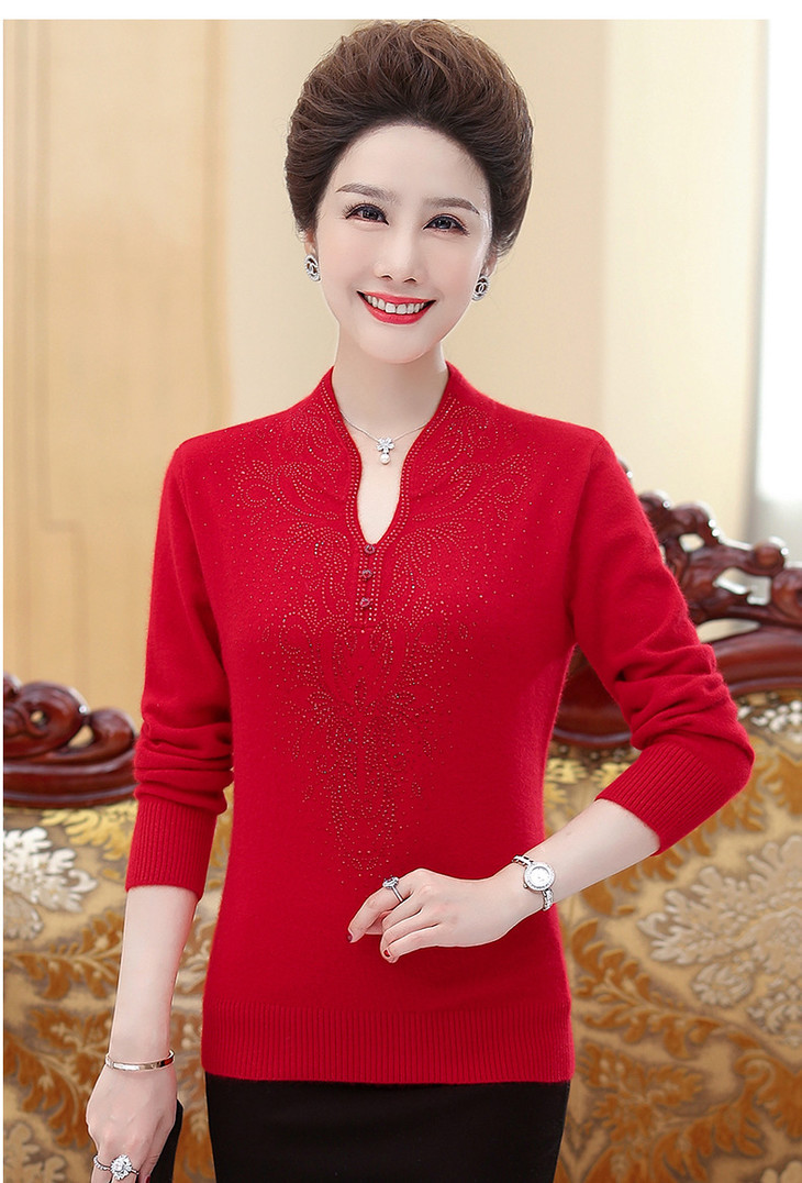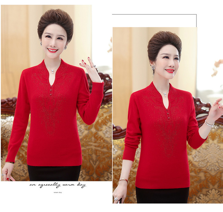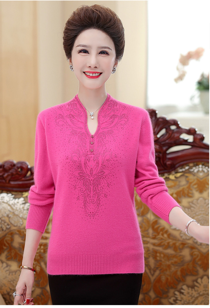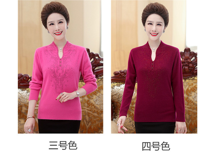 QY-JING292秋冬新款时尚V领烫钻妈妈装貂绒打底衫