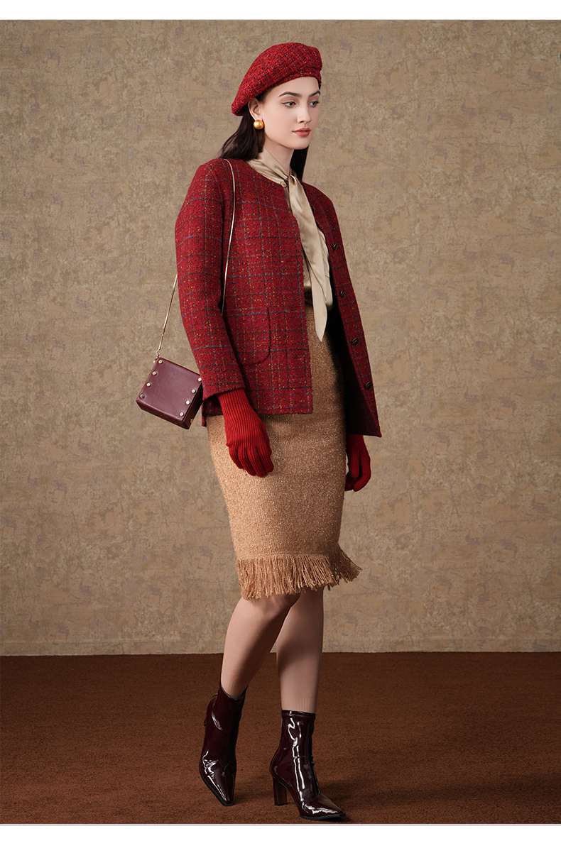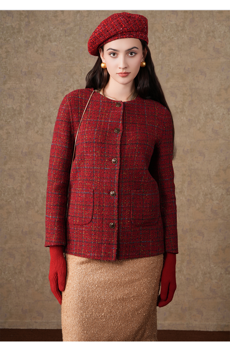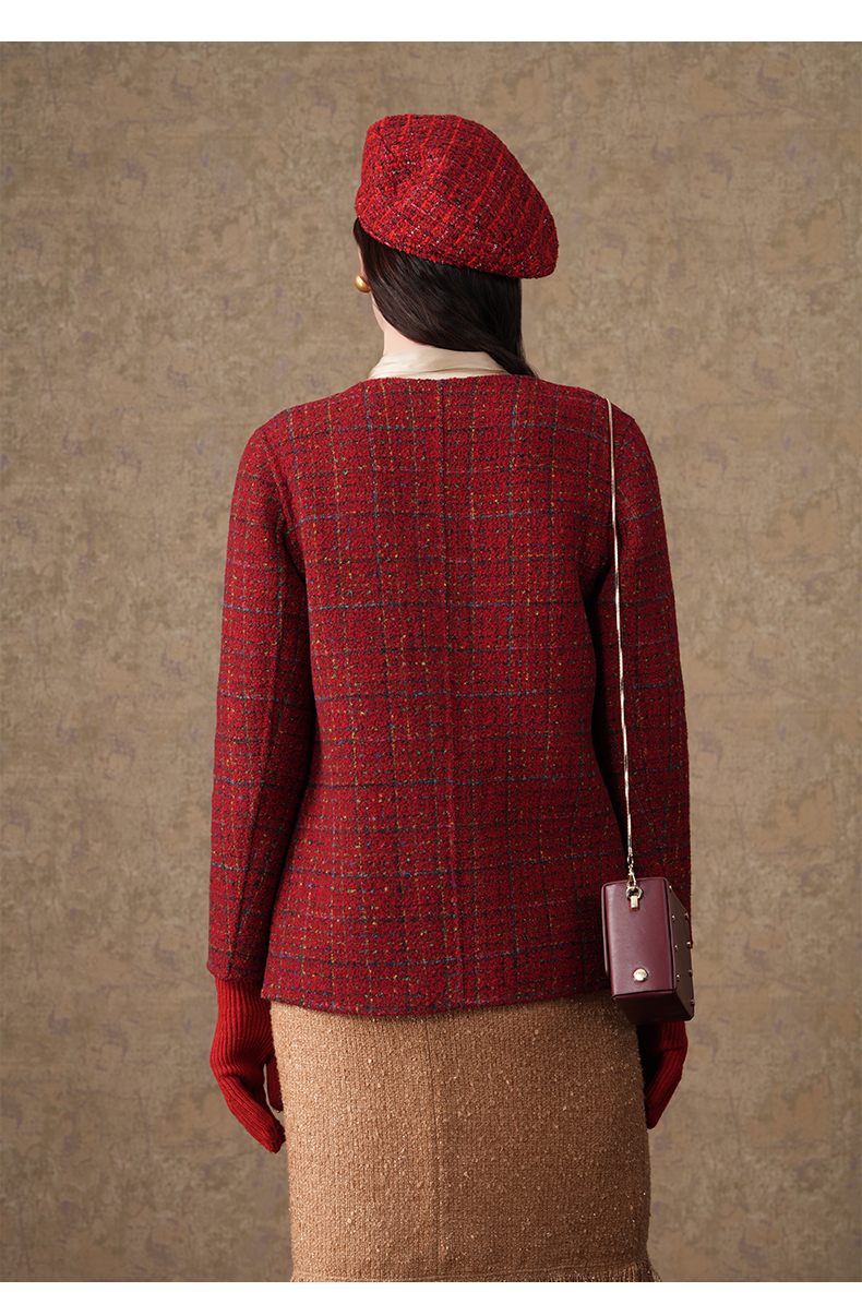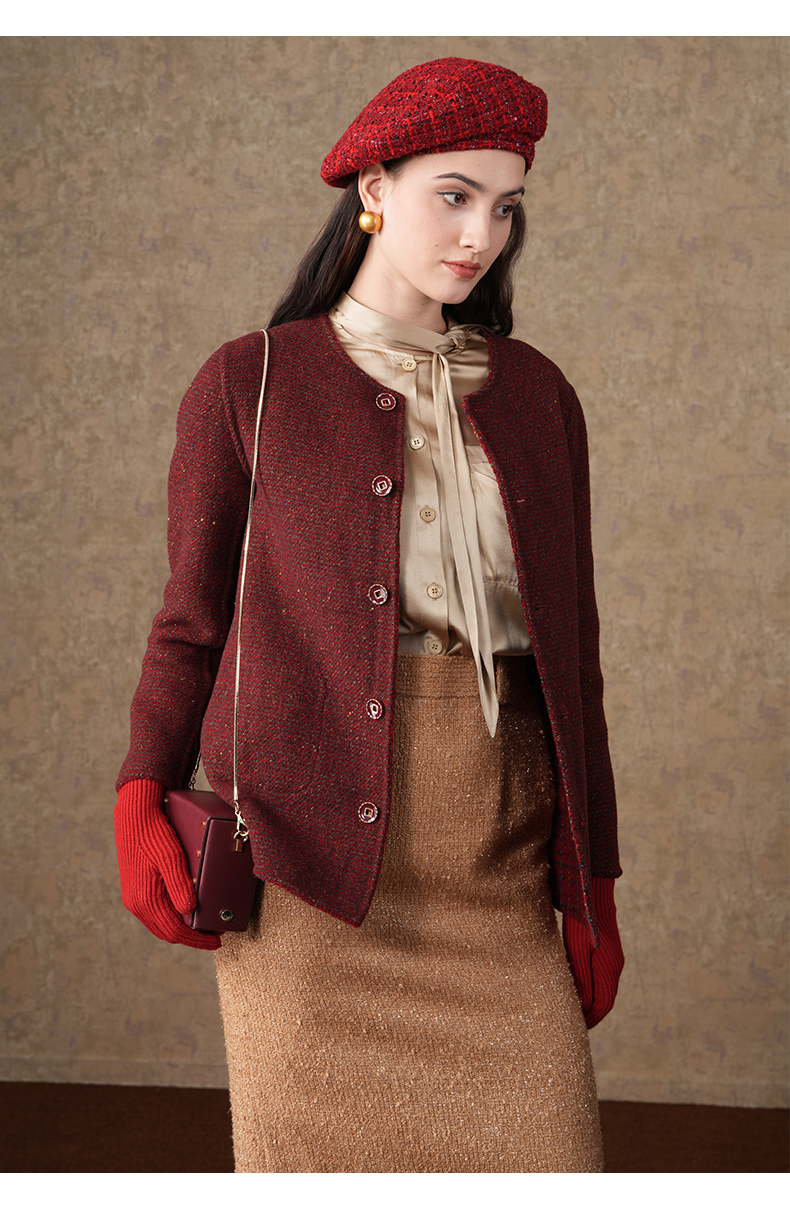 乔万尼新款羊毛大衣短外套女高级感小香风双面穿ET4B861
