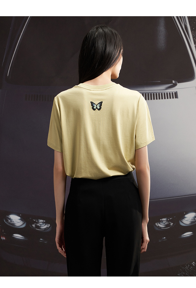 VIMAGE纬漫纪夏季新款宽松版简约舒适透气印花显瘦T恤上衣女V1702314