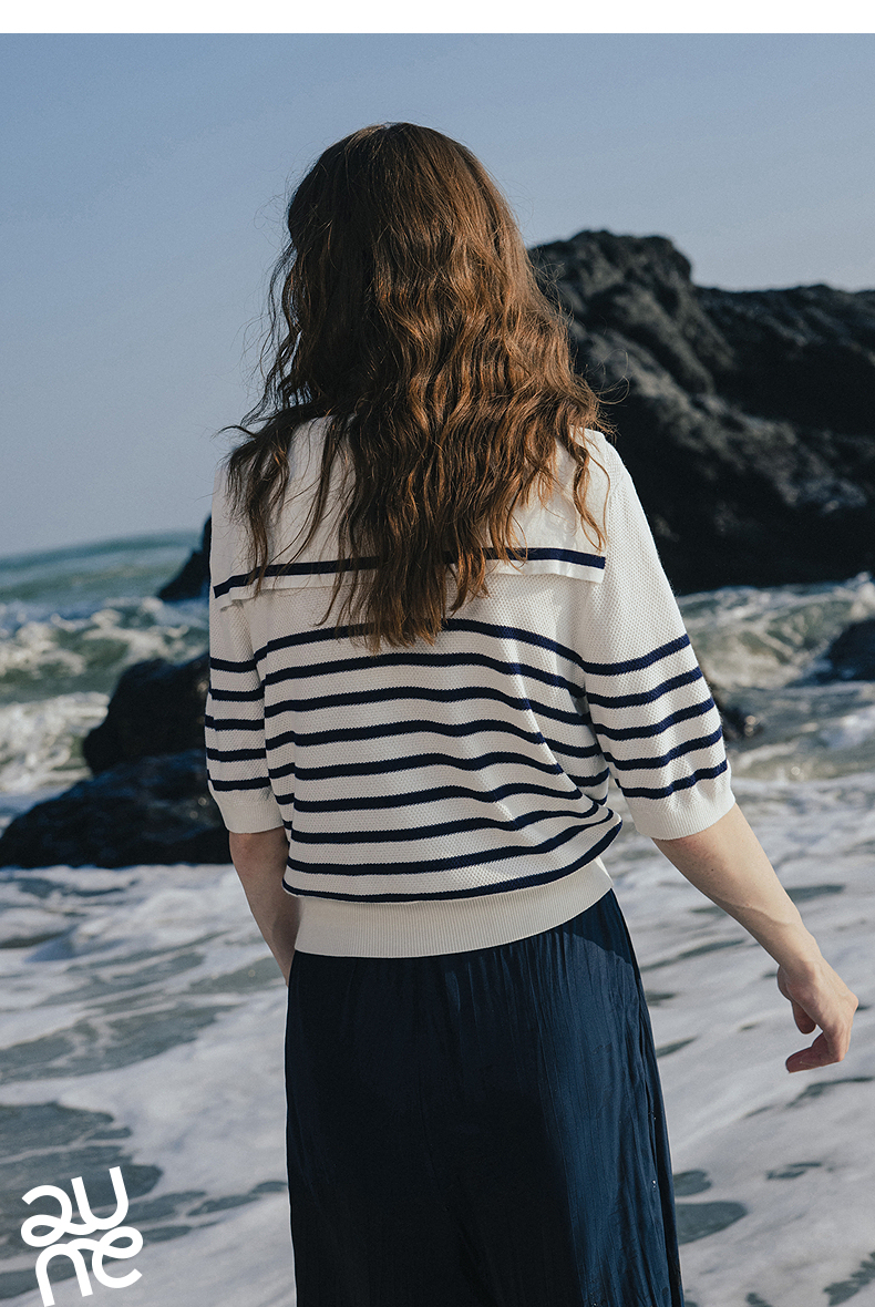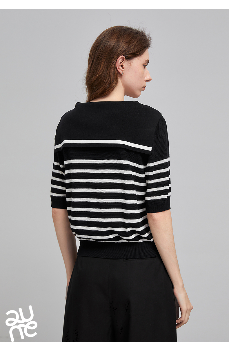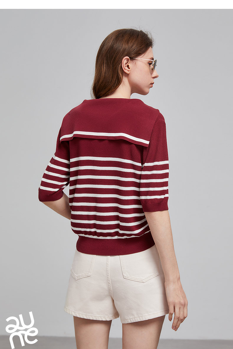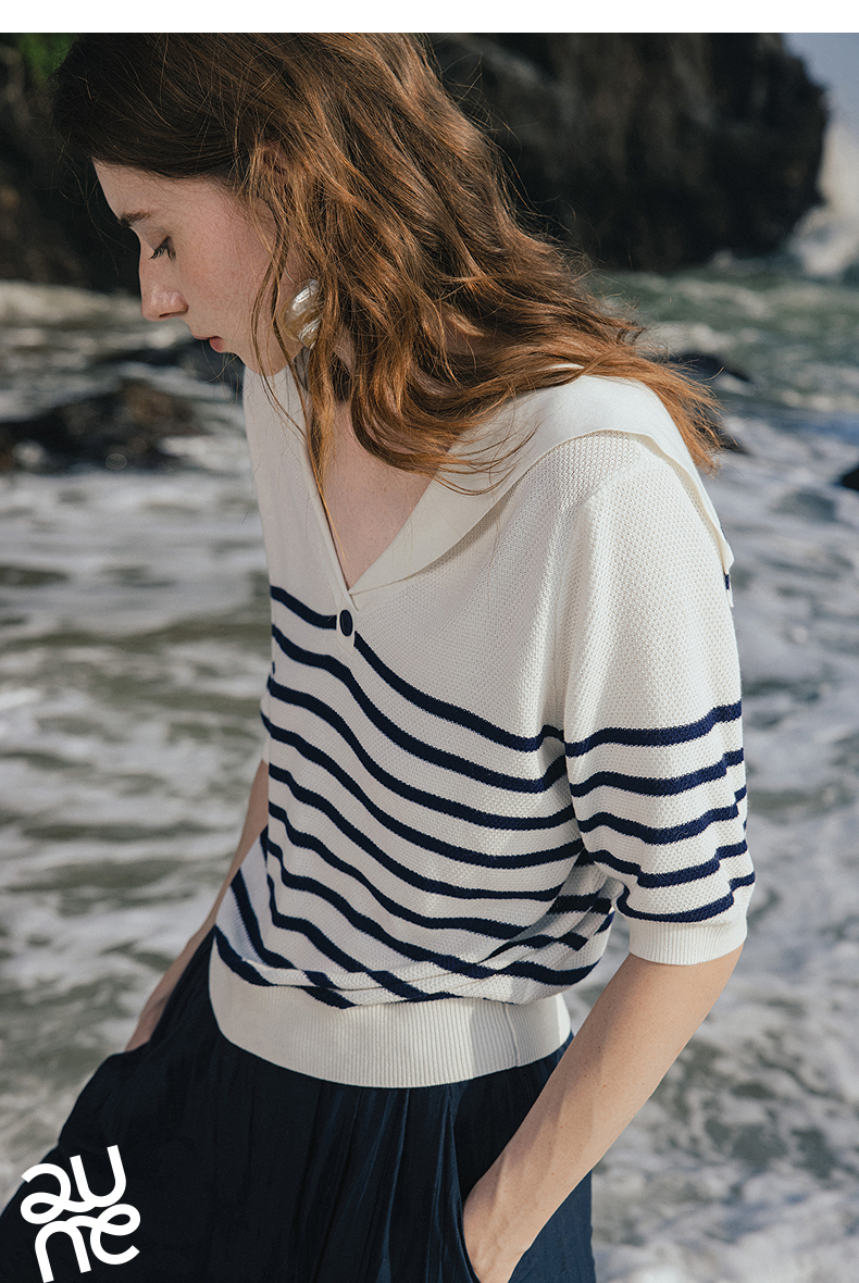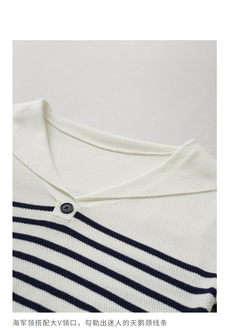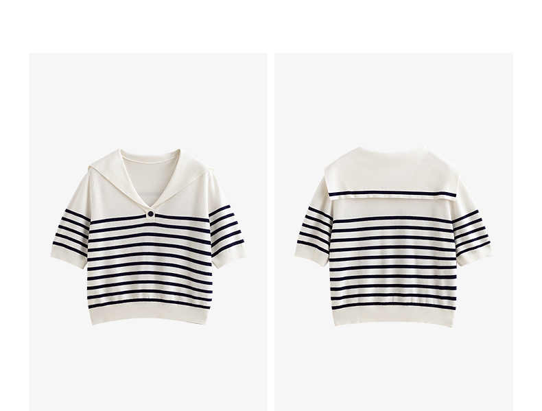 初语航海系海军领条纹针织衫女2026夏季新款短款小衫休闲百搭上衣