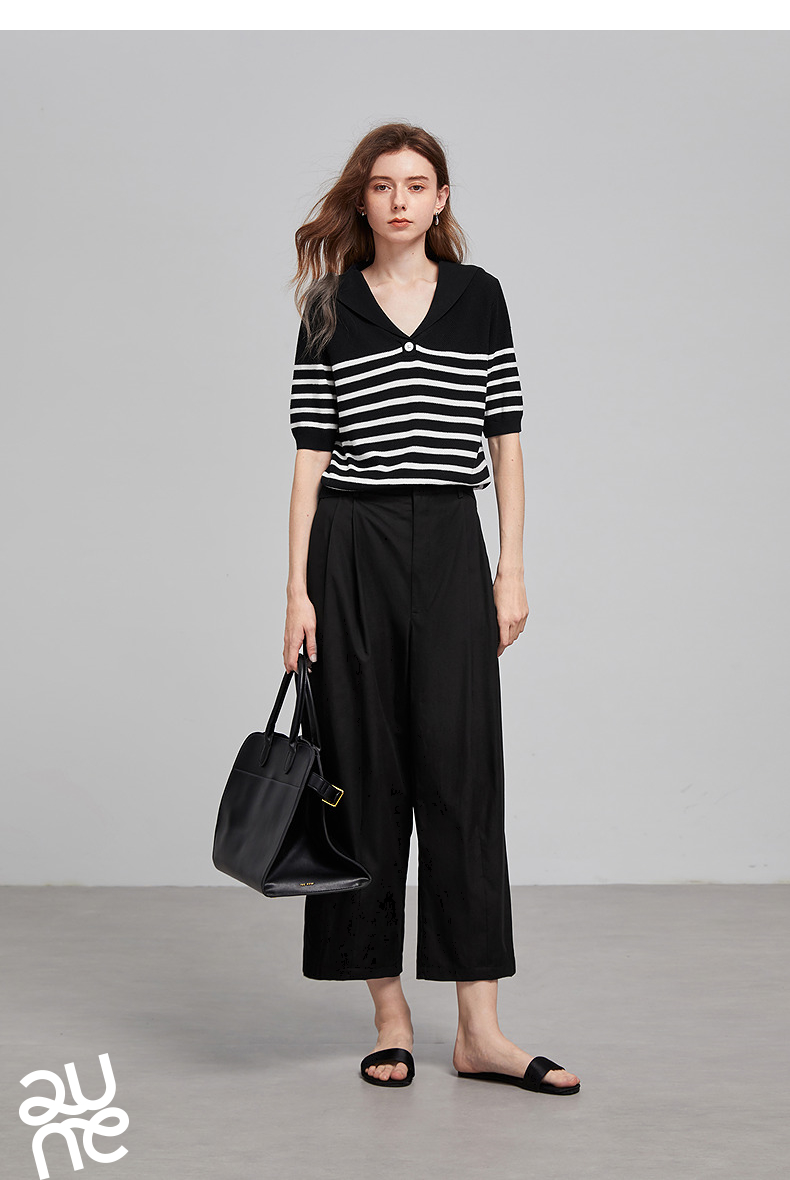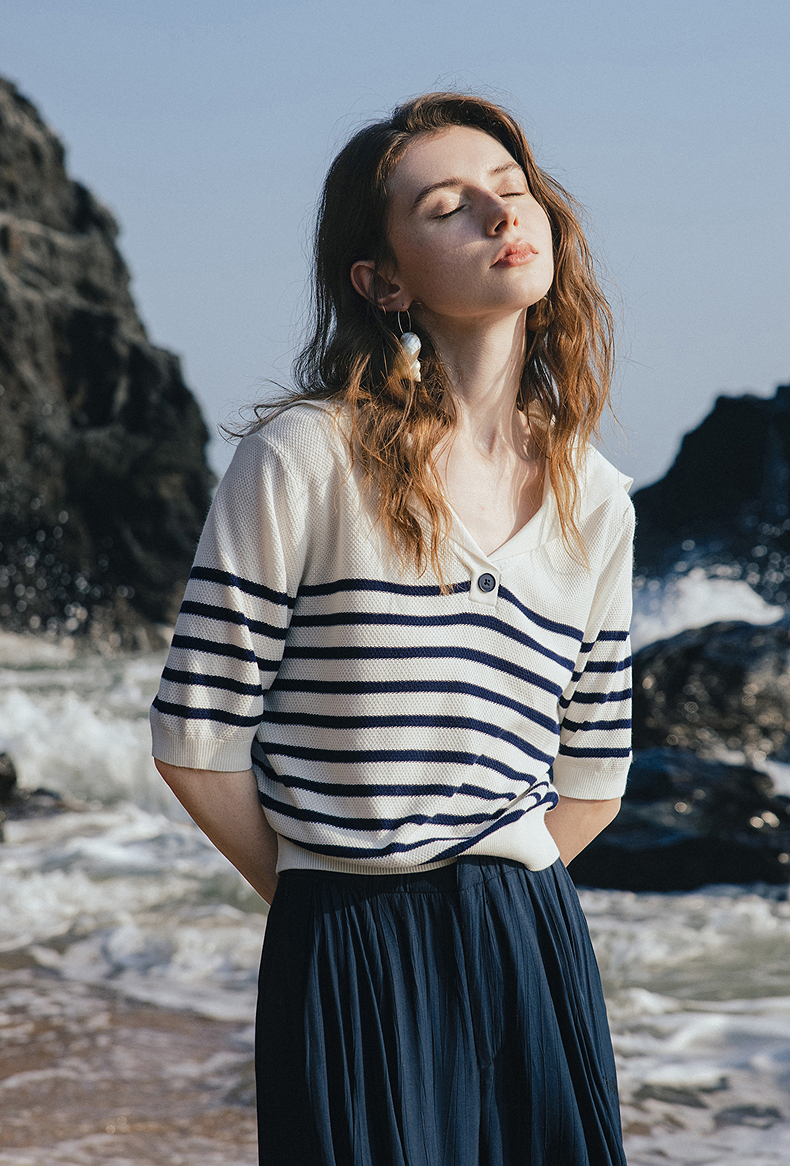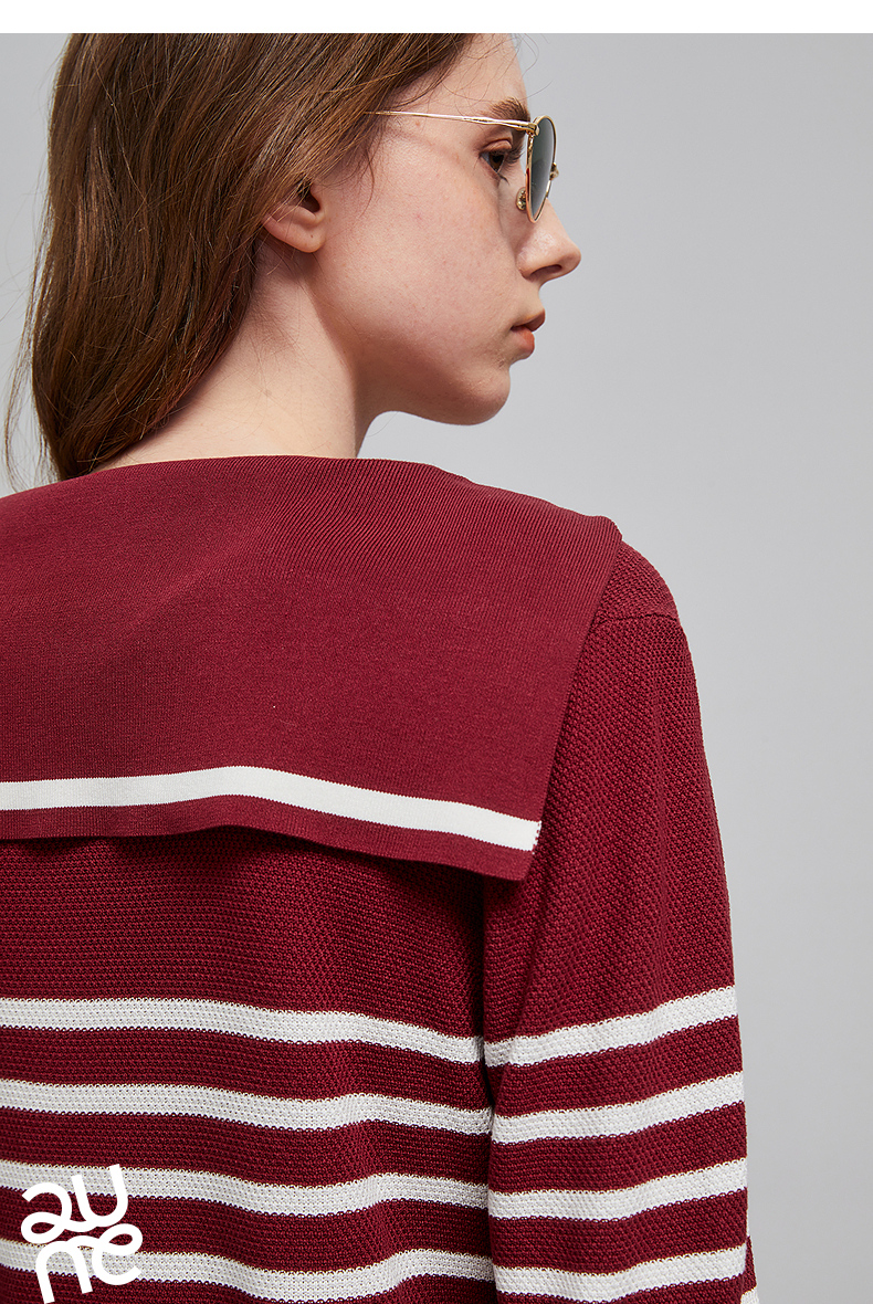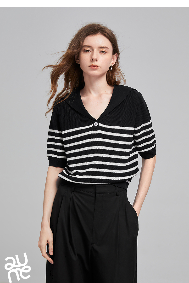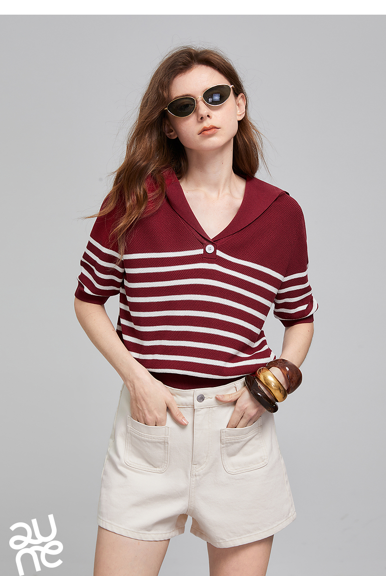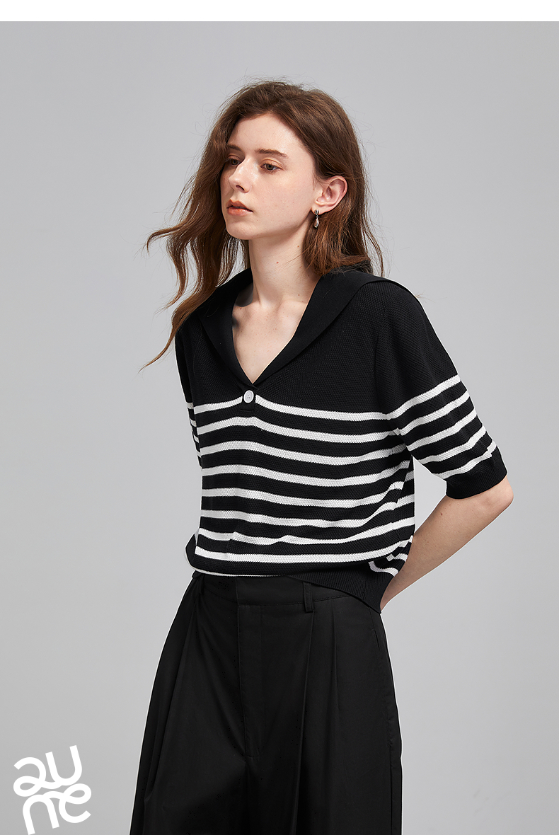 初语航海系海军领条纹针织衫女2026夏季新款短款小衫休闲百搭上衣