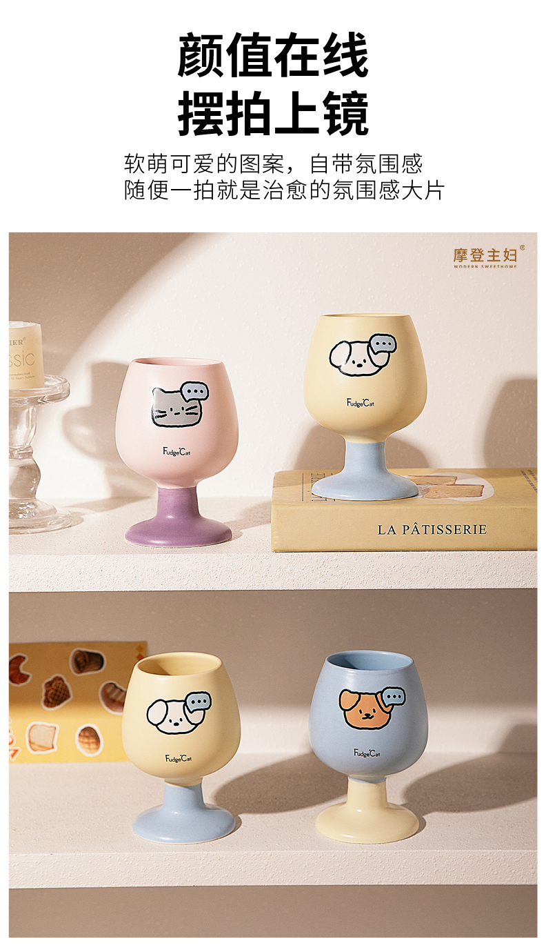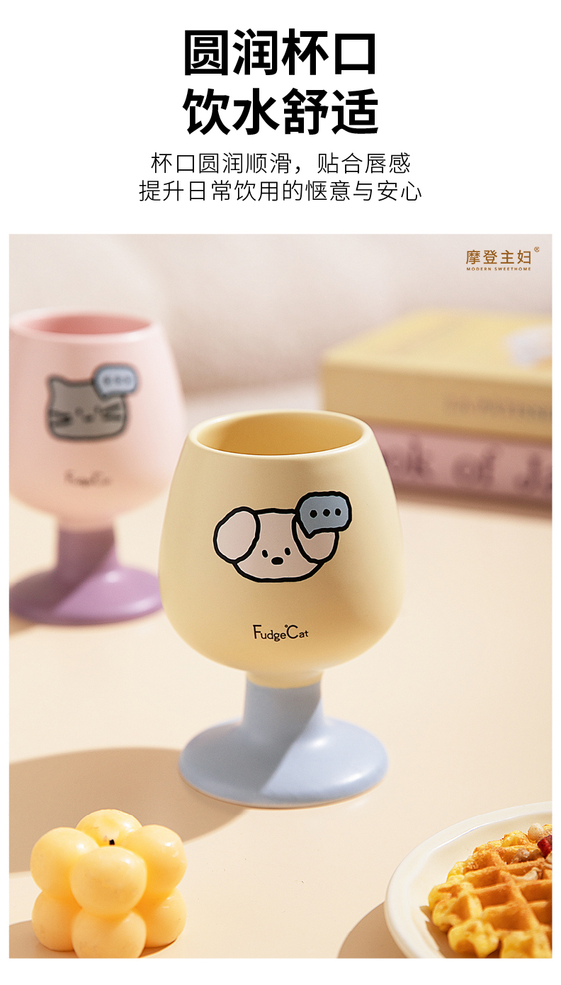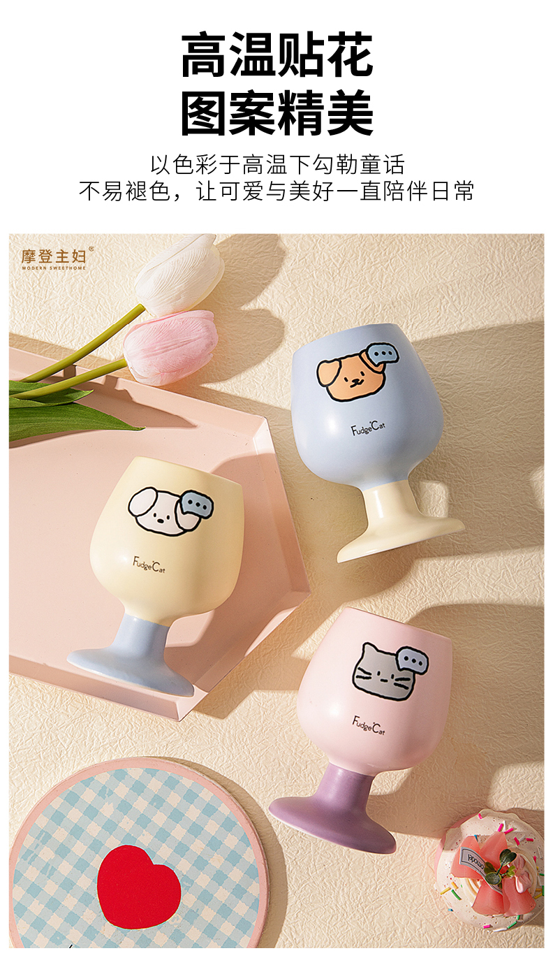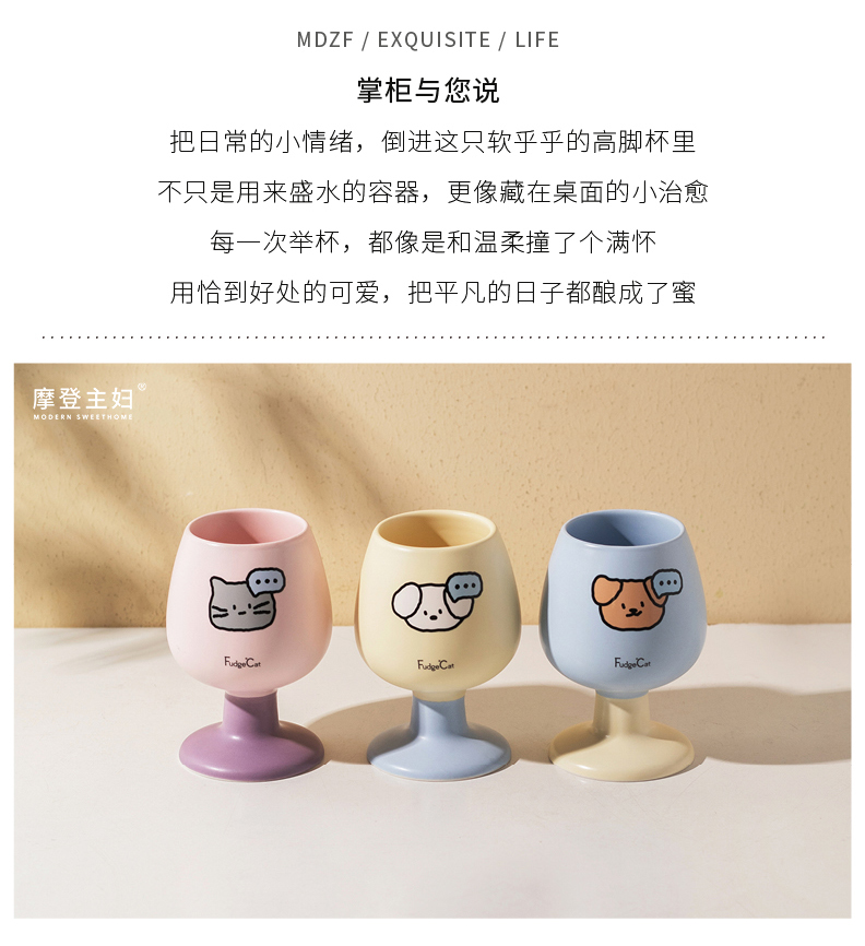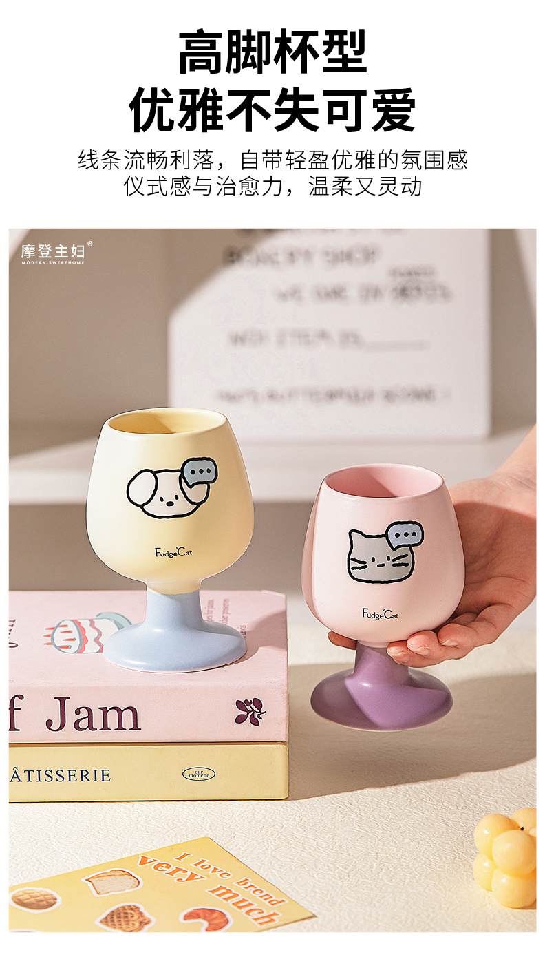 摩登主妇陶瓷马克杯高脚杯家用喝水杯可爱甜品酒杯漂亮杯子咖啡杯