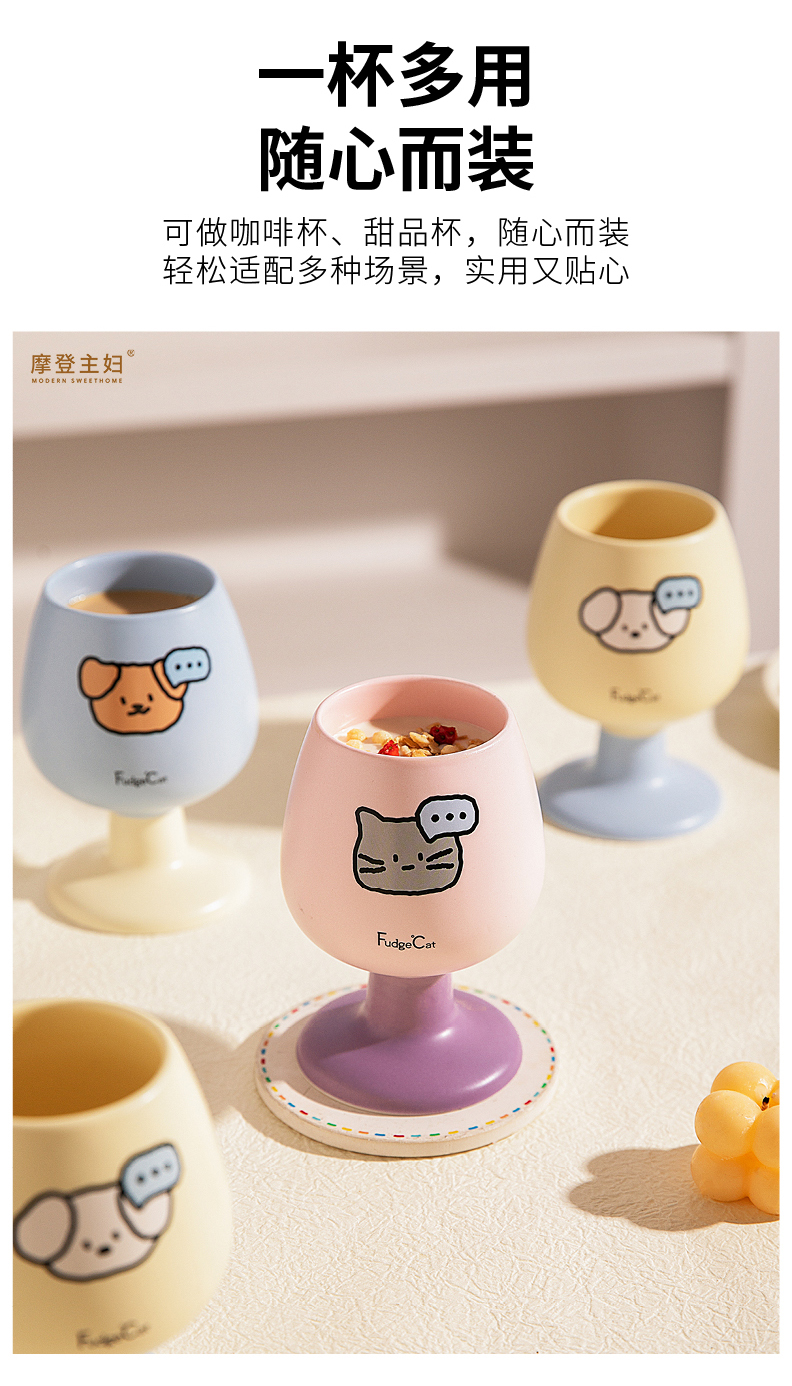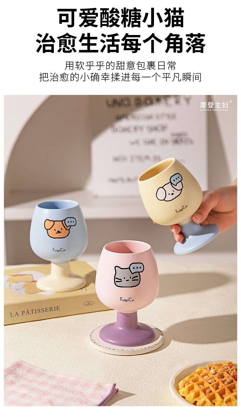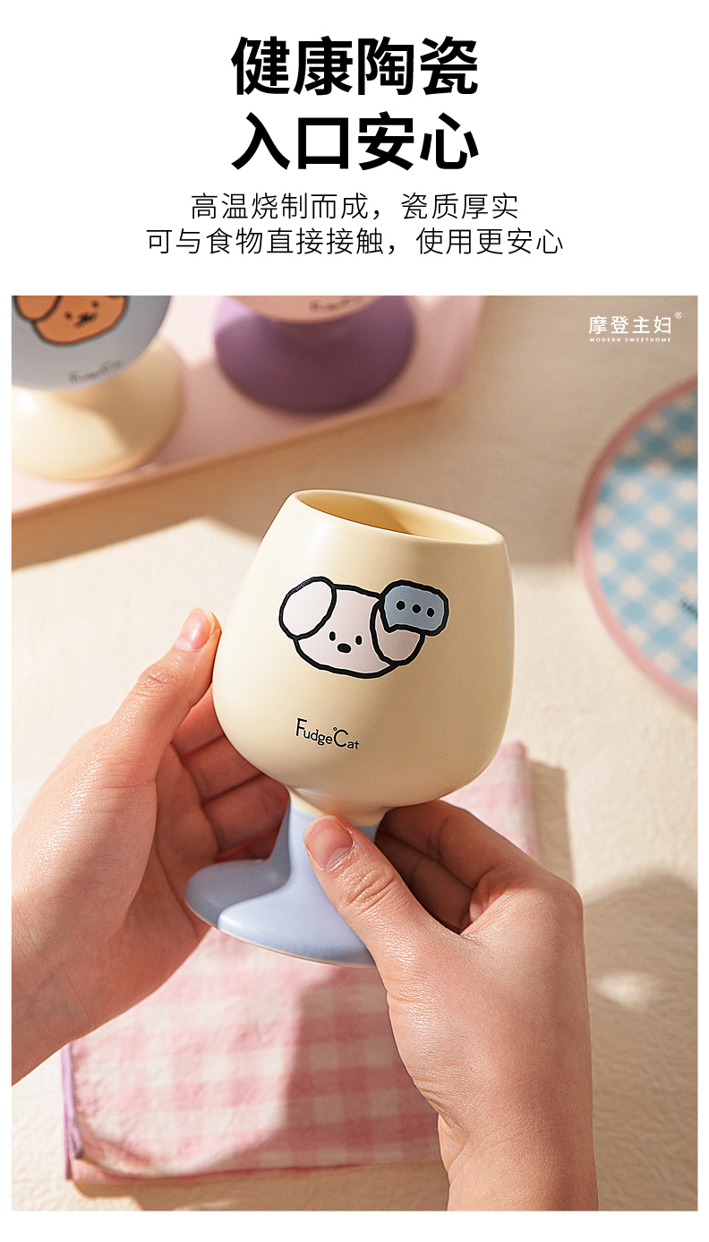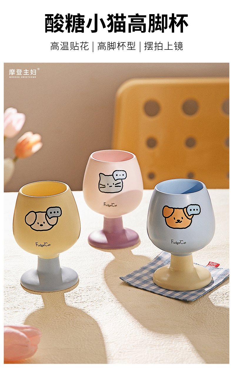 摩登主妇陶瓷马克杯高脚杯家用喝水杯可爱甜品酒杯漂亮杯子咖啡杯