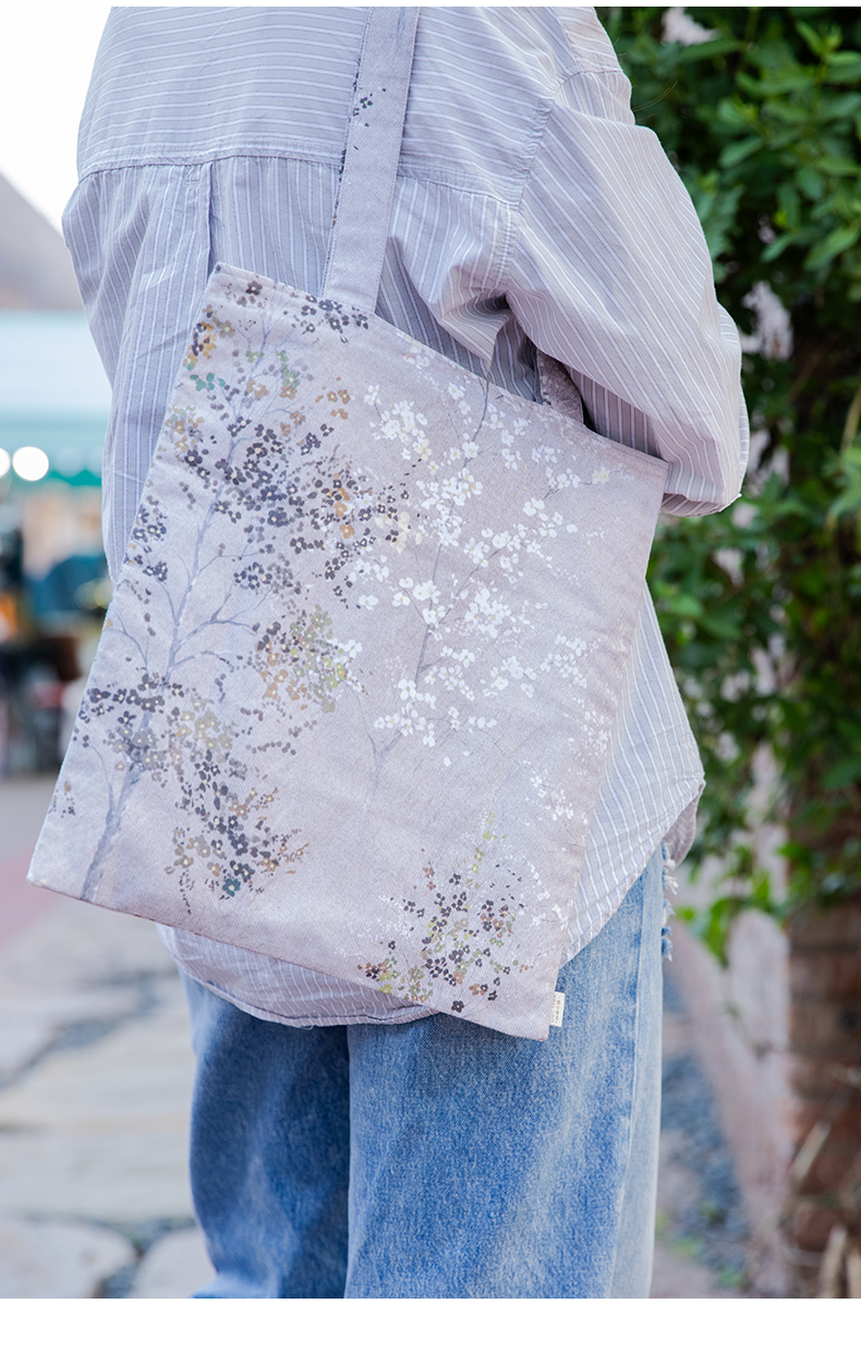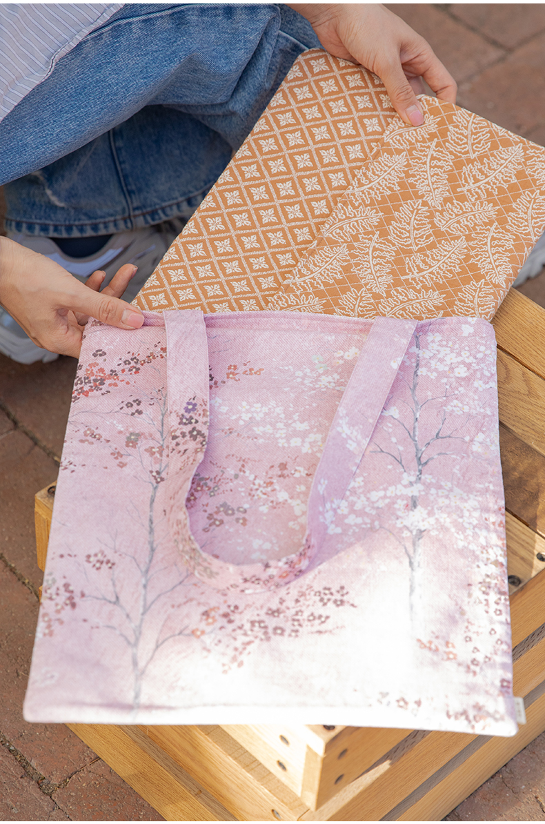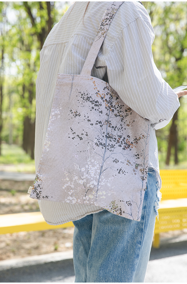 手绘树帆布手提袋环保购物袋买菜布袋子折叠便携结实耐用单肩包