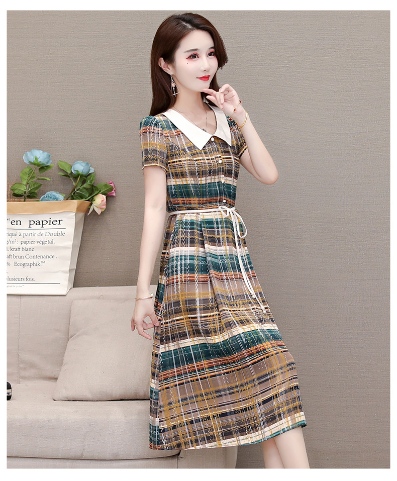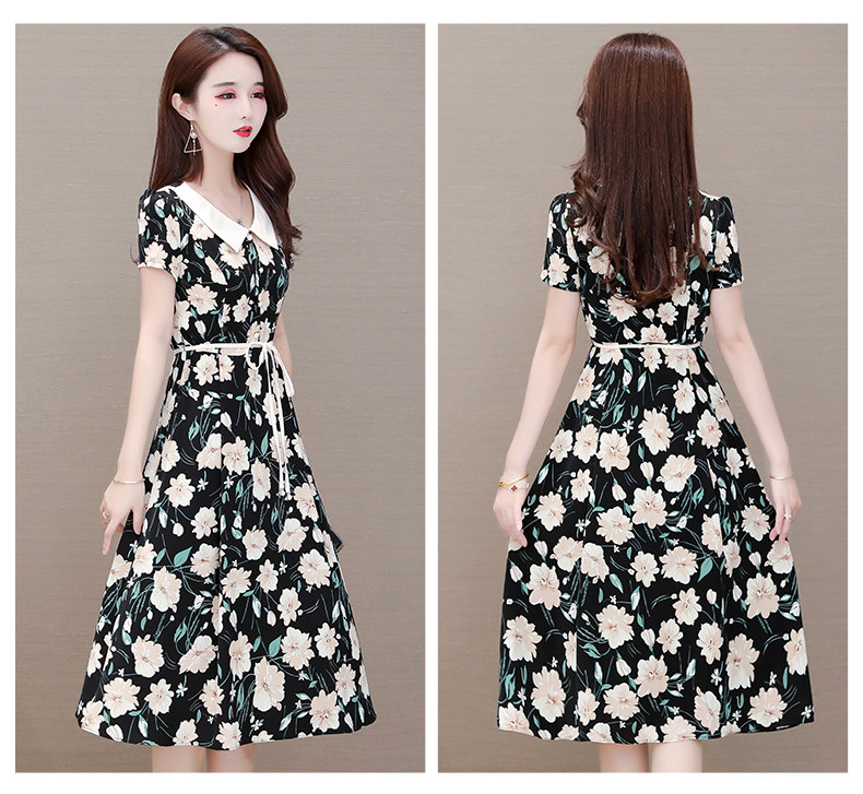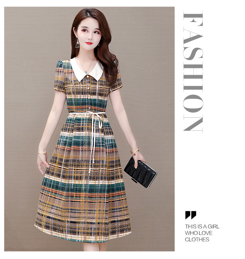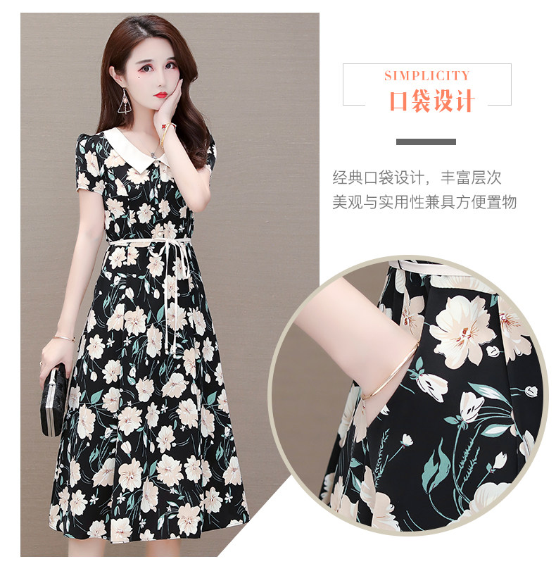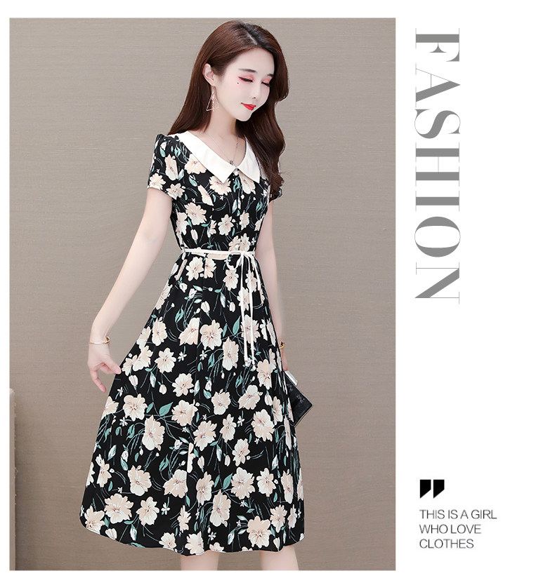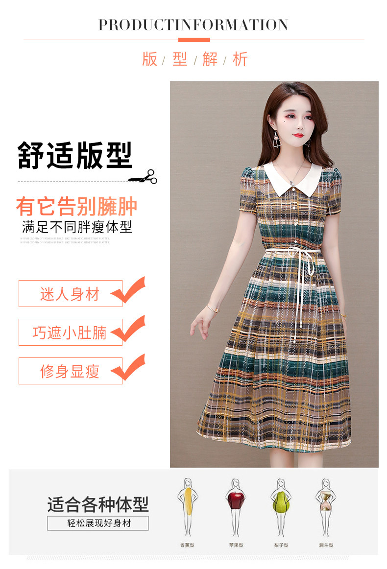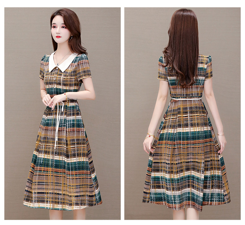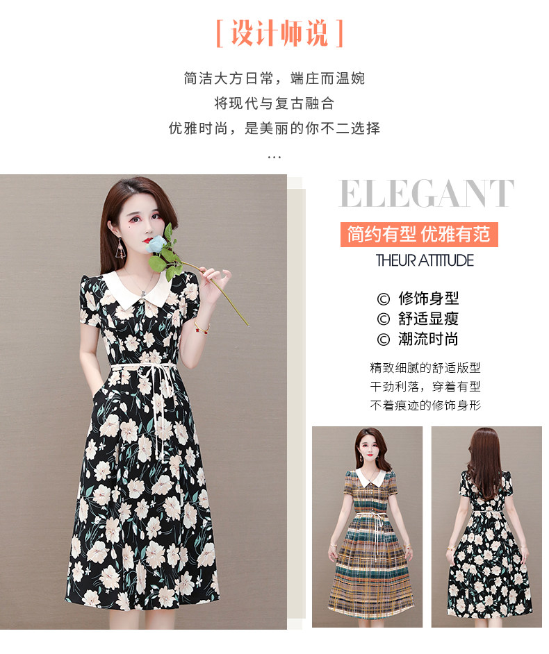 MQ-1227-2017夏新款韩版修身系带时尚拼接娃娃领过膝a字裙YY