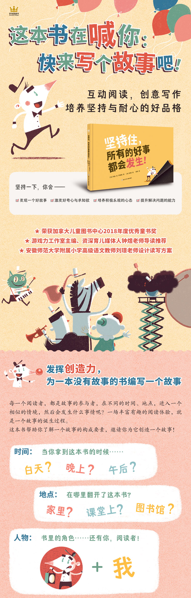 坚持住,所有的好事都会发生!:加拿大儿童图书中心2018年度童书奖;在有趣的互动阅读中,了解“故事的构成要素”,锻炼创意写作技巧