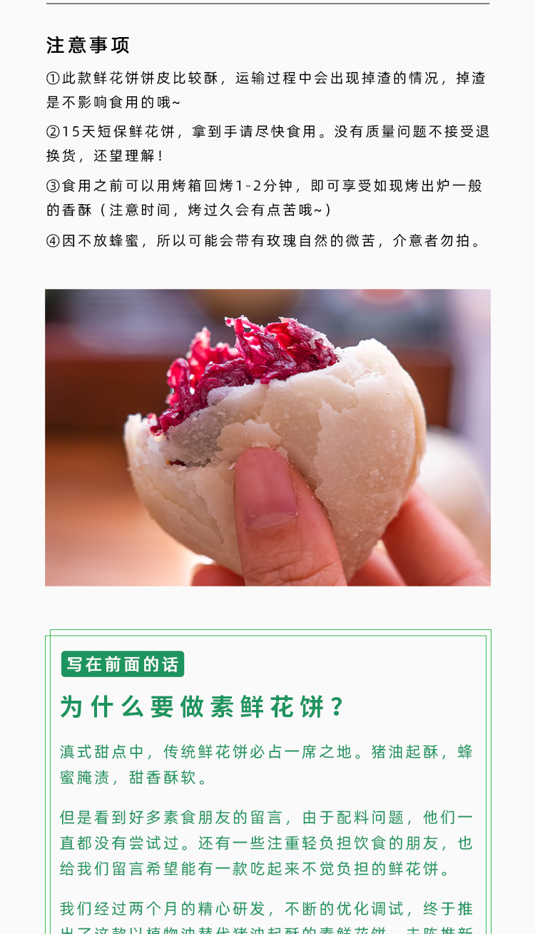 1、此款鲜花饼饼皮比较酥,运输过程中会出现掉渣的情况,掉渣不影响食用哦~