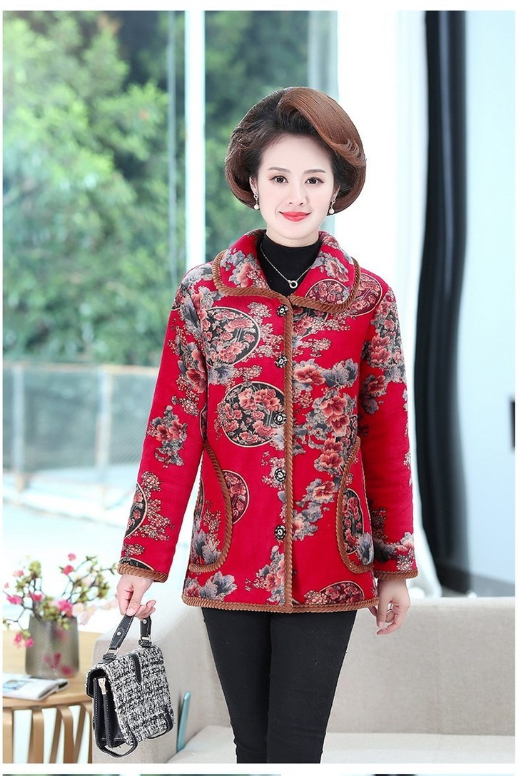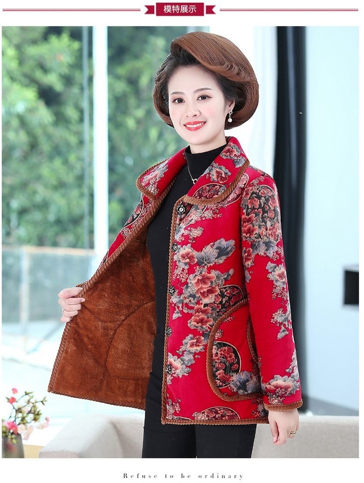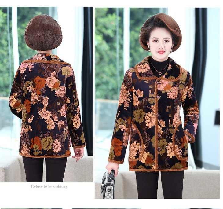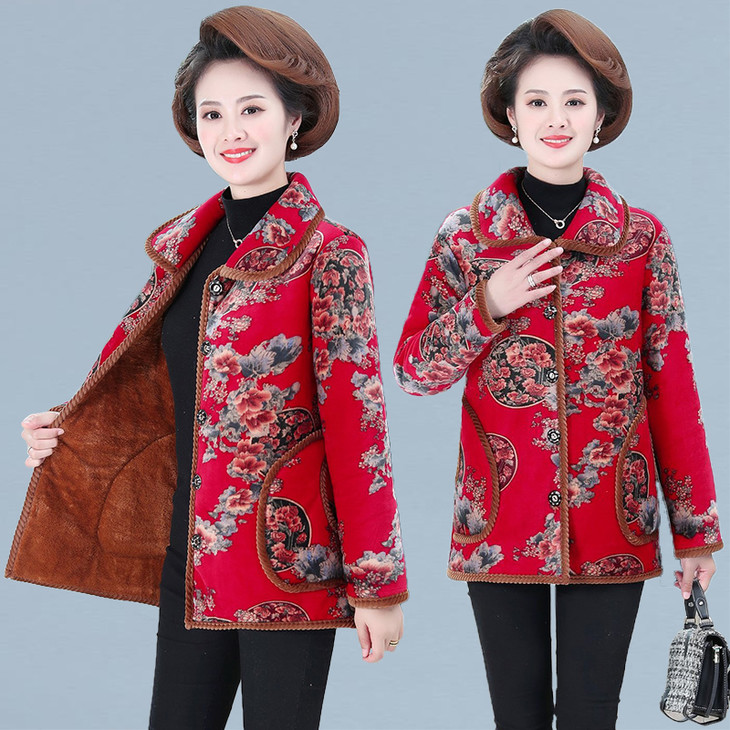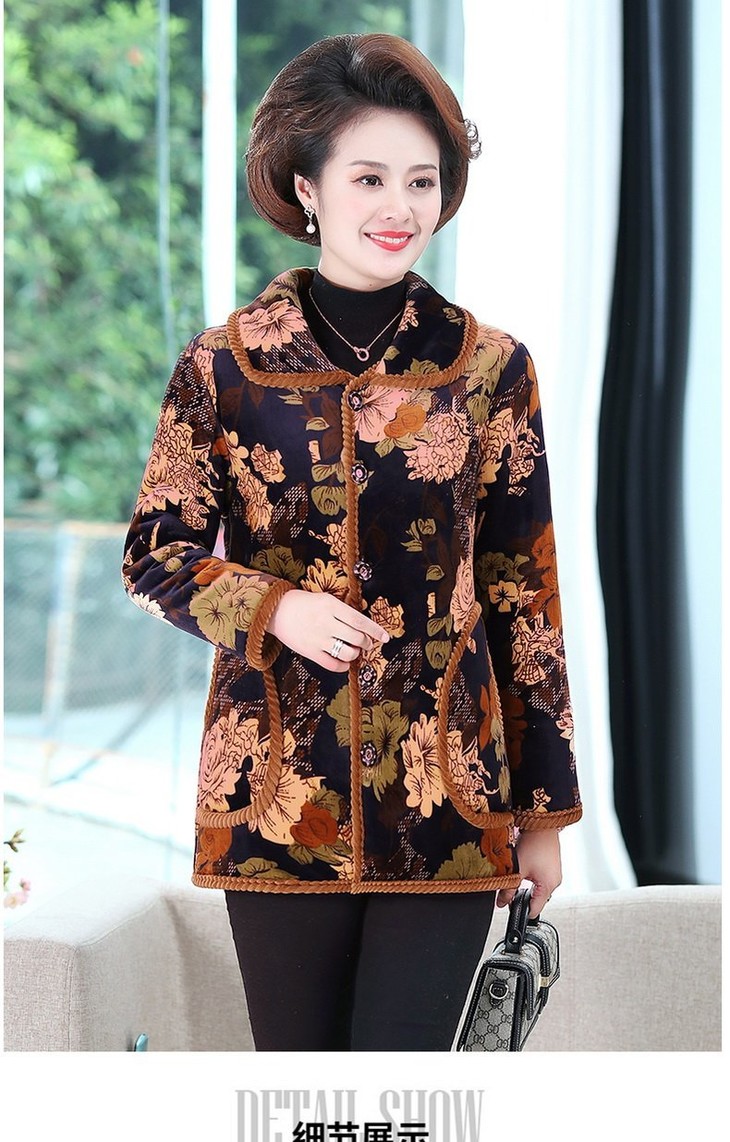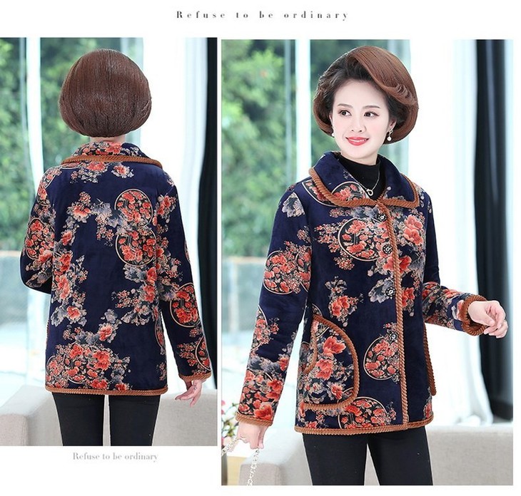 W-589新款中老年轻薄花色秋冬装棉衣外套加绒保暖棉服