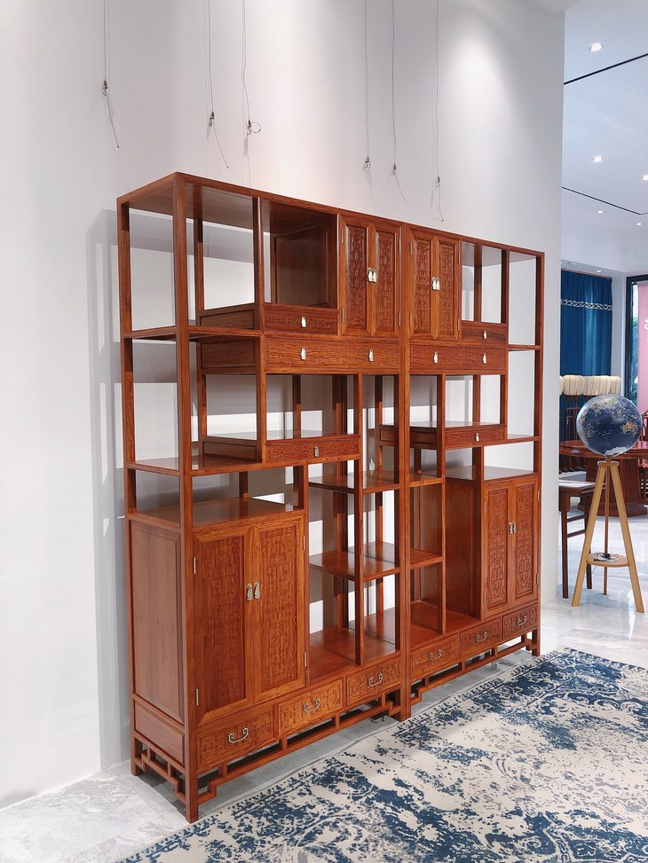 缅甸花梨【夔龙纹博古架两件套】