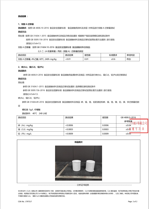 罐头专门选择的无双酚A涂层的马口铁,并且做了多项重金属检测,砷、镉、铅均符合食品接触材料标准。食材安全,包装材料也严格把关。