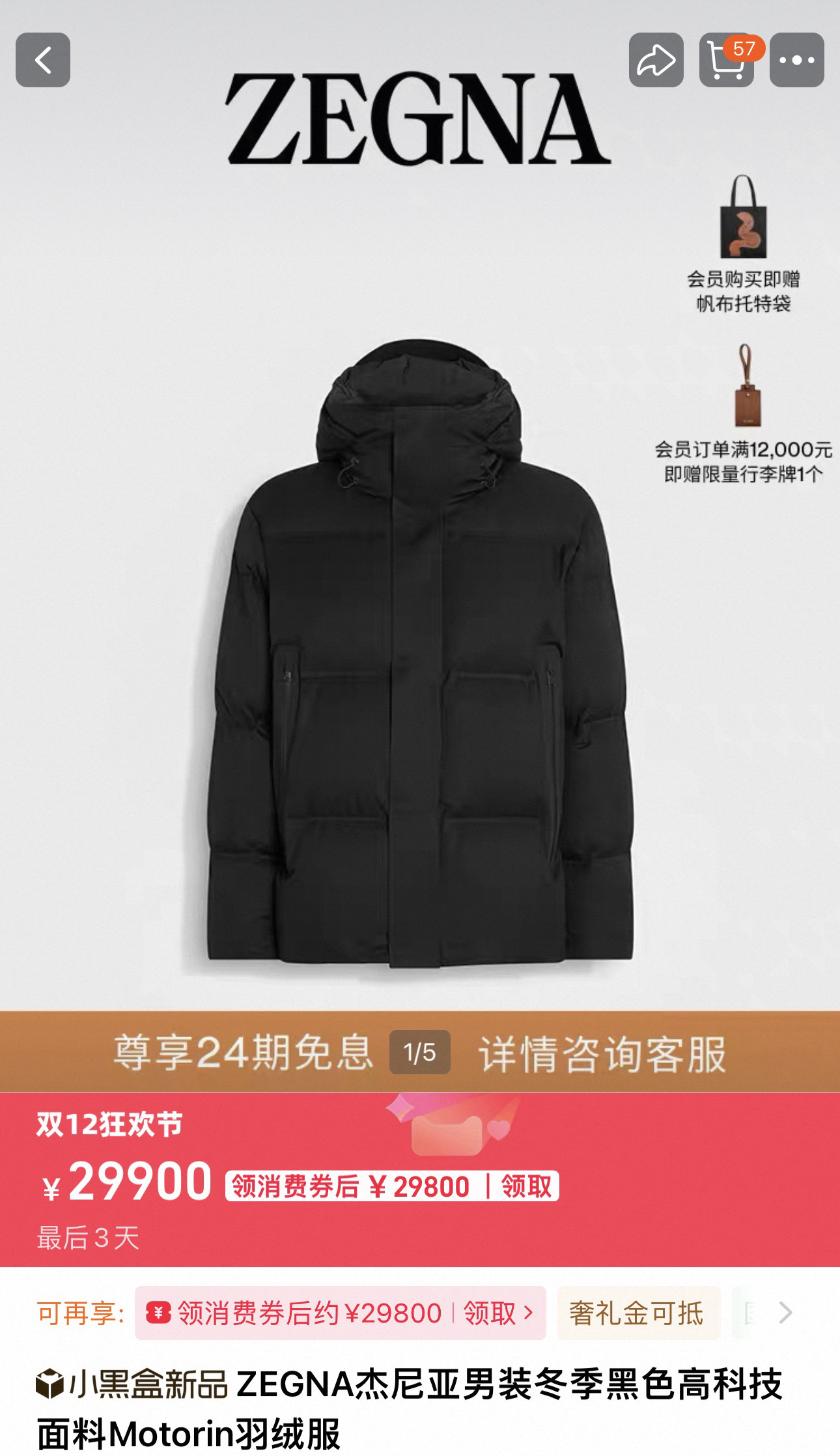 顺丰包邮 贸易公司订单剩余 纯原 25冬季重磅新款!原单正品杰尼亚Motorin 男士连帽羽绒服~官网售价29900 只有黑色 无吊牌 留洗标 自留送人都不影响,倾心推荐,全体主推!