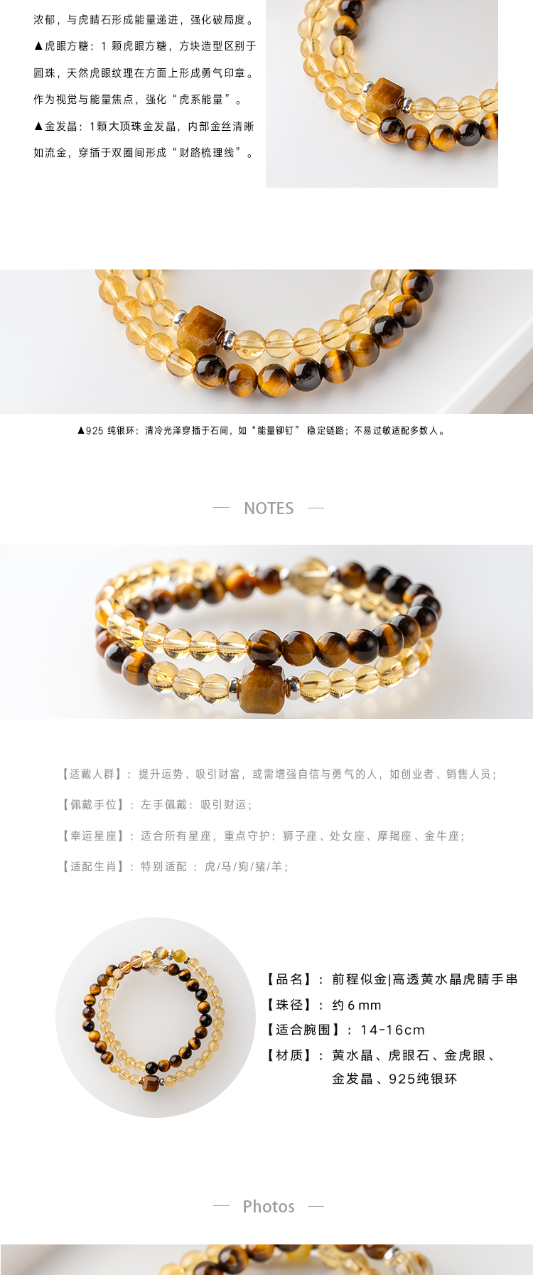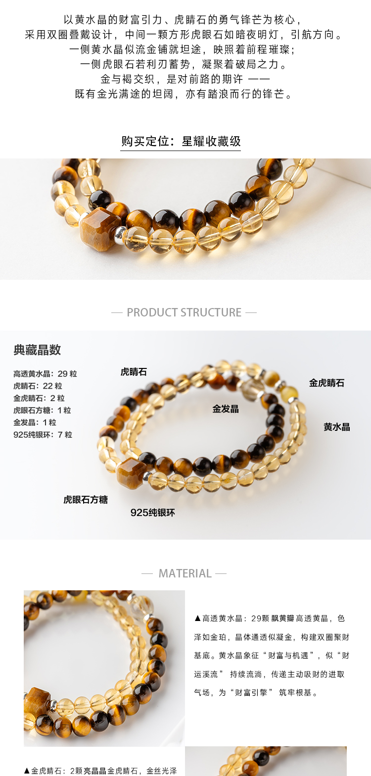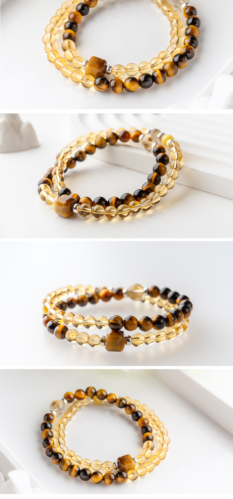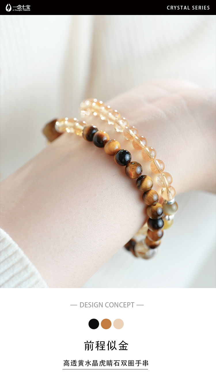 【一念七宝】前程似金|高透黄水晶虎睛石双圈手串
