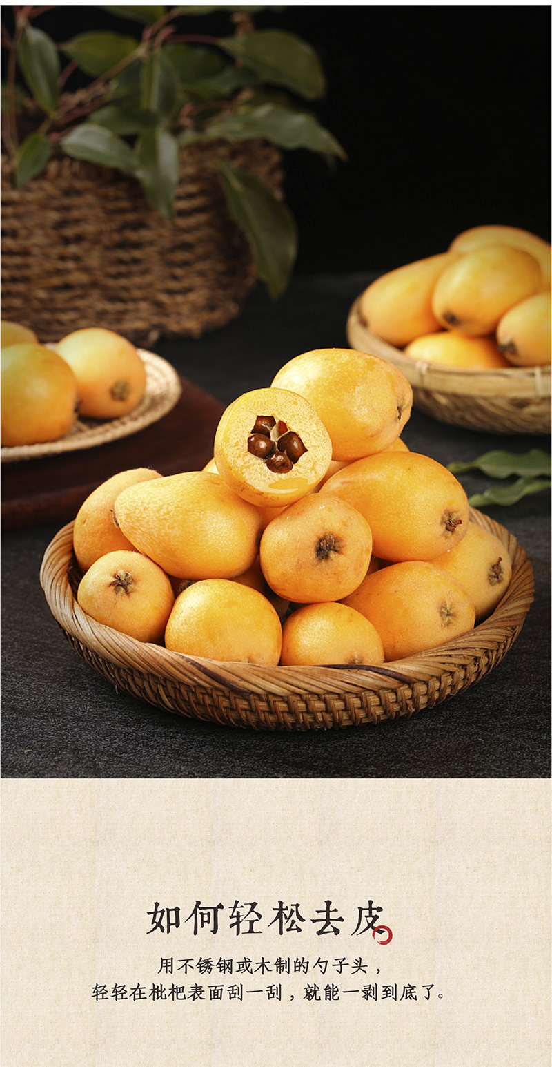 新鲜枇杷果带有天然果酸味,收到后存放3-7天退酸略脱水或者皱皮后食用为口感更佳,常温存放,切勿放入冰箱冷藏。5-20度常温可存放15天左右。枇杷果娇弱,轻微磕碰不影响食用不售后。