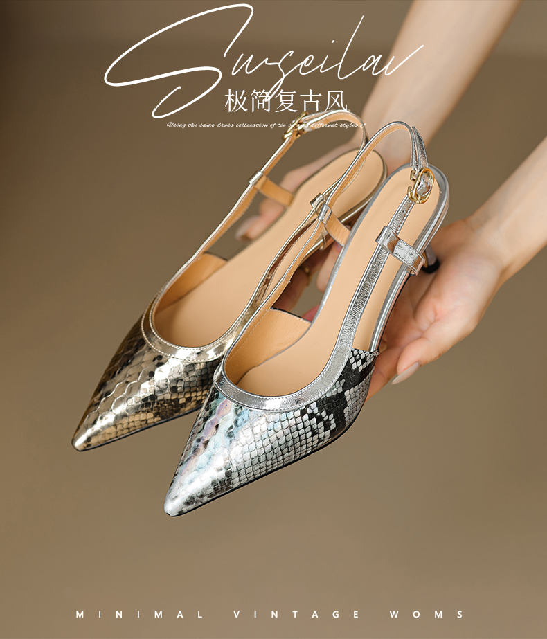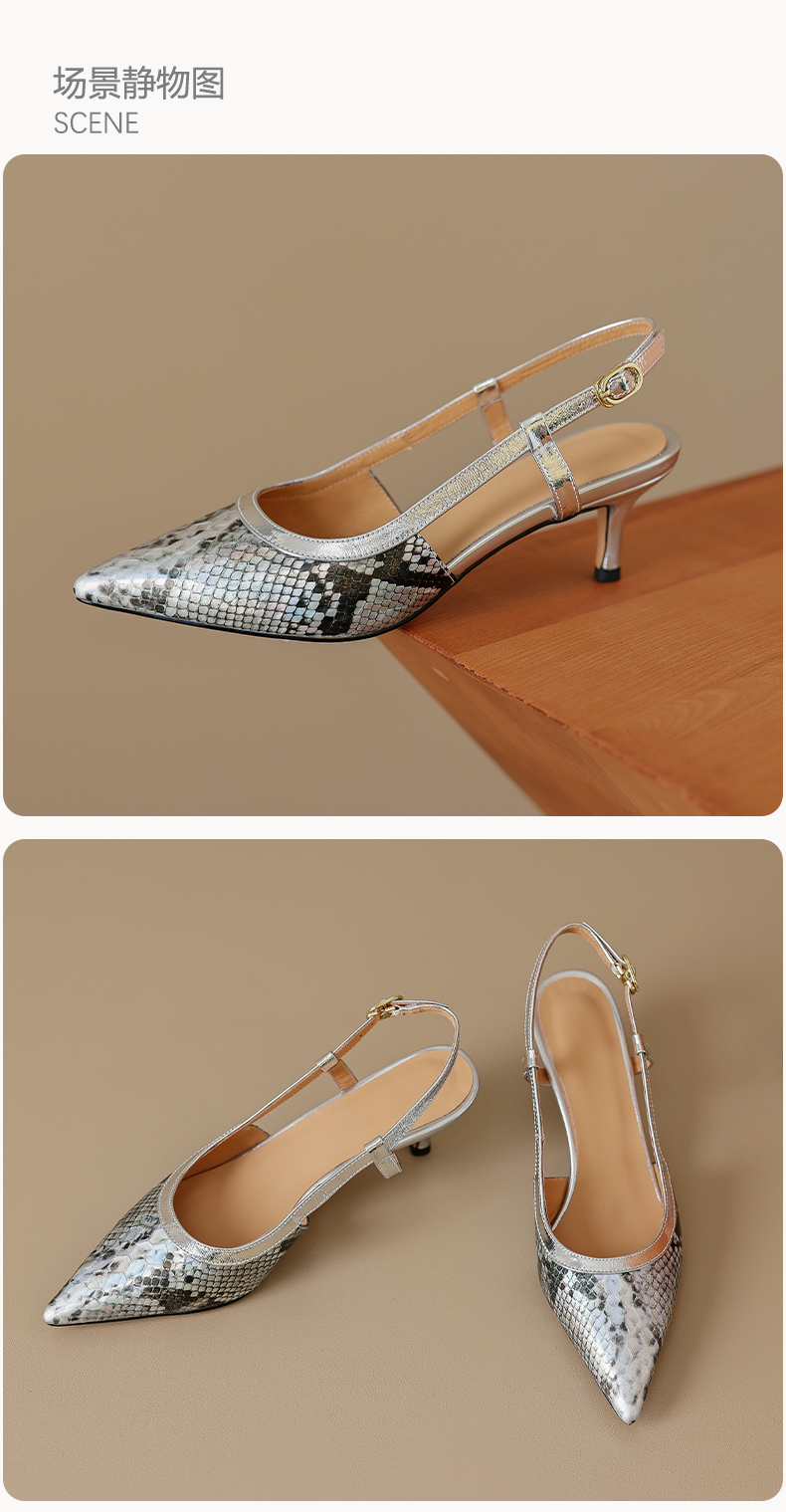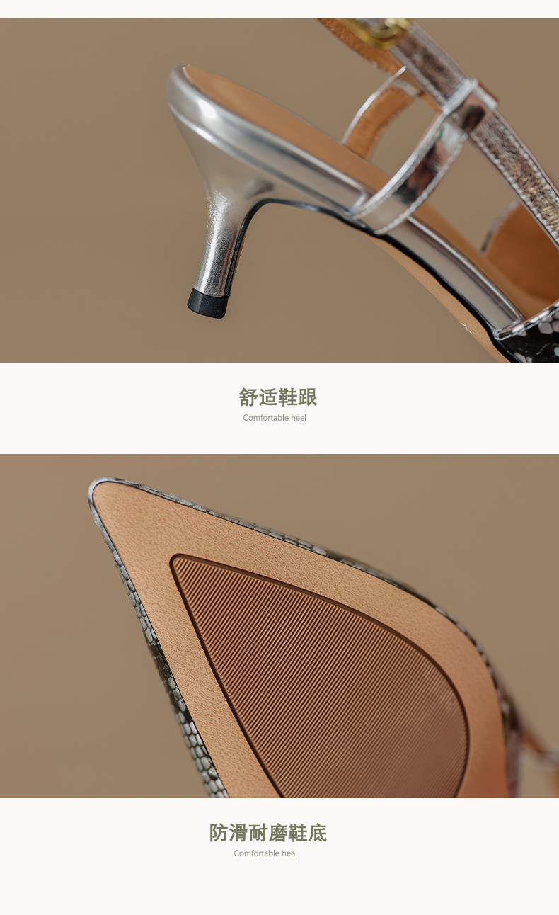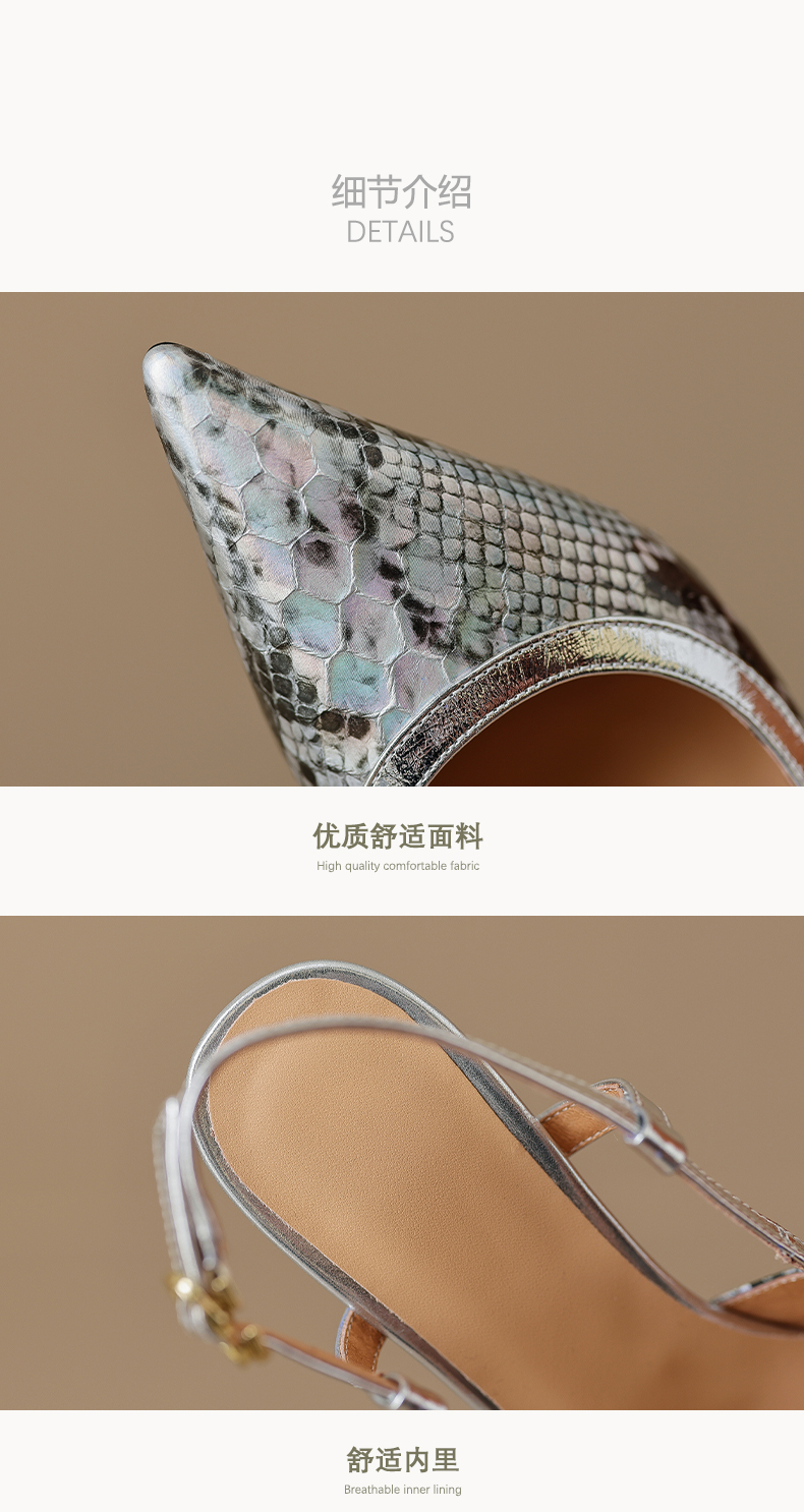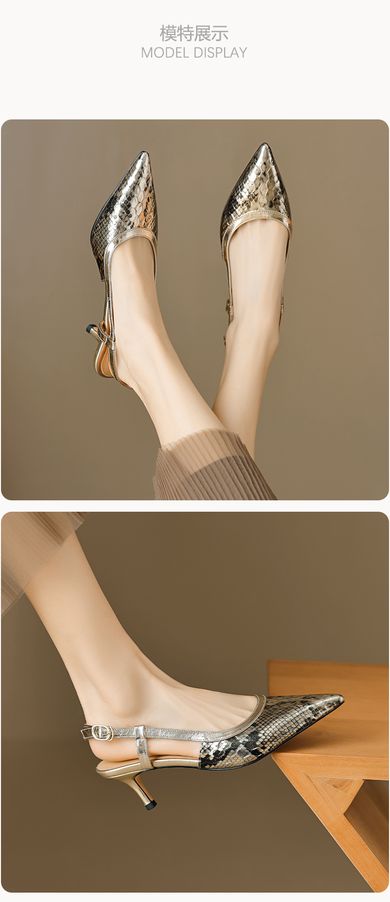 性感优雅,里外全皮尖头猫跟凉鞋QJR-B107-1