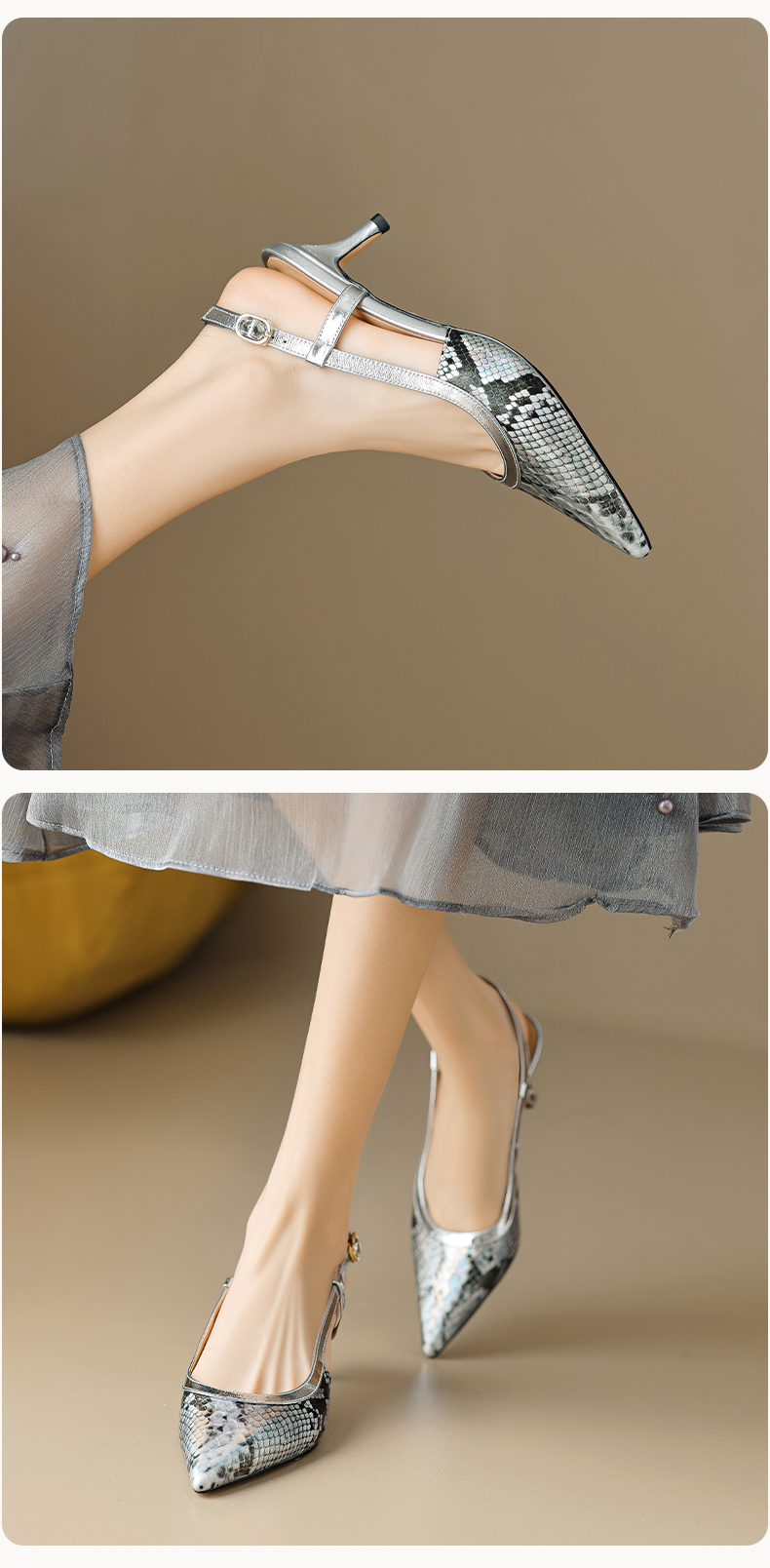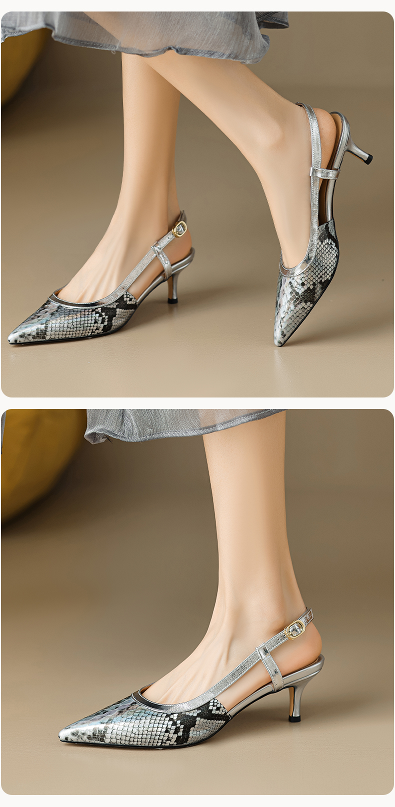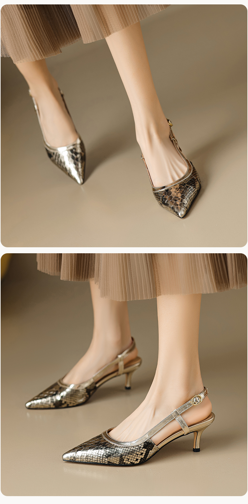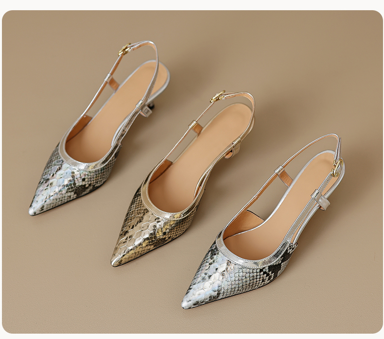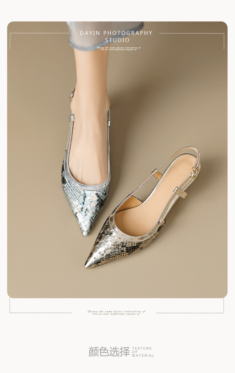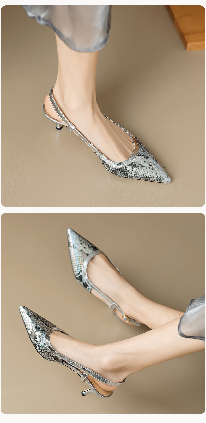 性感优雅,里外全皮尖头猫跟凉鞋QJR-B107-1