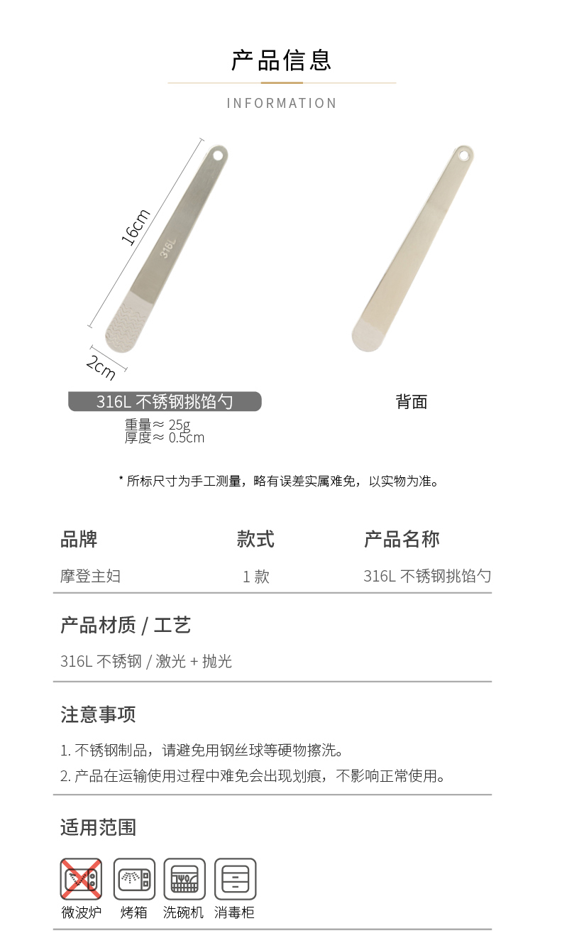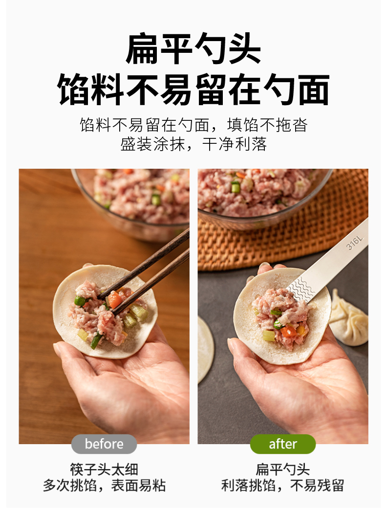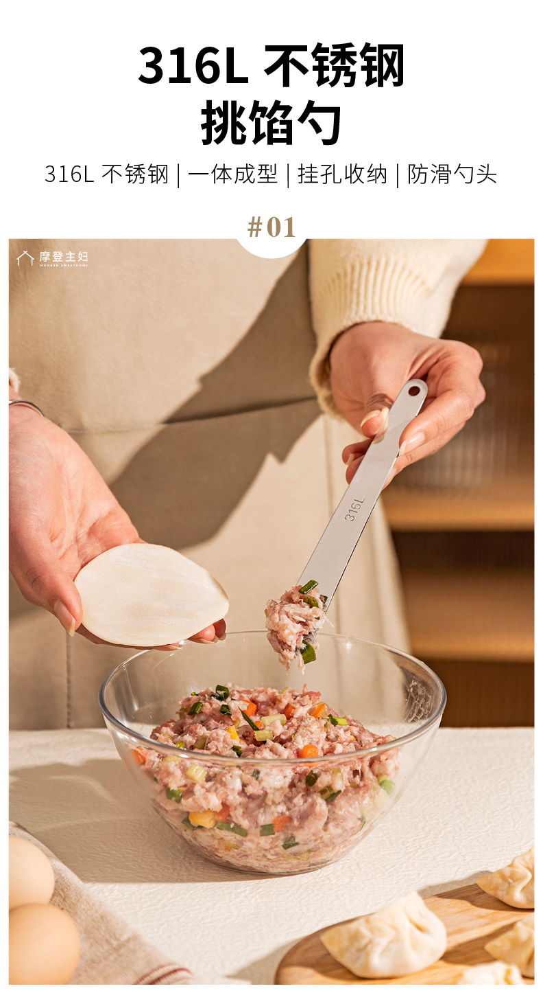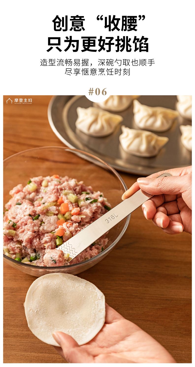 摩登主妇316不锈钢挑馅勺包饺子挖馅勺馄饨水饺工具包子家用勺子