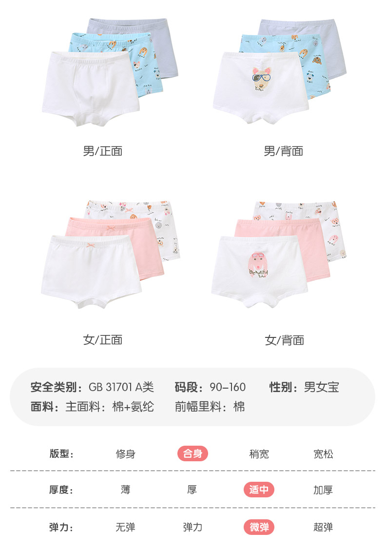 【5A抗菌】英氏儿童平角内裤男童四角打底裤中大童透气不夹PP