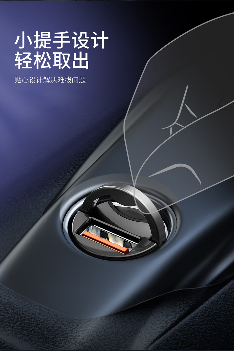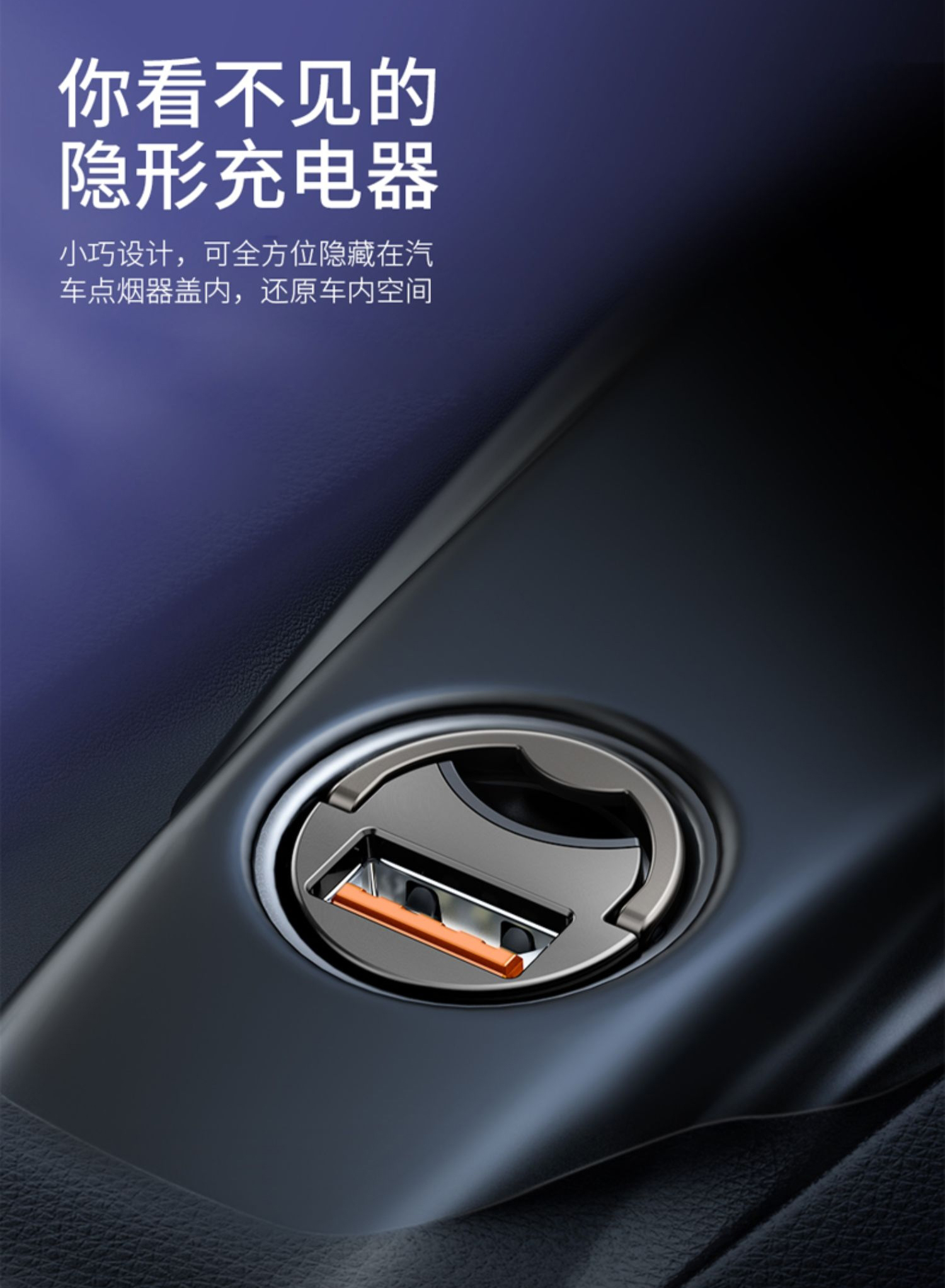 极致小巧,可完全隐藏于点烟器盖内,还原车内空间.