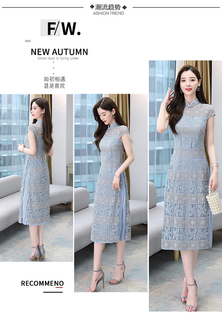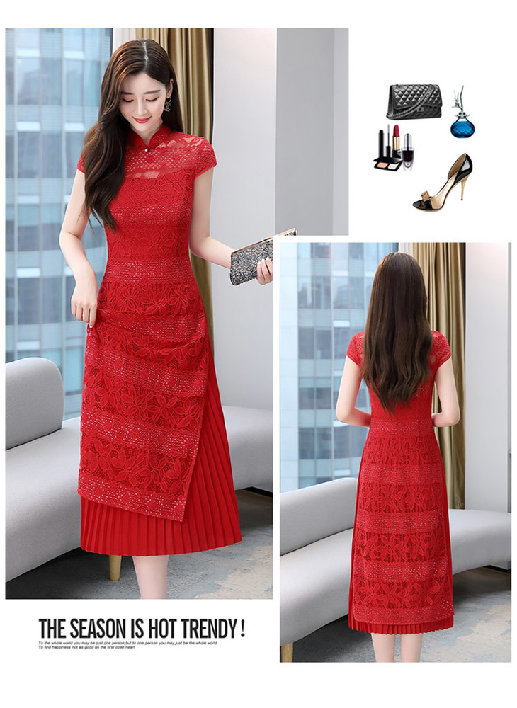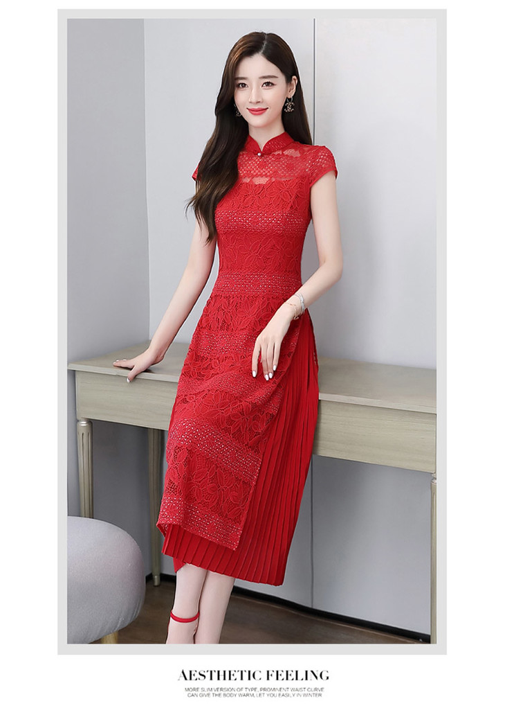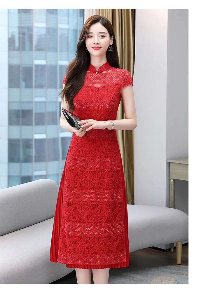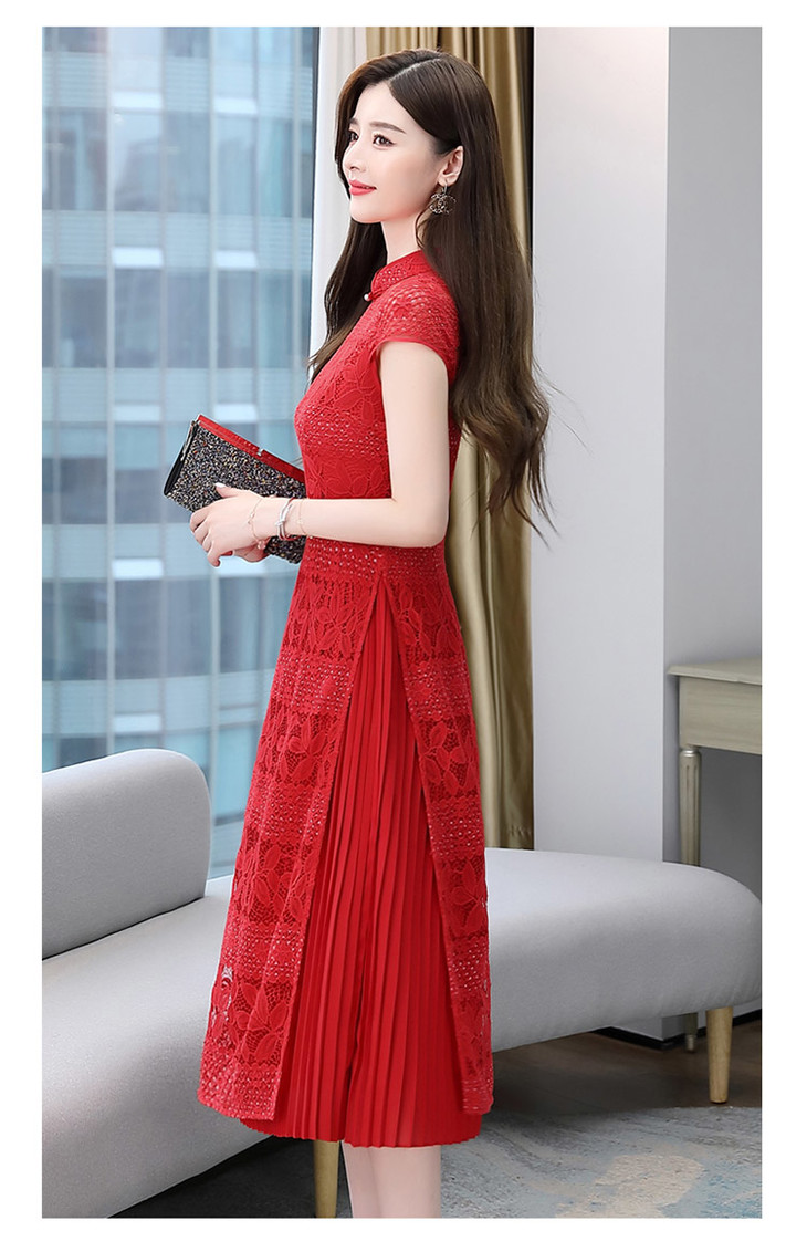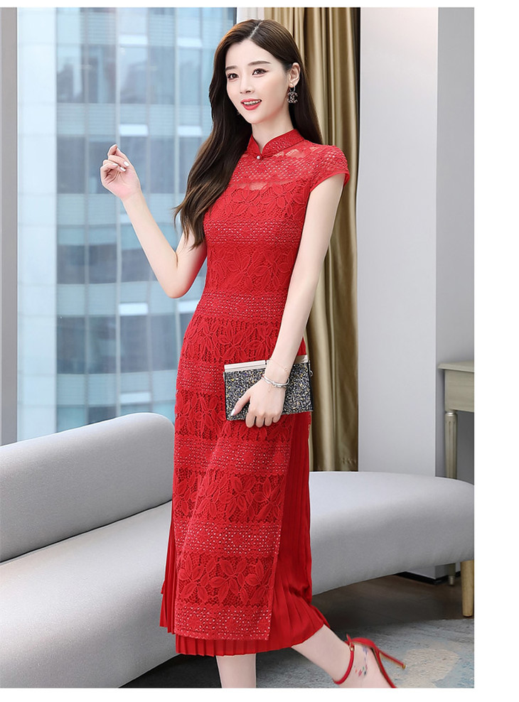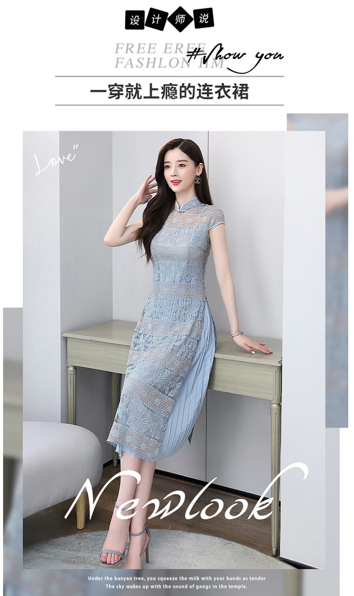 HR MLJL86062时尚气质复古镂空花纹蕾丝连衣裙