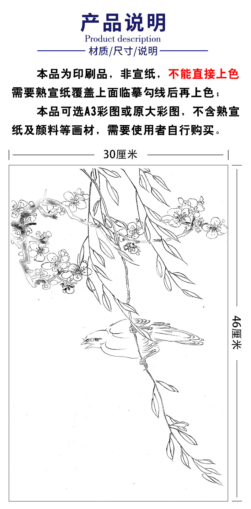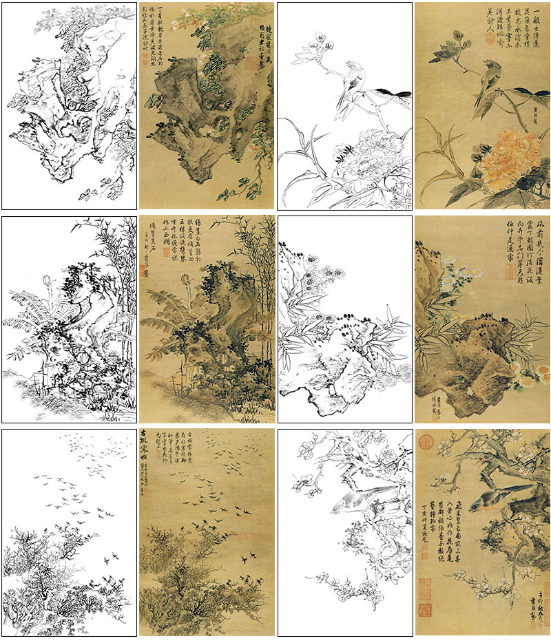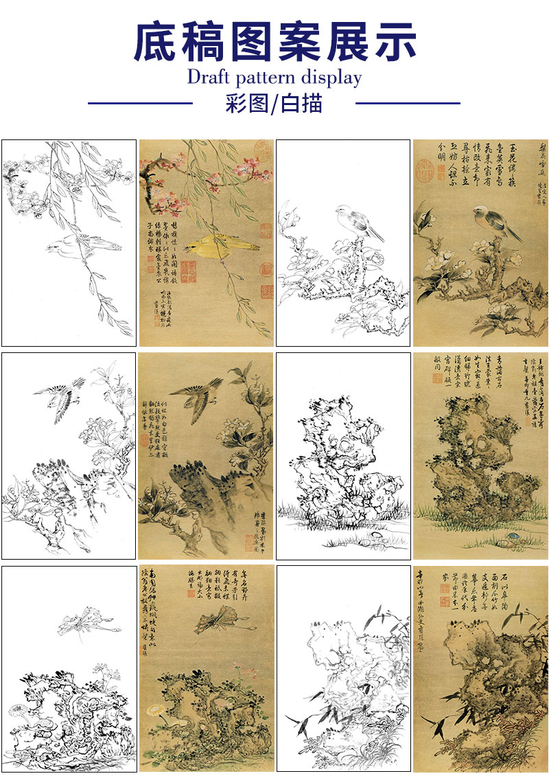 蓝瑛工笔画白描底稿花鸟图册小品一套十二幅册页尺寸30*46厘米MT04