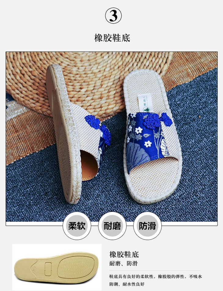 【买麻鞋,雅路人】防脚臭,新款居家拖鞋休闲时尚女士亚麻拖鞋室内地暖拖鞋手工拖鞋YT-10