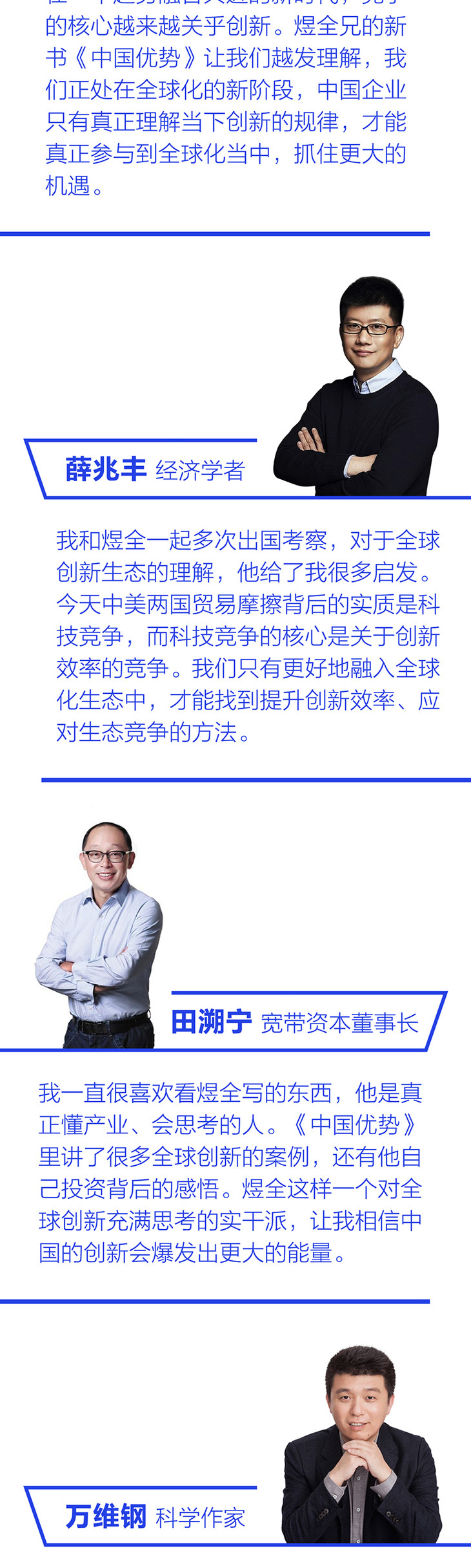 3.在科技强国的今天,这是一部比较冷静地谈中国创新的书。作者既不夜郎自大,也不妄自菲薄,而是客观地分析了当下中国及全球的创新生态,比较了中外创新的长板与短板,尤其对中国创新的优势和存在的短板分析到位。对于正在号召“大众创业,万众创新”的中国,此书不失为一本醒世之作。