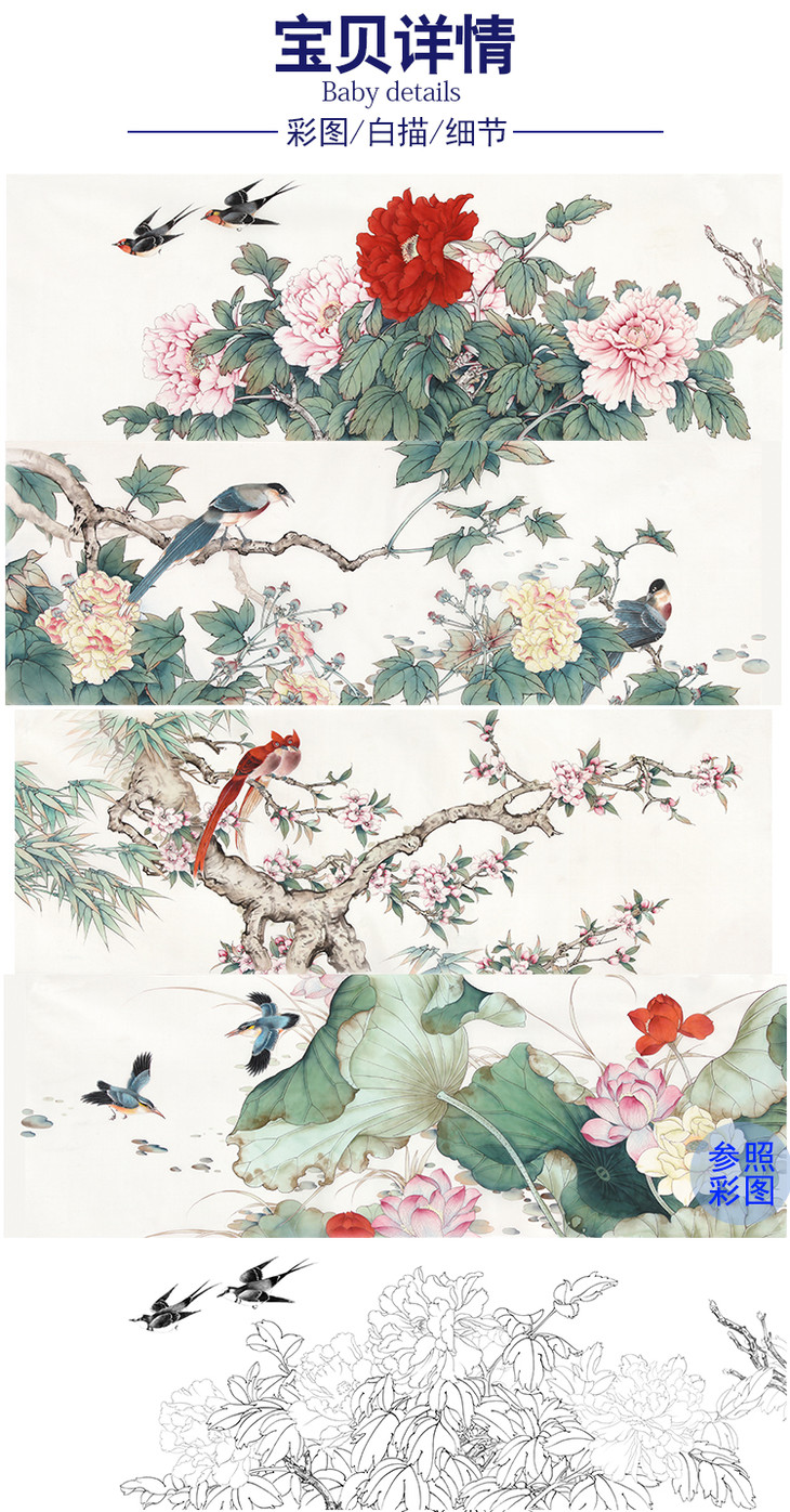 【四条屏】陈军横幅工笔花鸟白描底稿-多种白描尺寸可选 CJ70