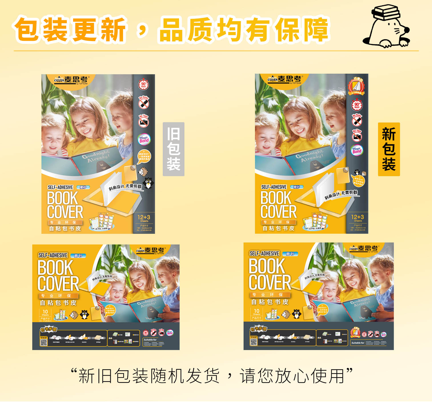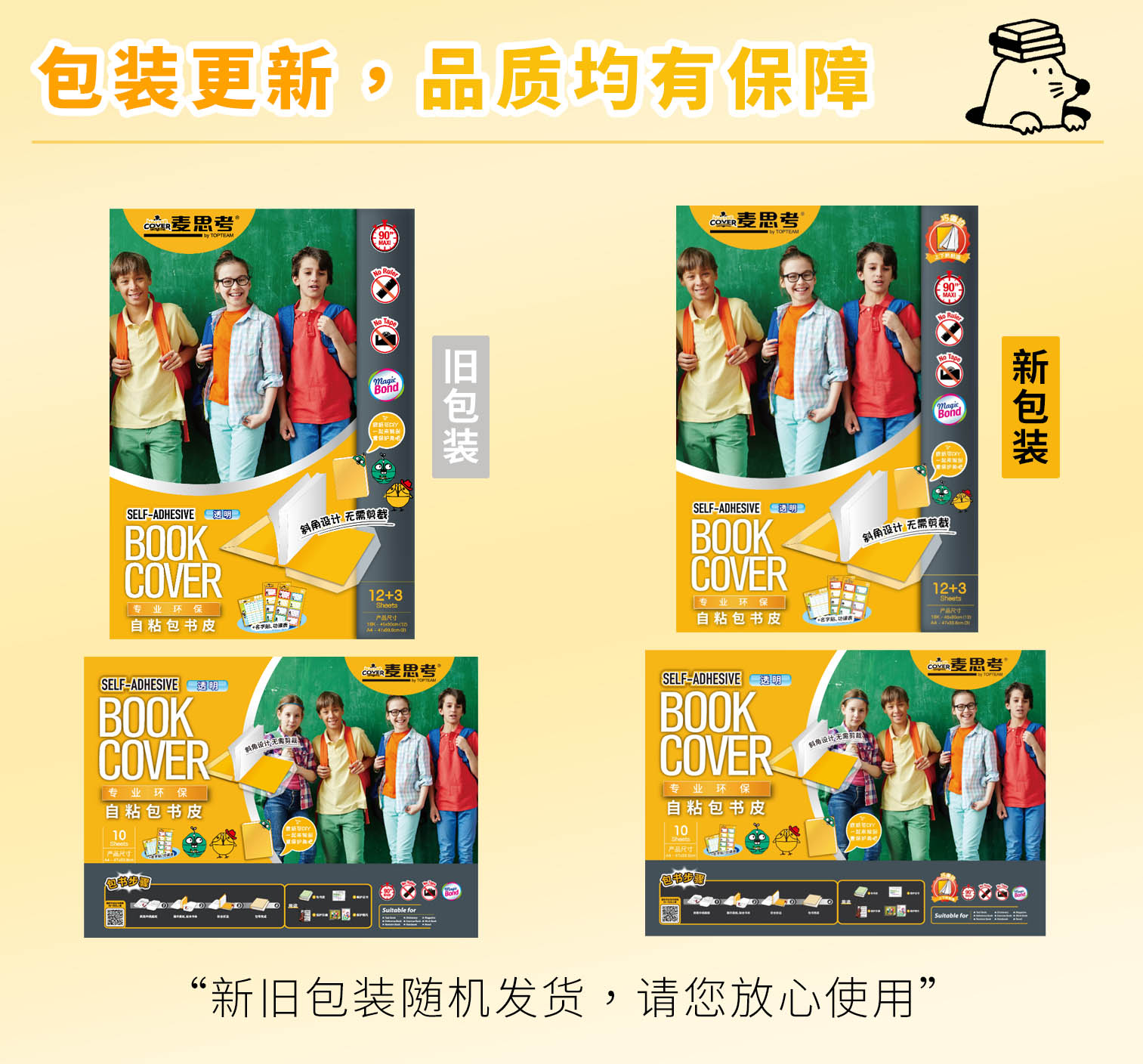 【热卖款】麦思考 环保包书皮 包书套 自粘防水透明包书皮