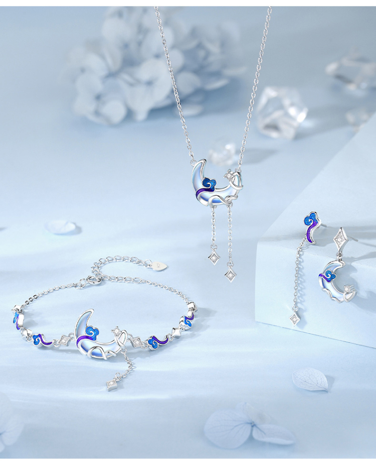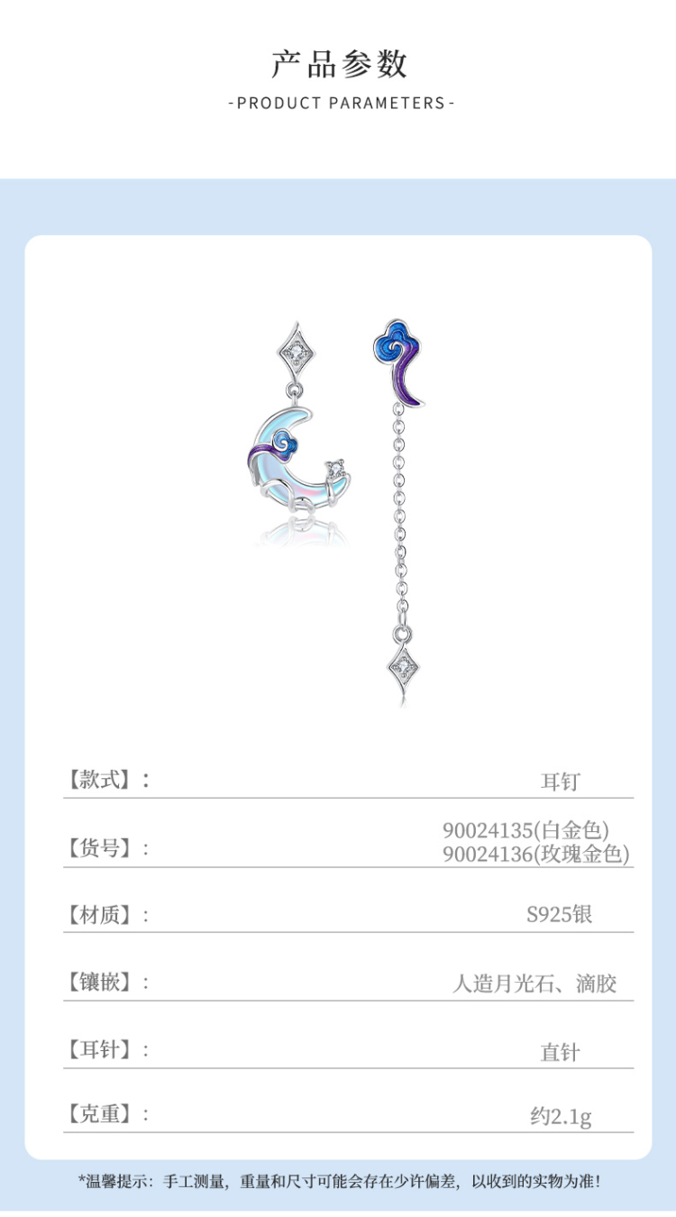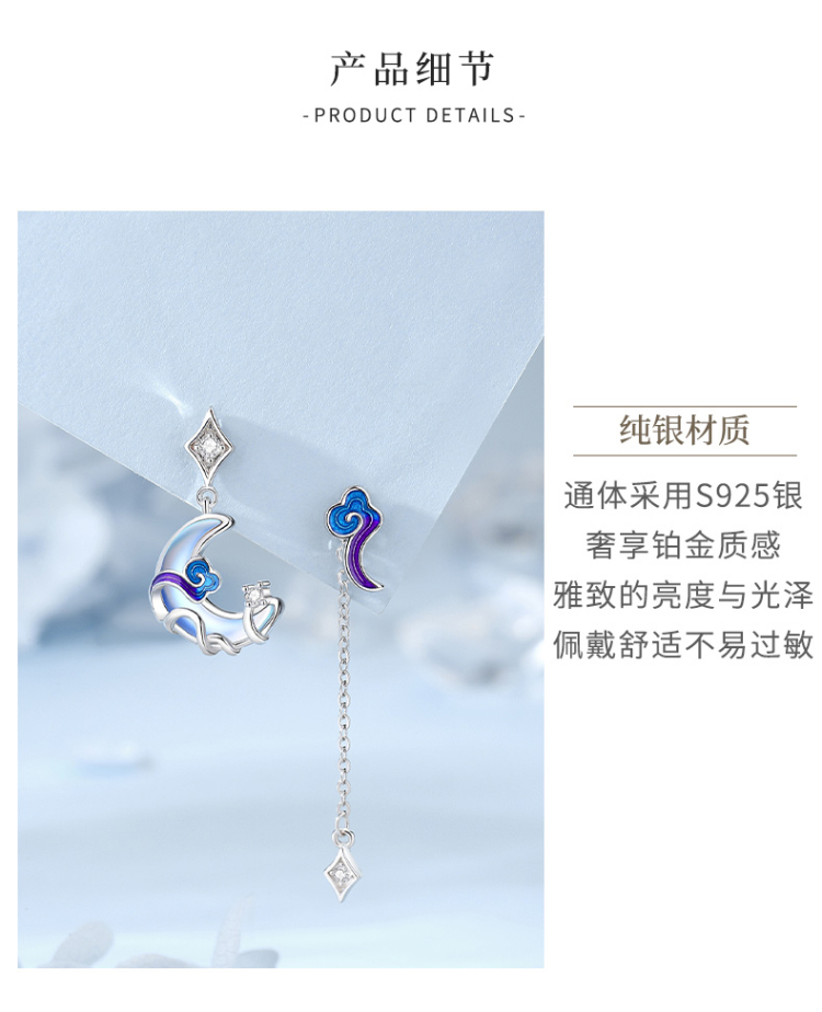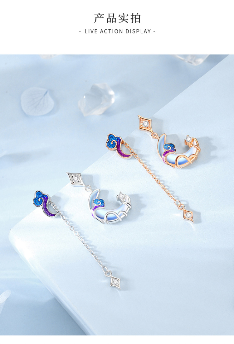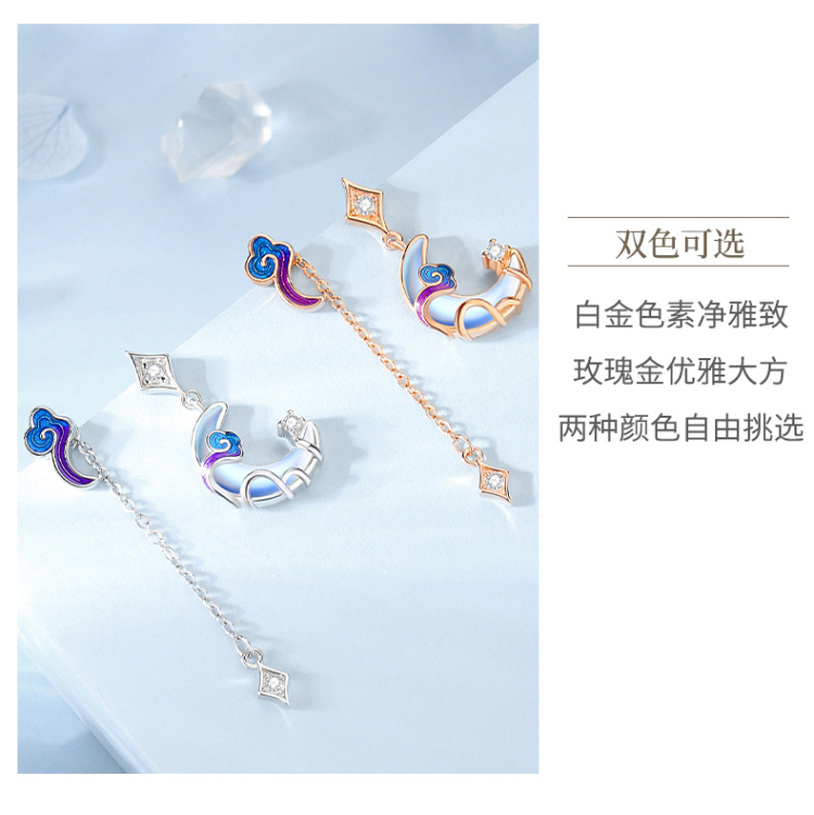Winy925纯银祥云缠月耳钉送女友闺蜜节日生日礼物