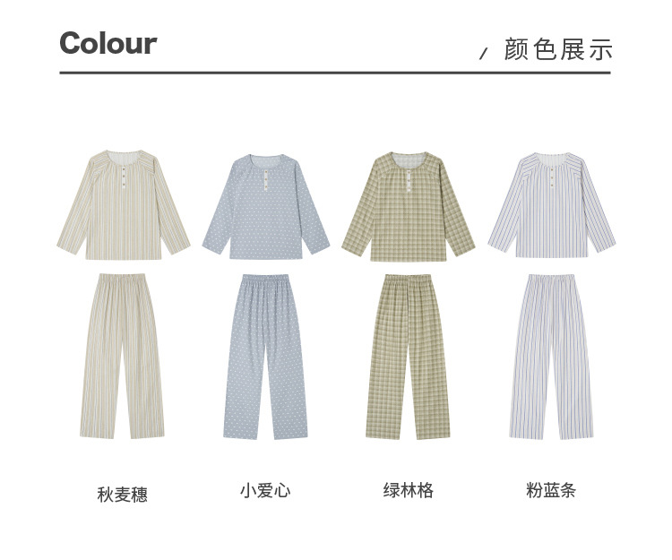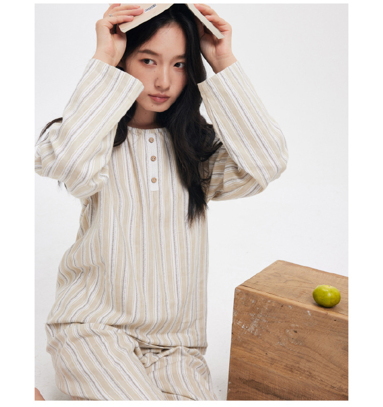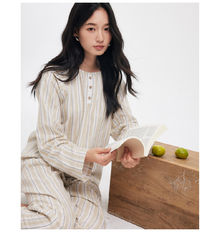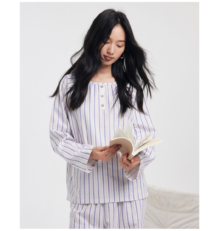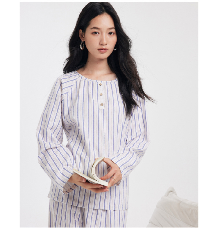 【2025秋冬新品】全棉亲肤・圆领家居服套装 条纹印花软糯套头上衣长裤套装睡衣