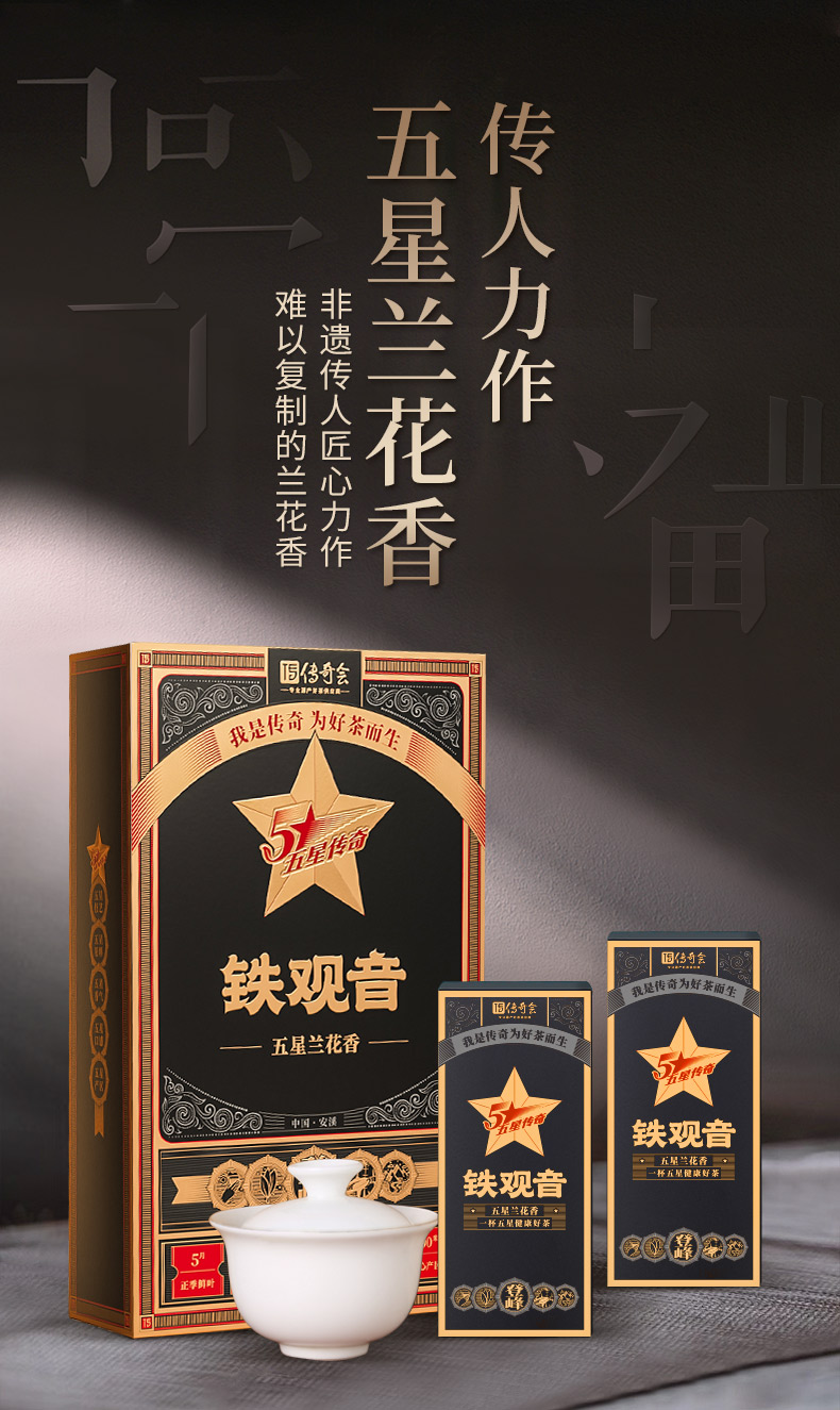 传奇会茶叶 特级安溪铁观音茶叶礼盒 五星登峰新茶正宗品质兰花香闽南乌龙茶礼盒装500g