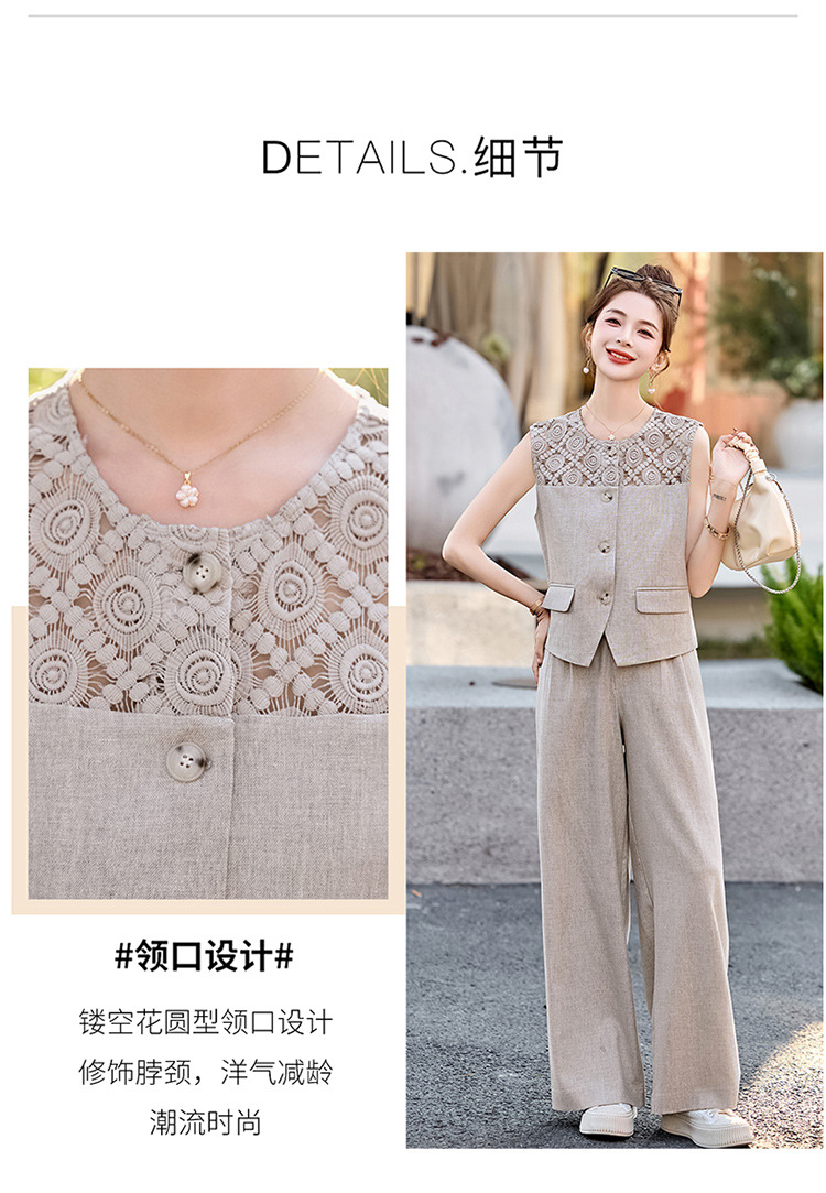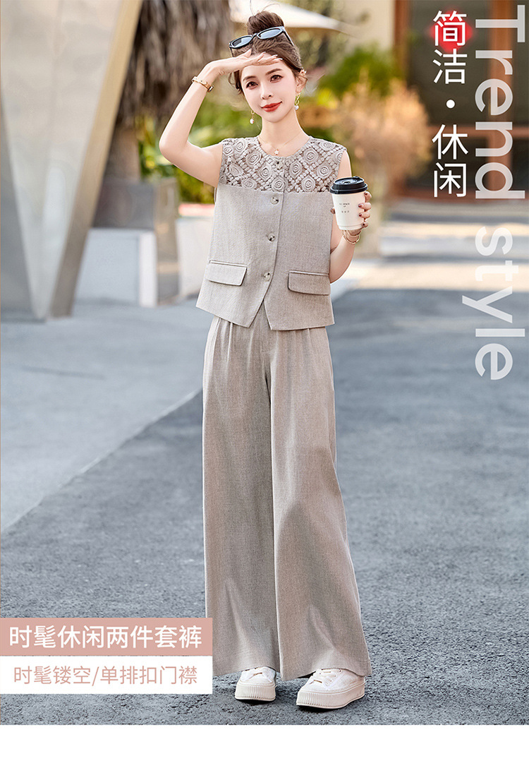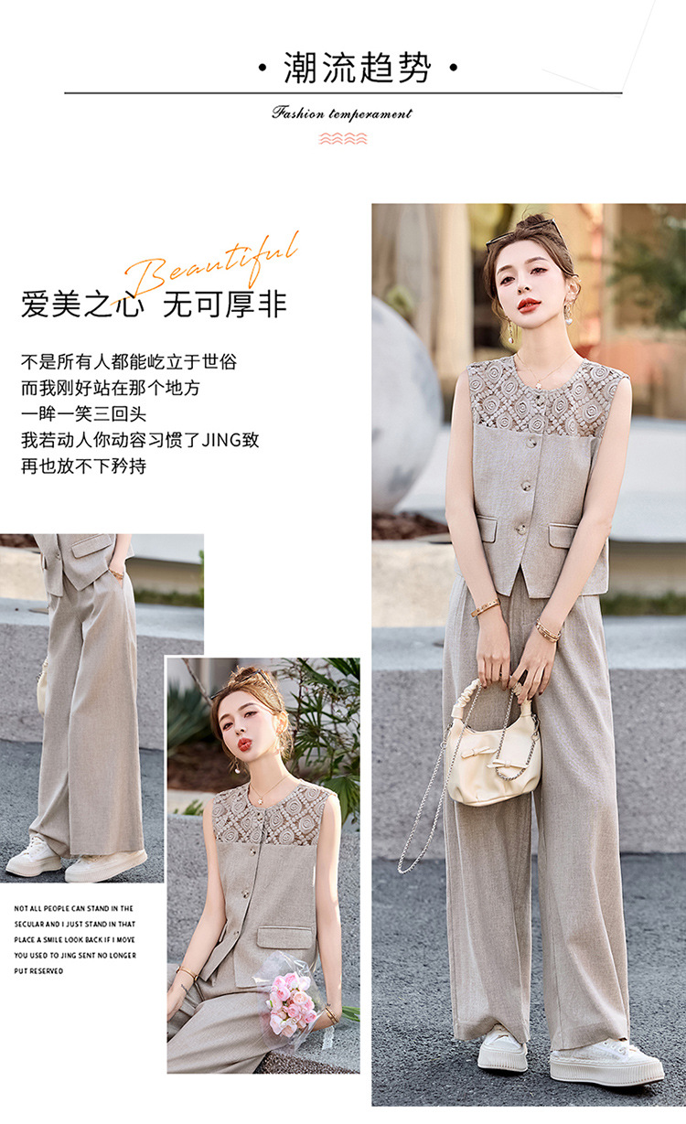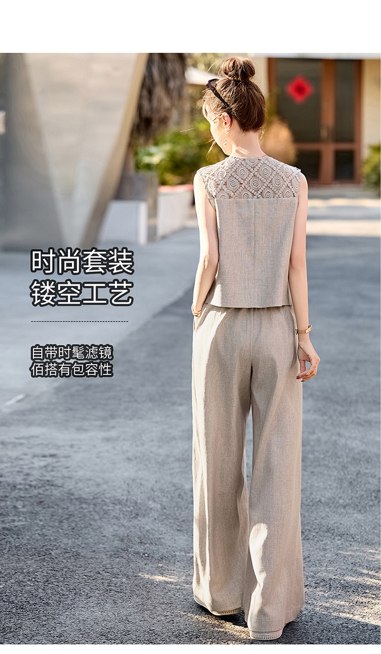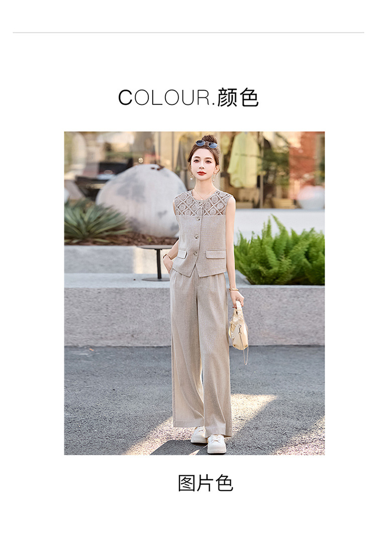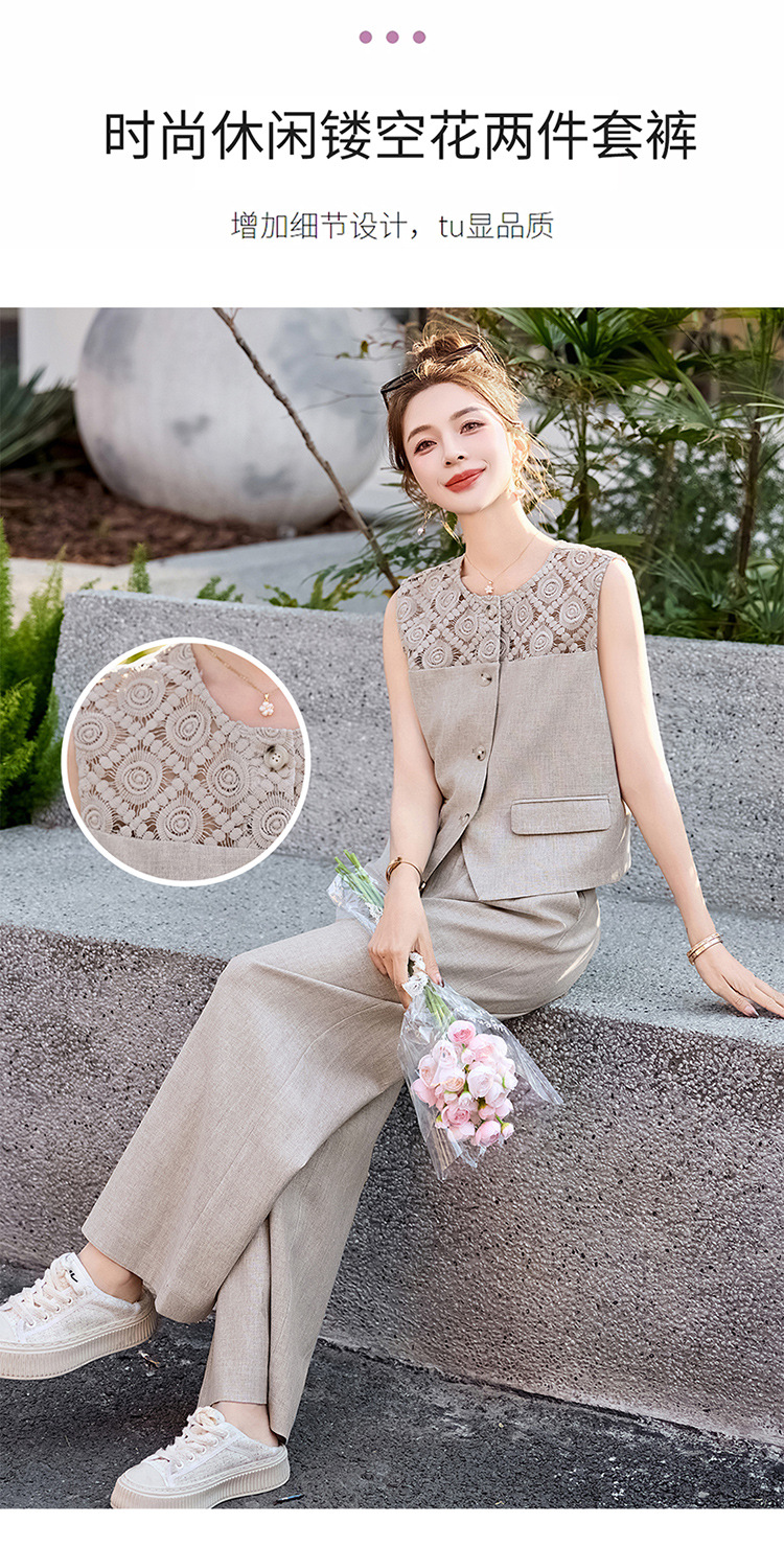 2025年夏季新款时尚镂空领显瘦马甲阔腿裤气质套装MEIQIN5576