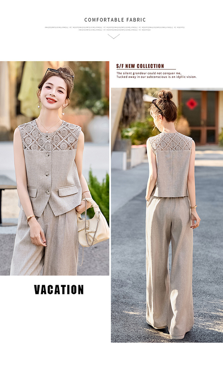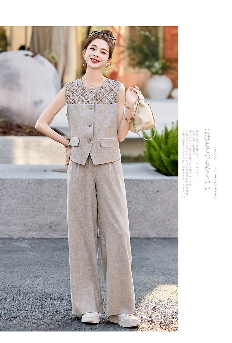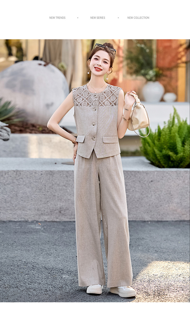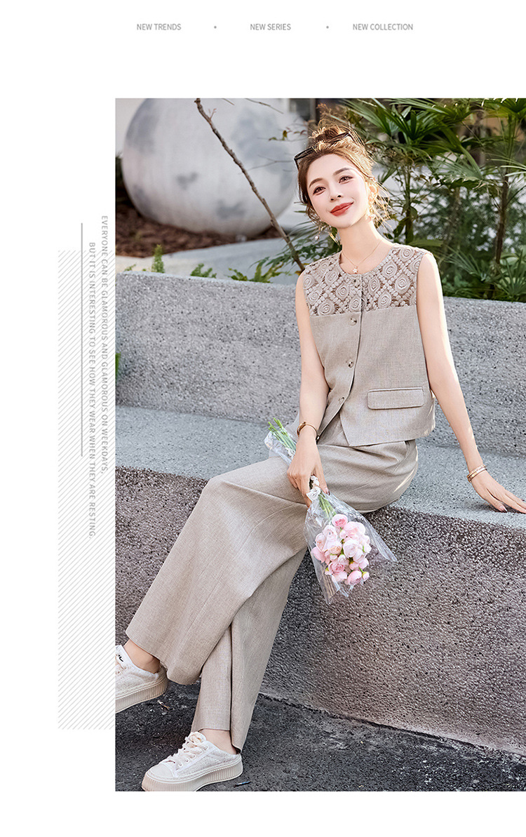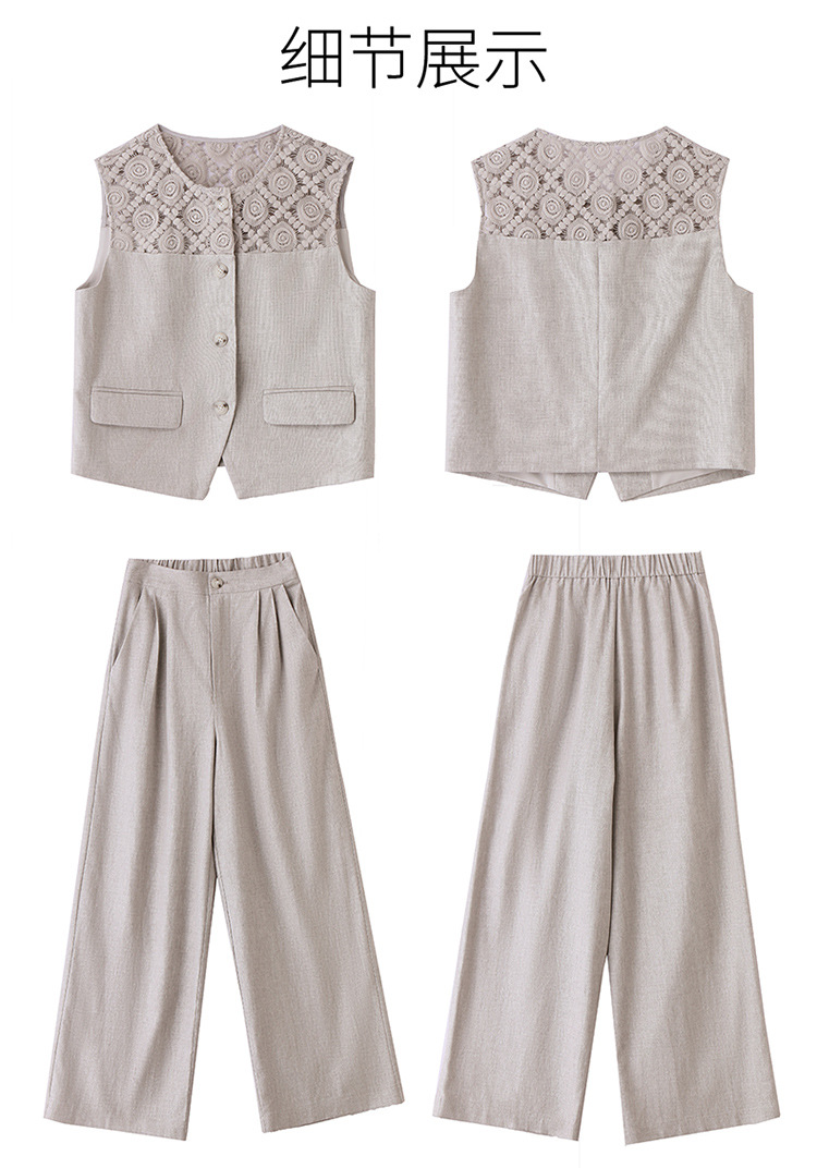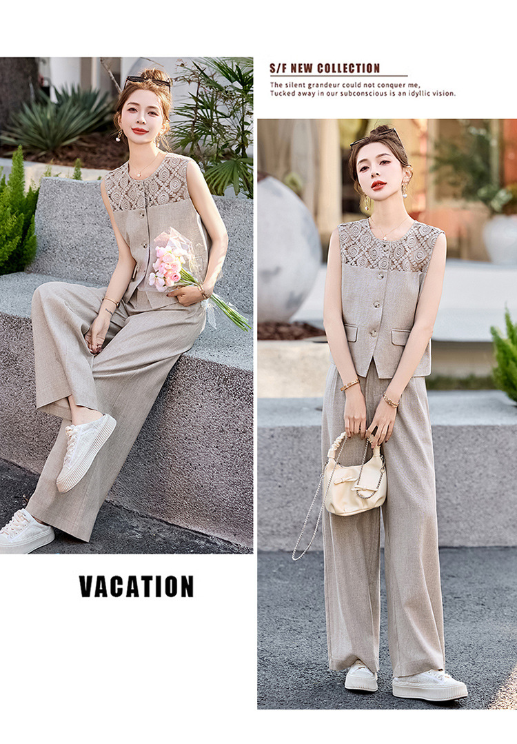 2025年夏季新款时尚镂空领显瘦马甲阔腿裤气质套装MEIQIN5576