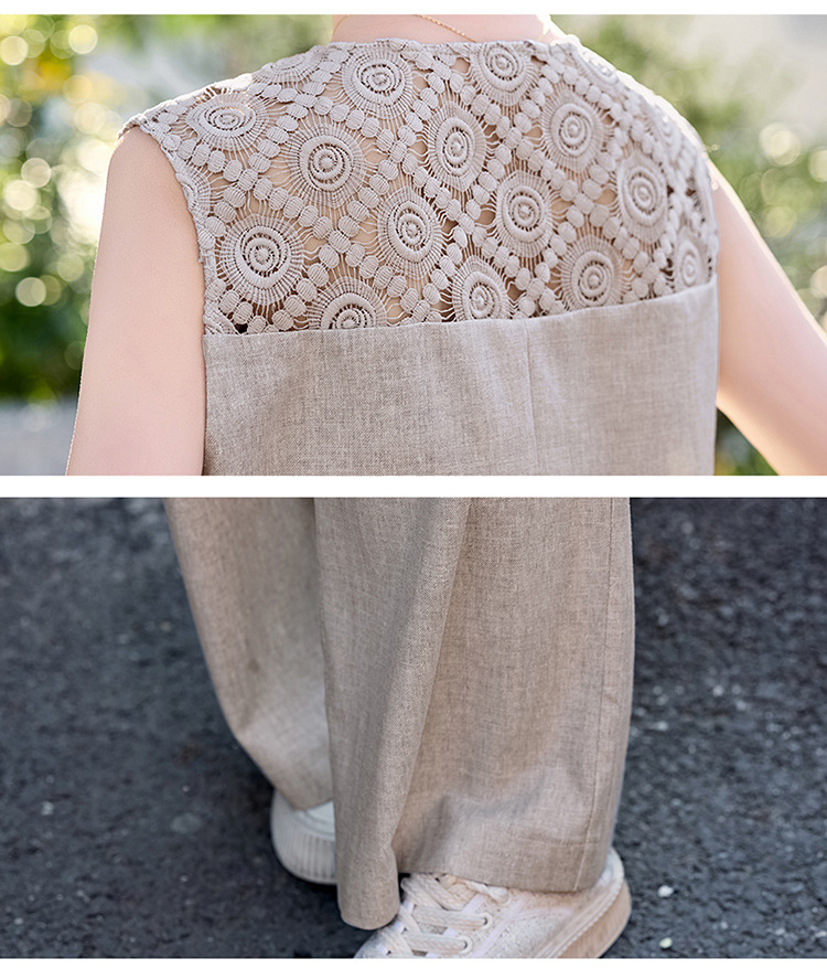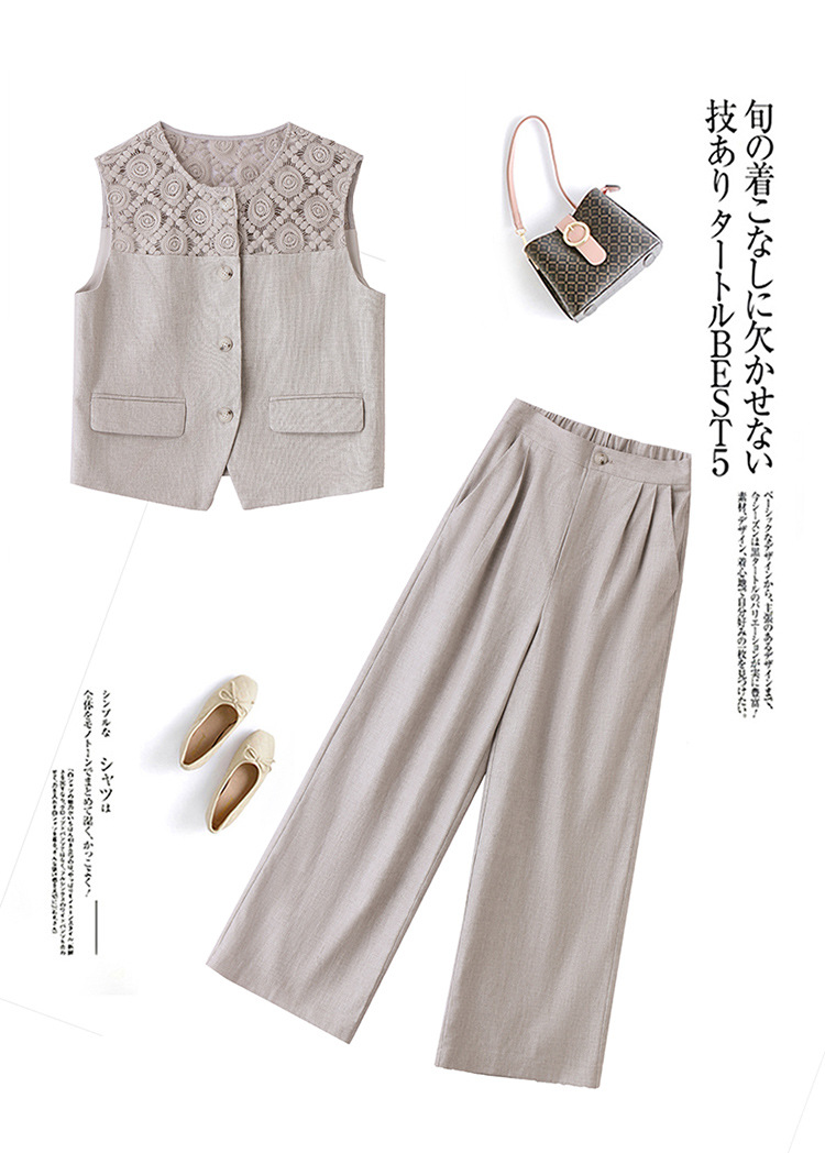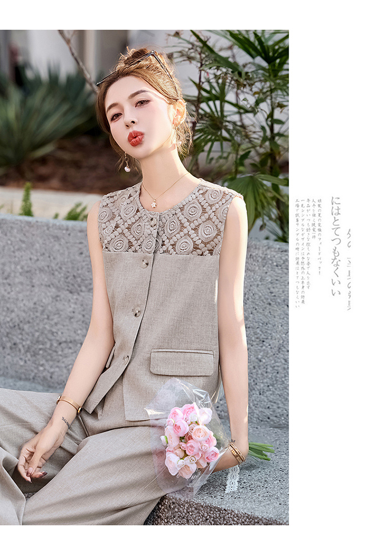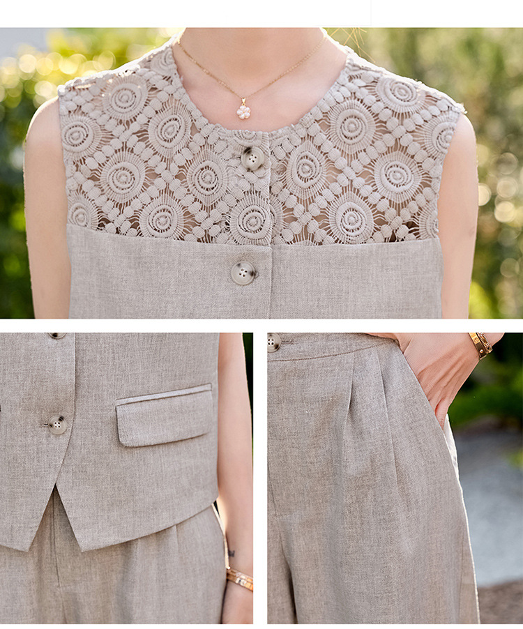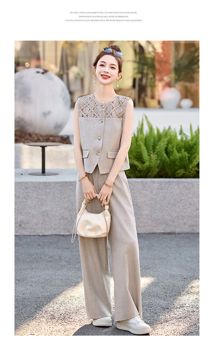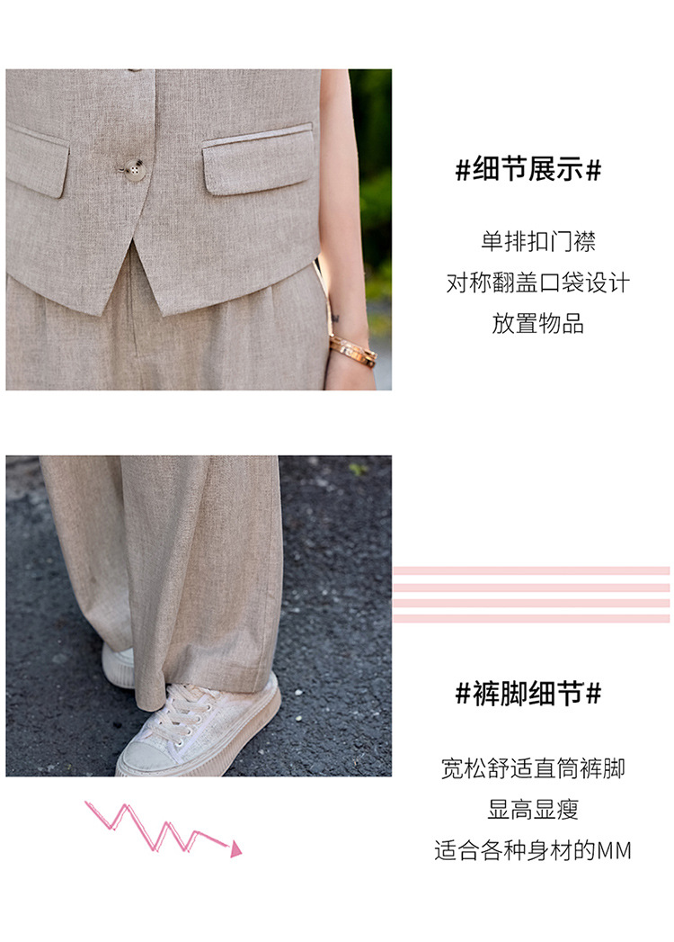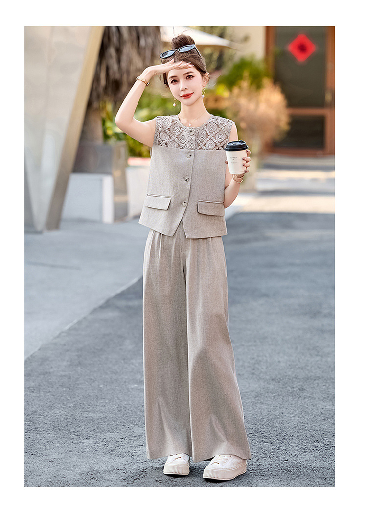 2025年夏季新款时尚镂空领显瘦马甲阔腿裤气质套装MEIQIN5576