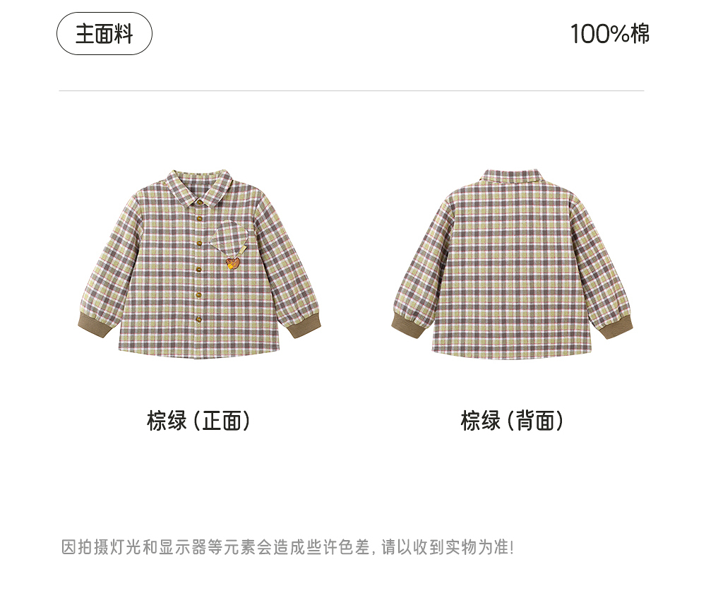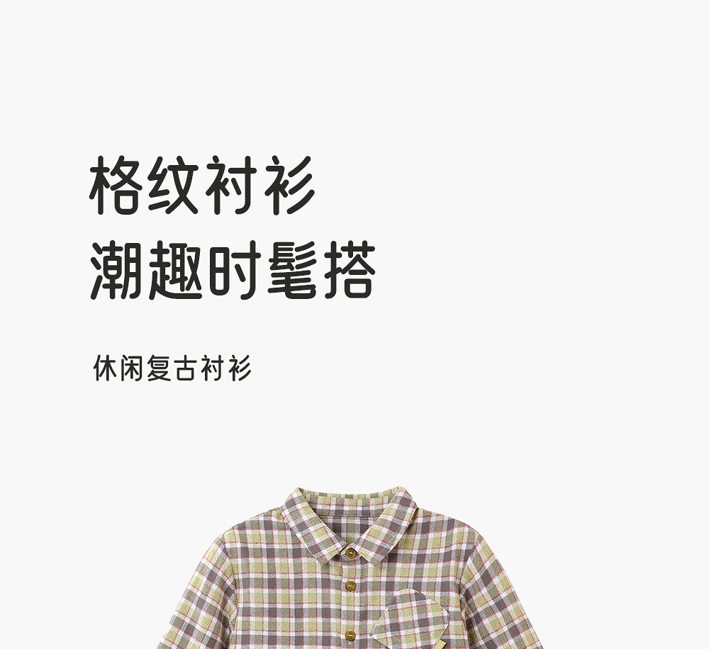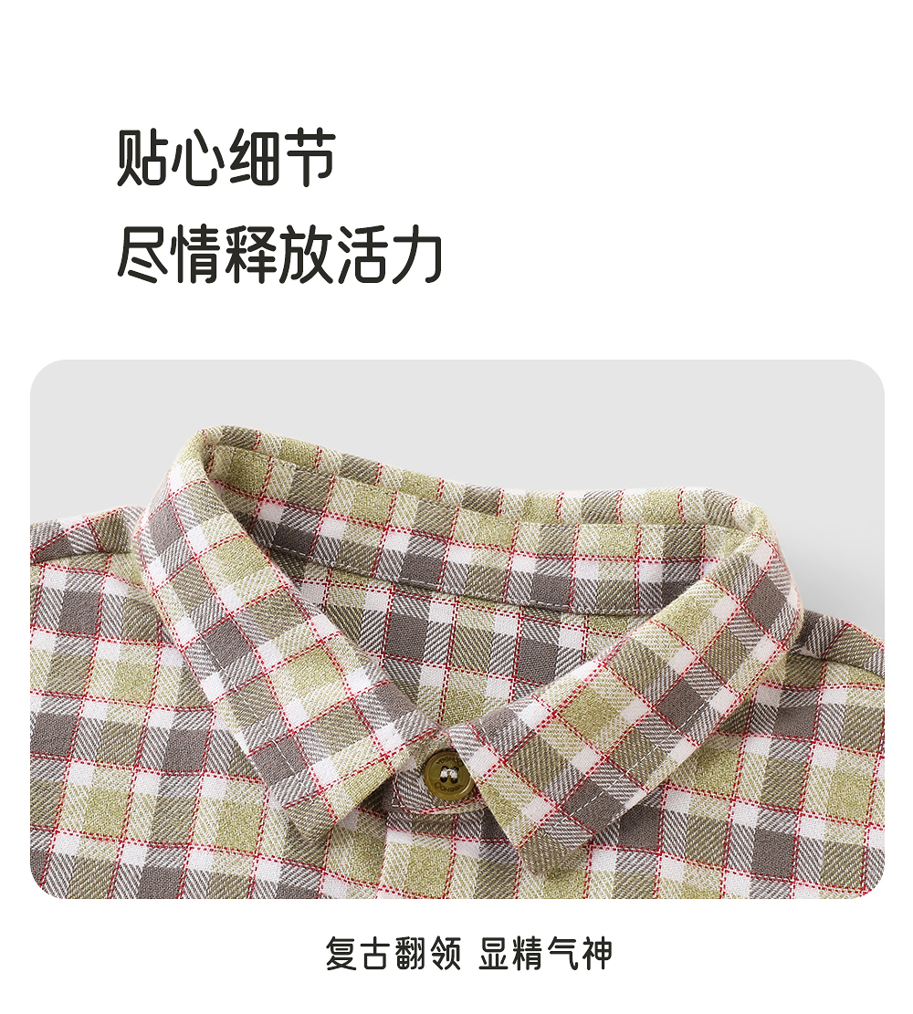 【商场同款】英氏儿童衬衫春秋休闲复古男童长袖衬衫纯棉格子衫