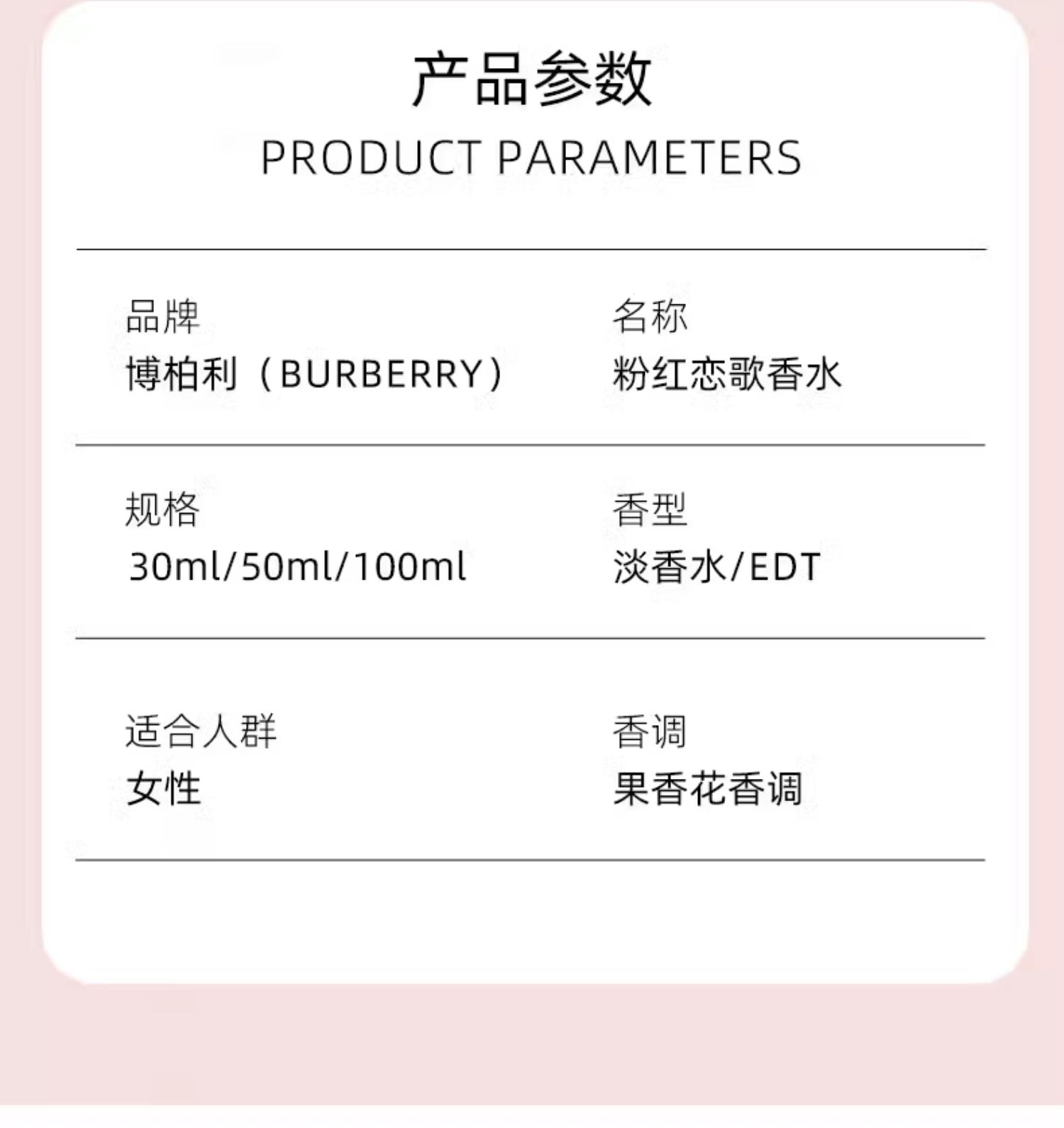 【保税直邮 厦门海关】巴宝莉粉红恋歌女士淡香水EDT50ML/100ml