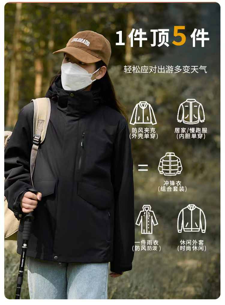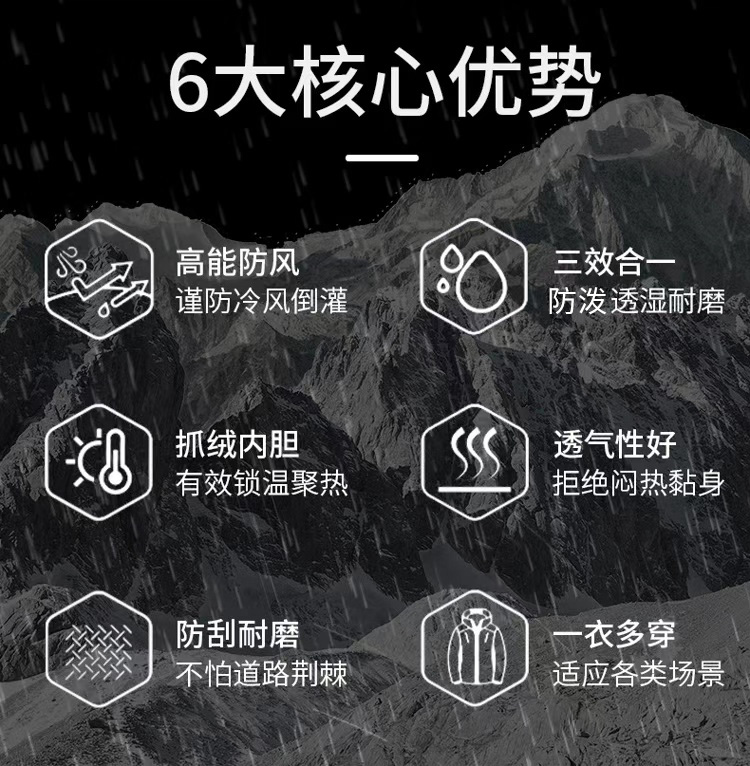 【411g重磅摇粒绒 石墨烯蓄热内胆 一衣穿三季】雪梵莱 可拆卸三合一防风衣