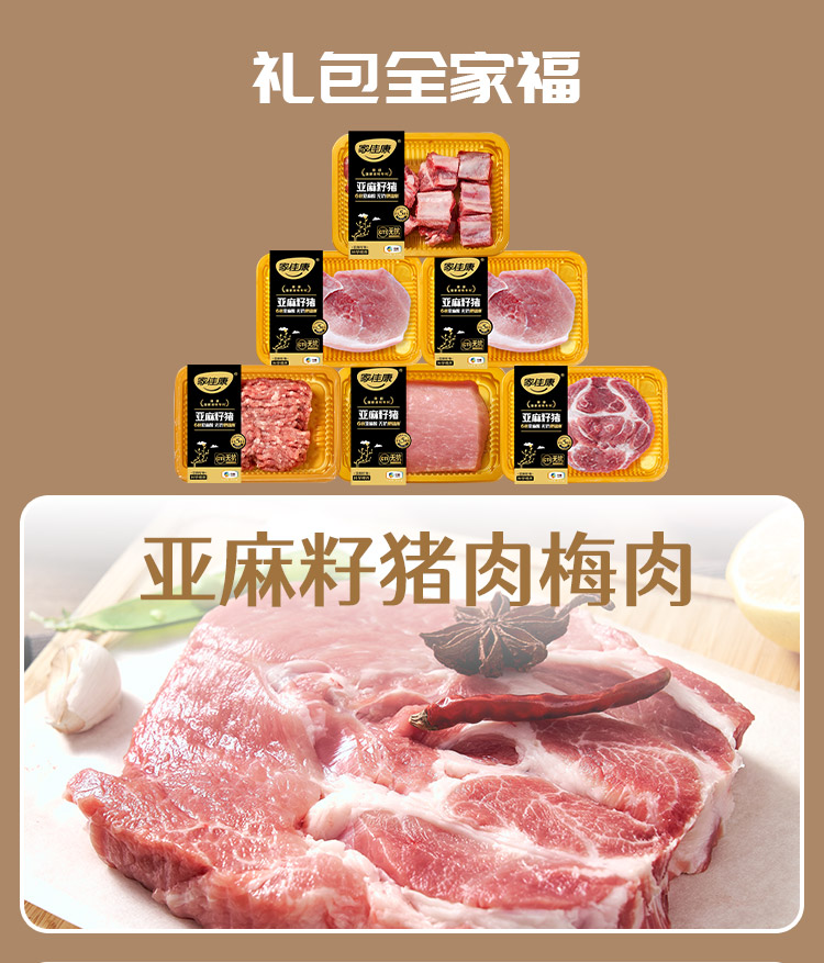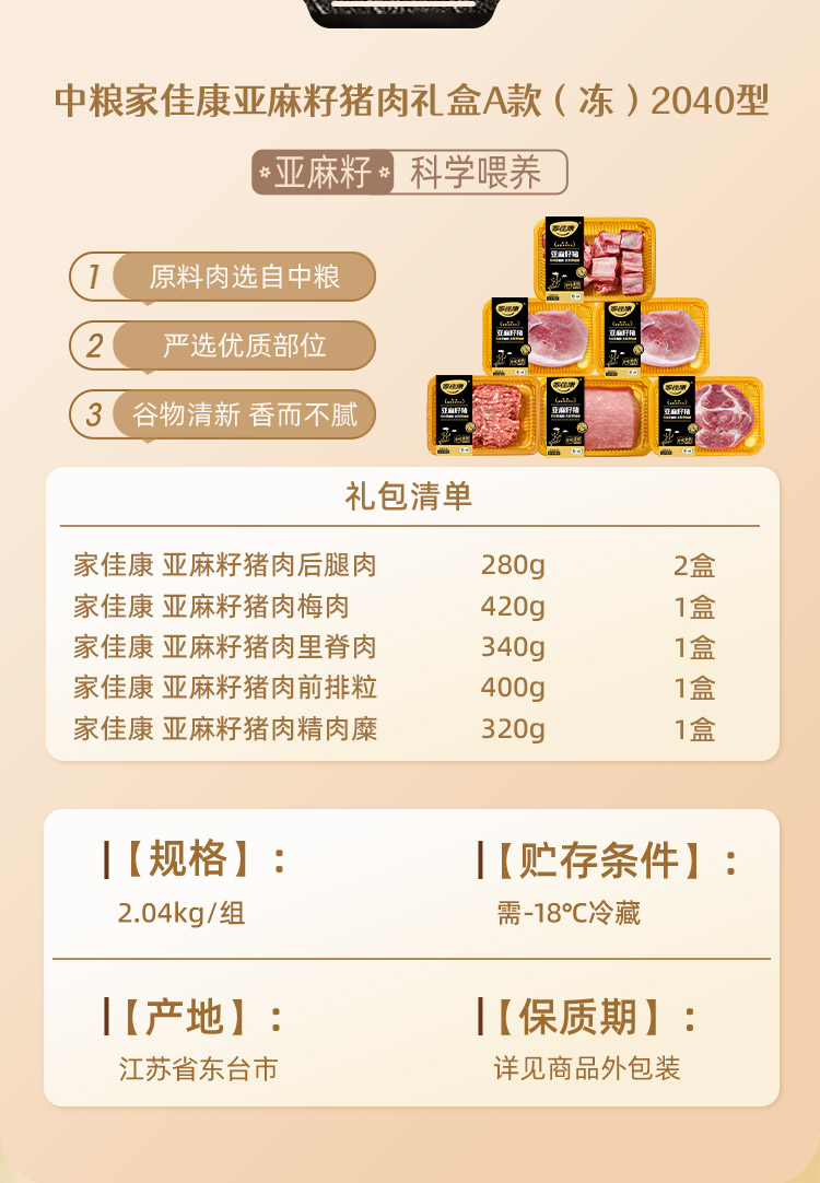 【直送到家】2040g中粮家佳康亚麻籽猪肉礼盒A款(冻)