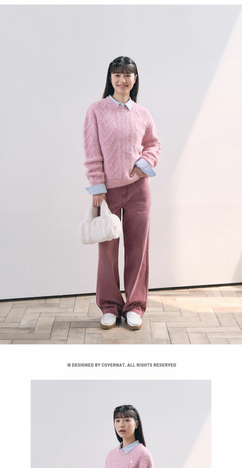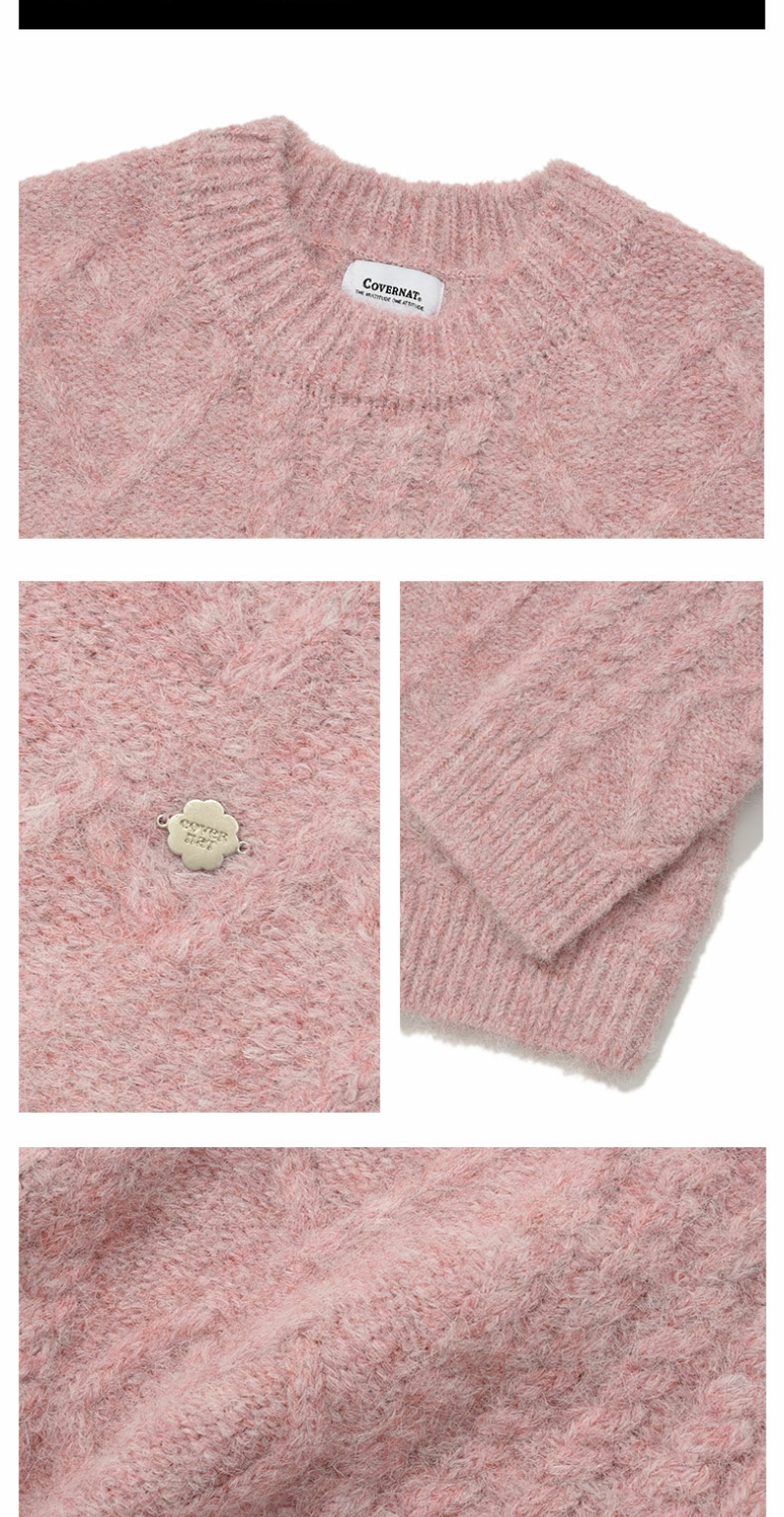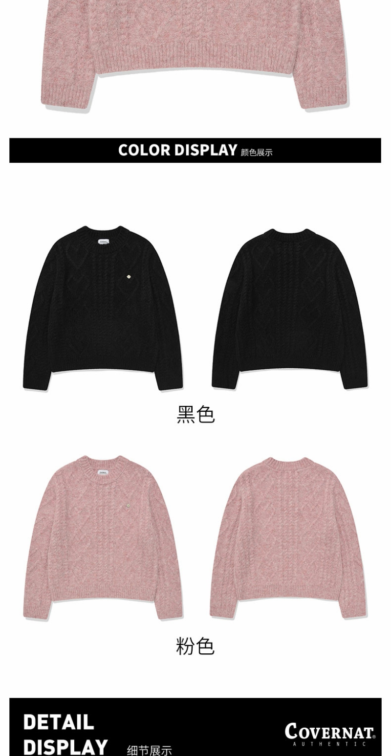 Covernat韩国潮牌秋冬圆领毛衣女士绵羊毛麻花针针织衫CO2304KT75