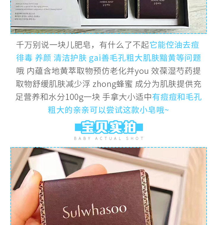 ❄️BX👑Sulwhasoo/雪花秀宫中蜜皂*2+皂托*1👍纯植物韩方药材手工皂,🙅无刺激,男女老少👨👩👴👶,连孕妇都可以放心使用,控油祛痘效果是出了名的好🙋🙋,彻底去死皮,清洁毛孔,防止毛孔堵塞引起的过敏😘😘~