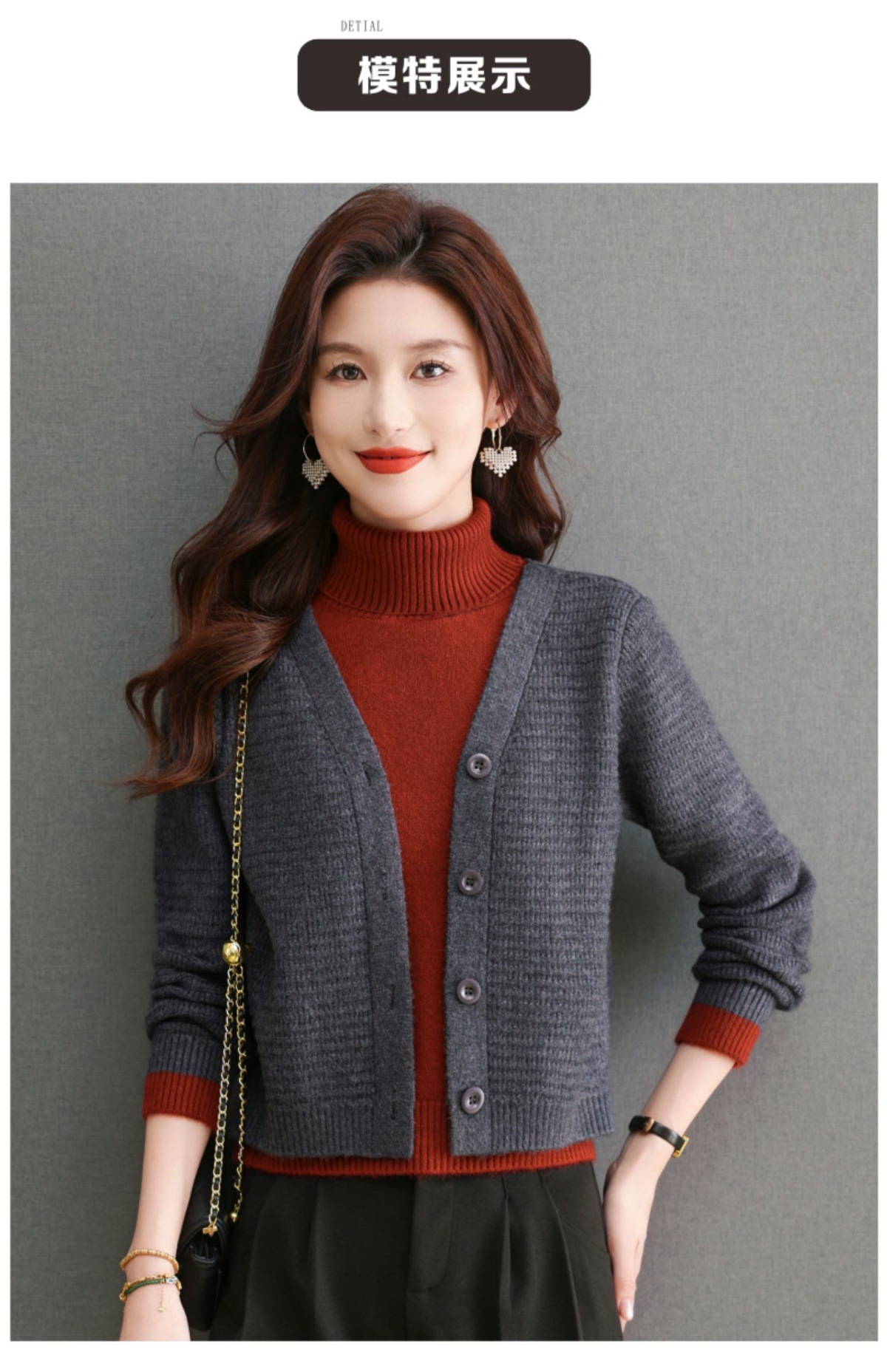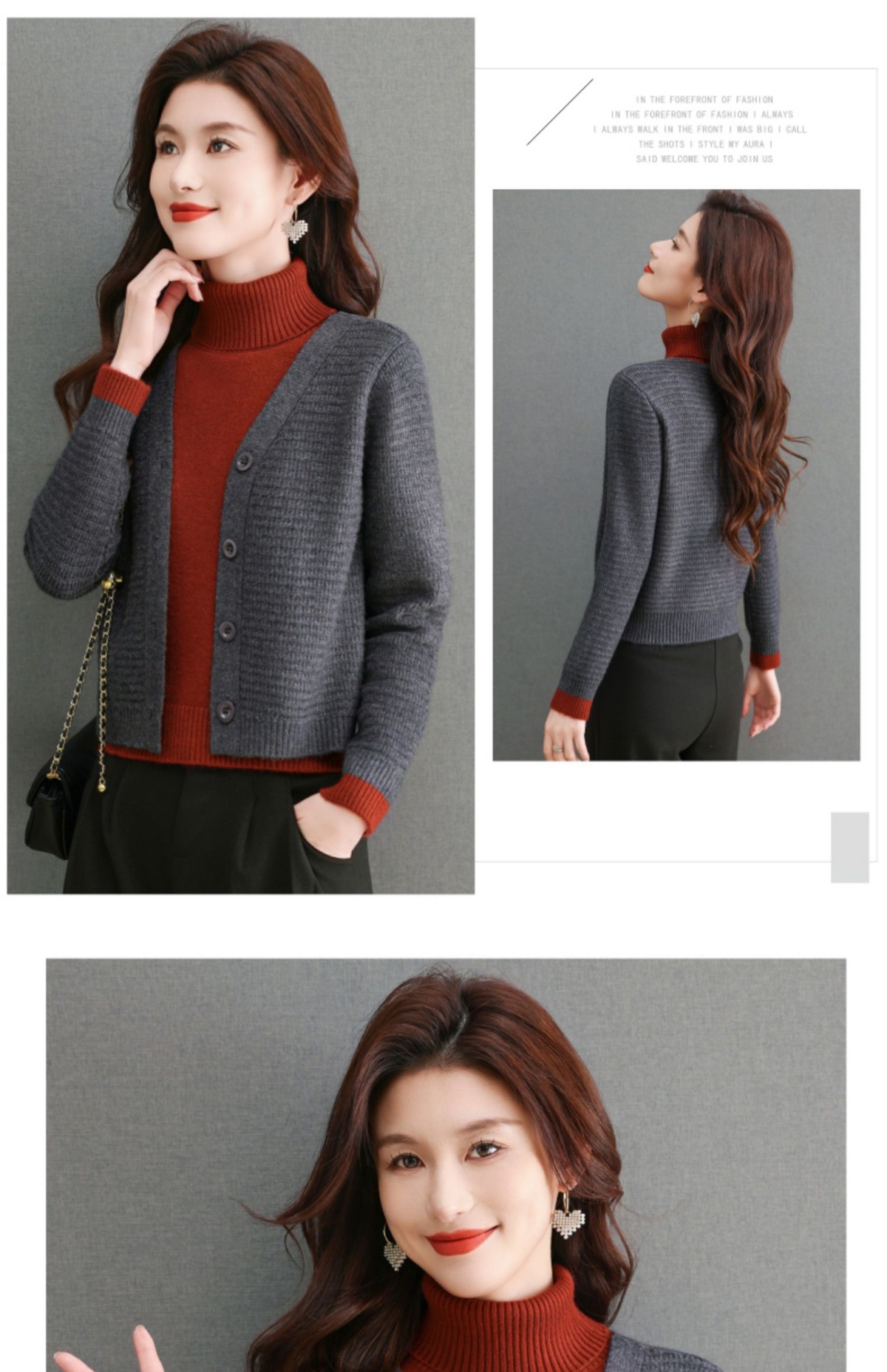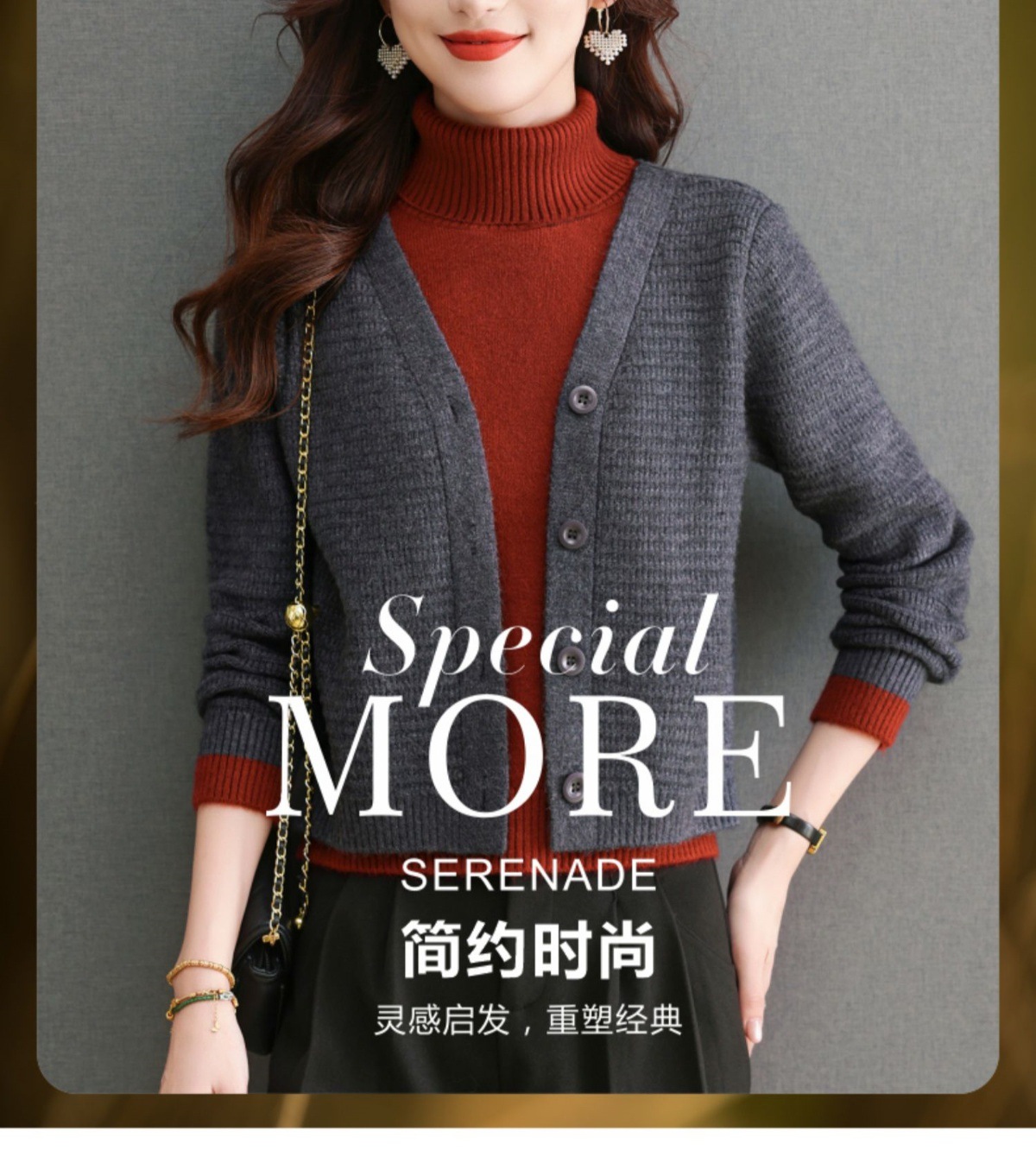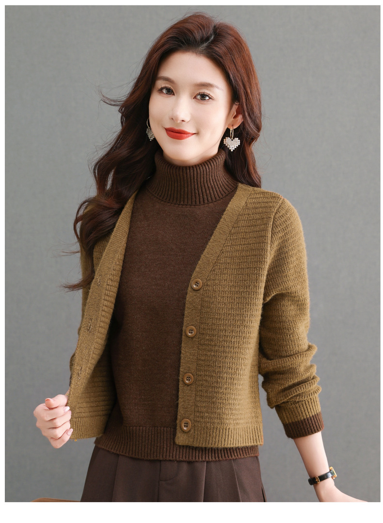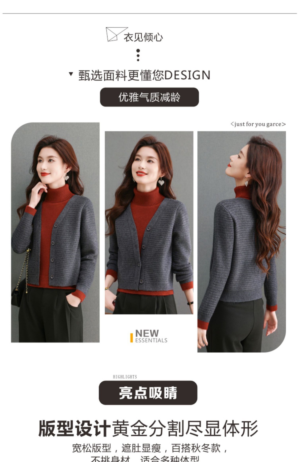CC-103-A986秋冬季新款深色显白高翻领针织衫毛衣设计感百搭叠穿上衣厚