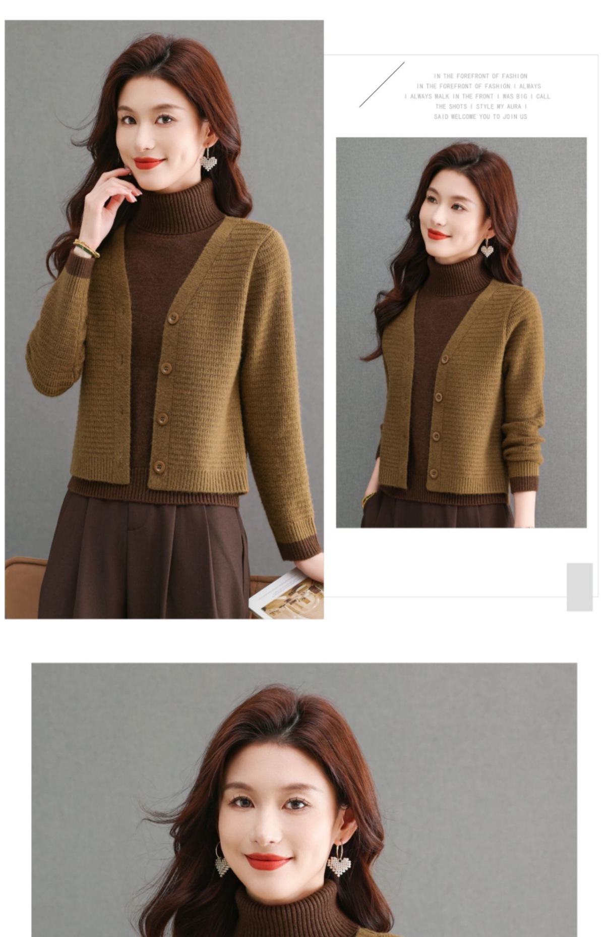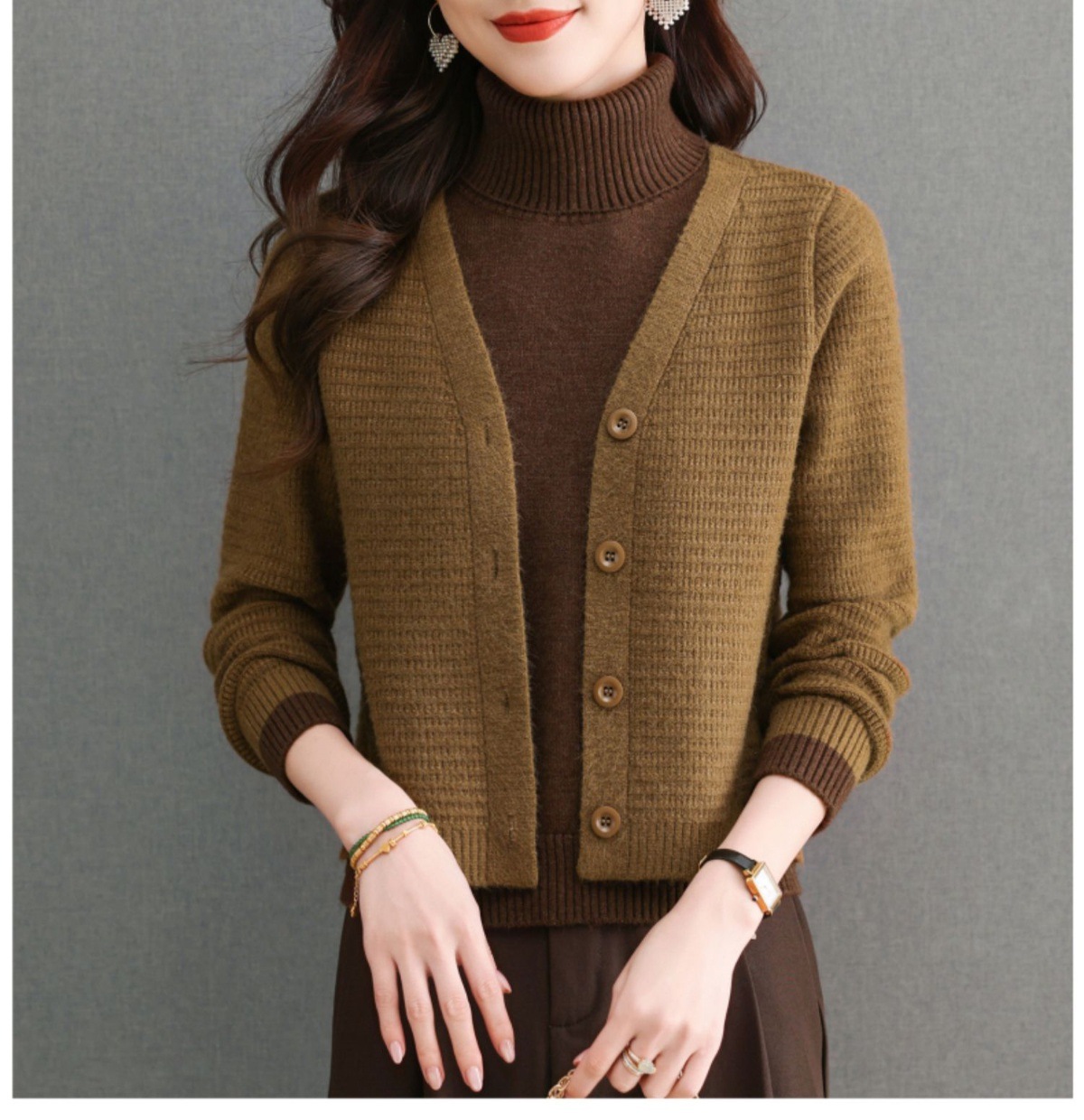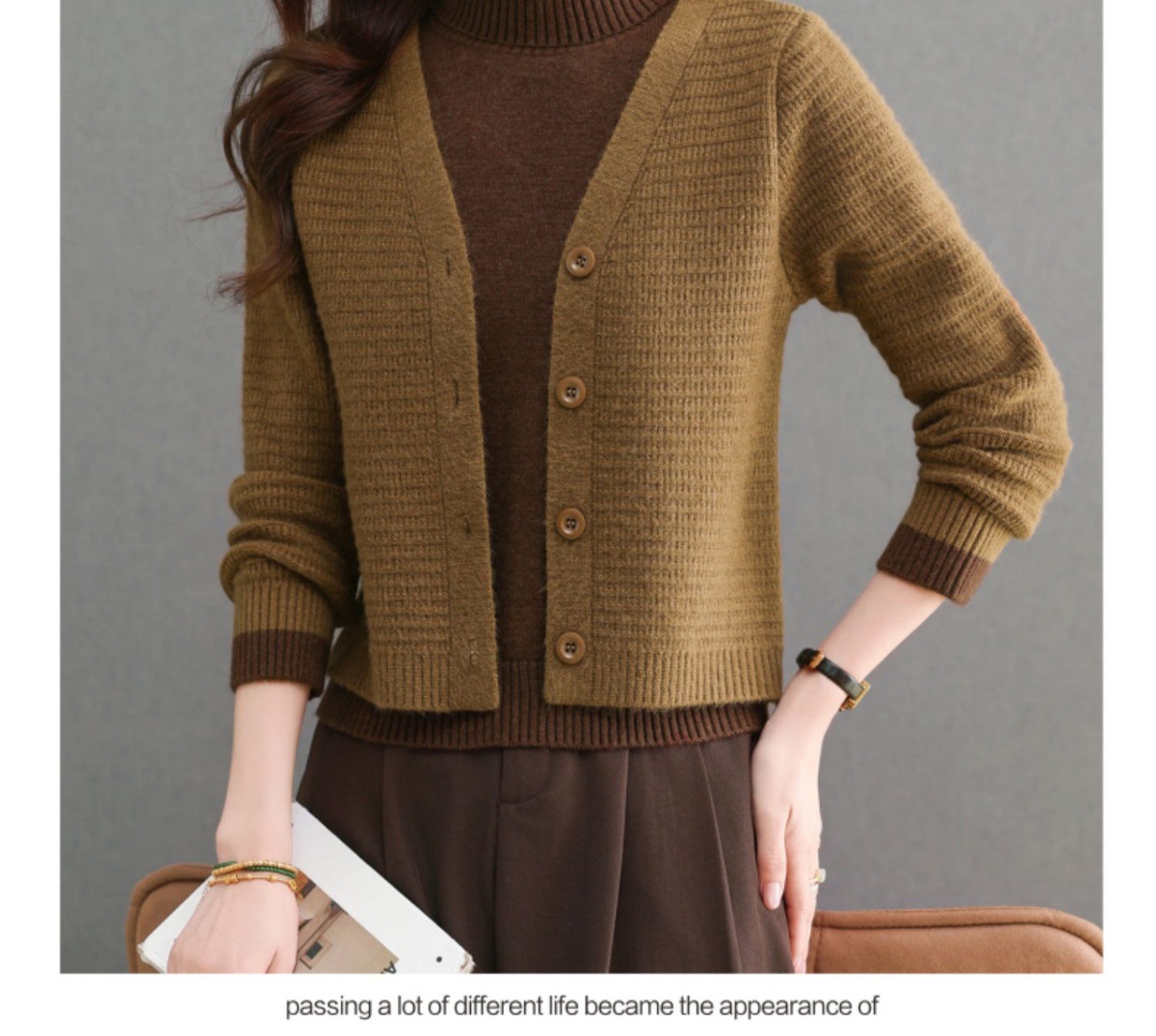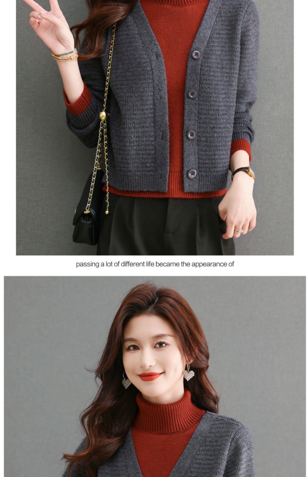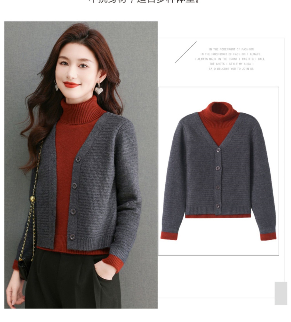 CC-103-A986秋冬季新款深色显白高翻领针织衫毛衣设计感百搭叠穿上衣厚