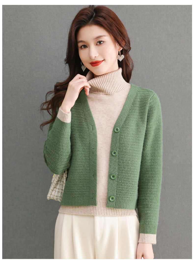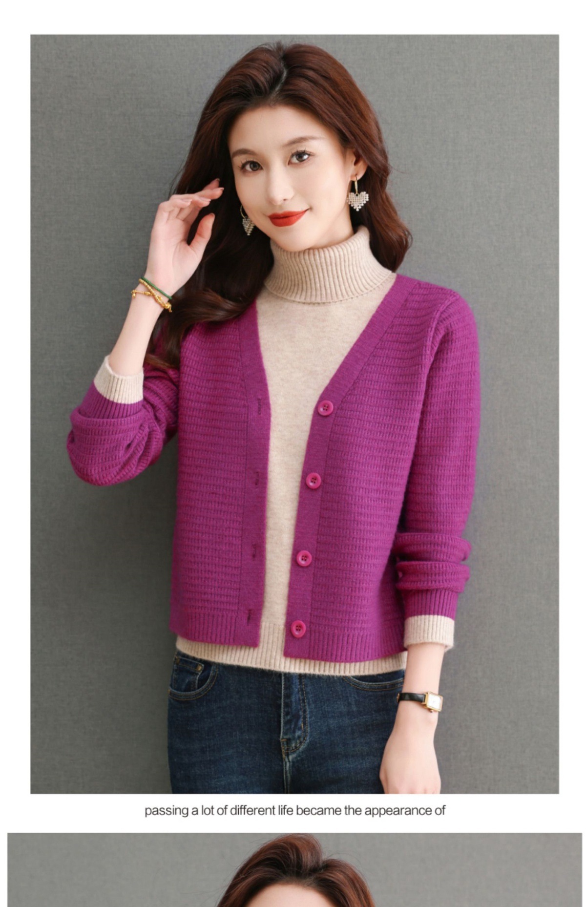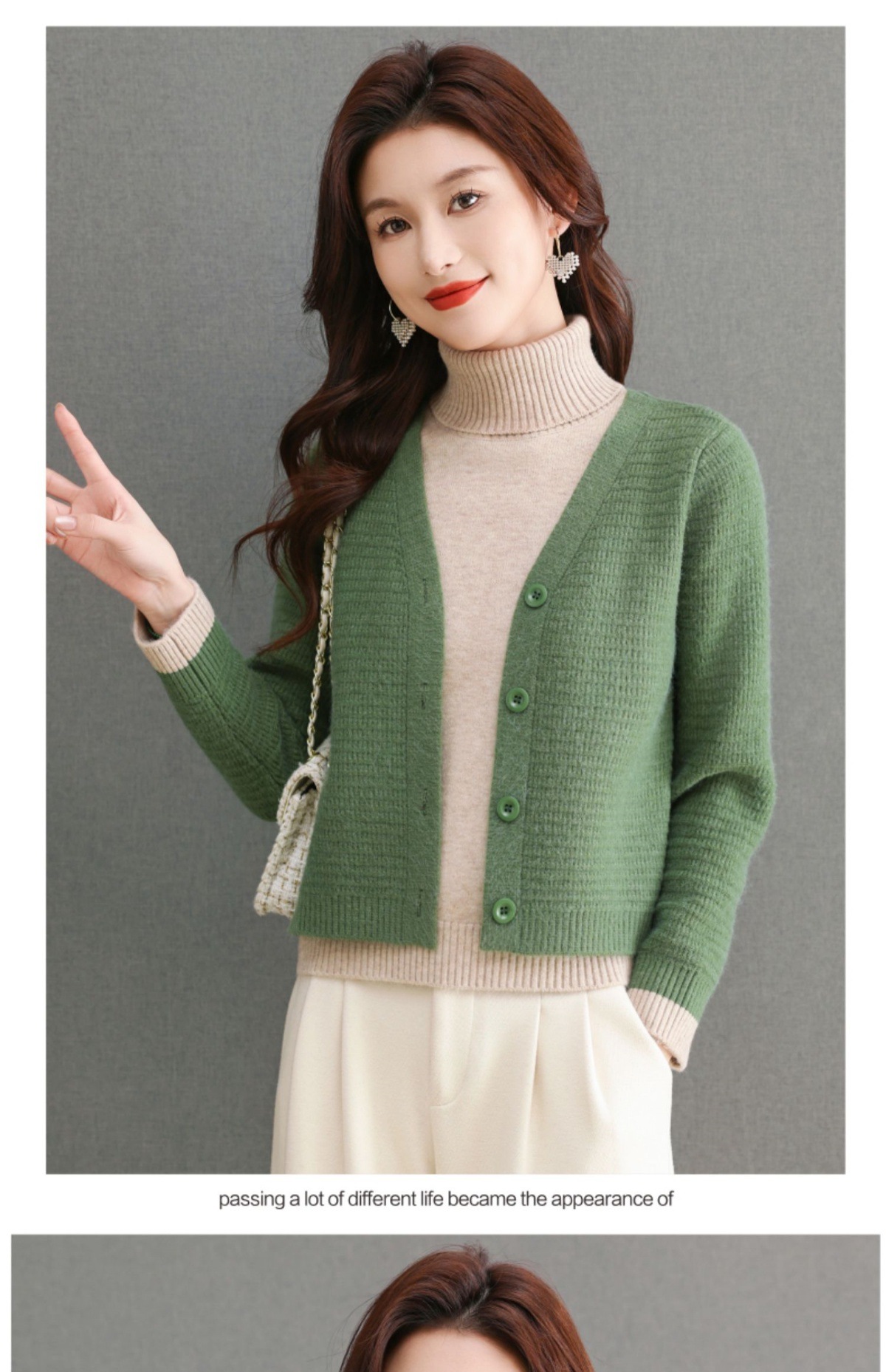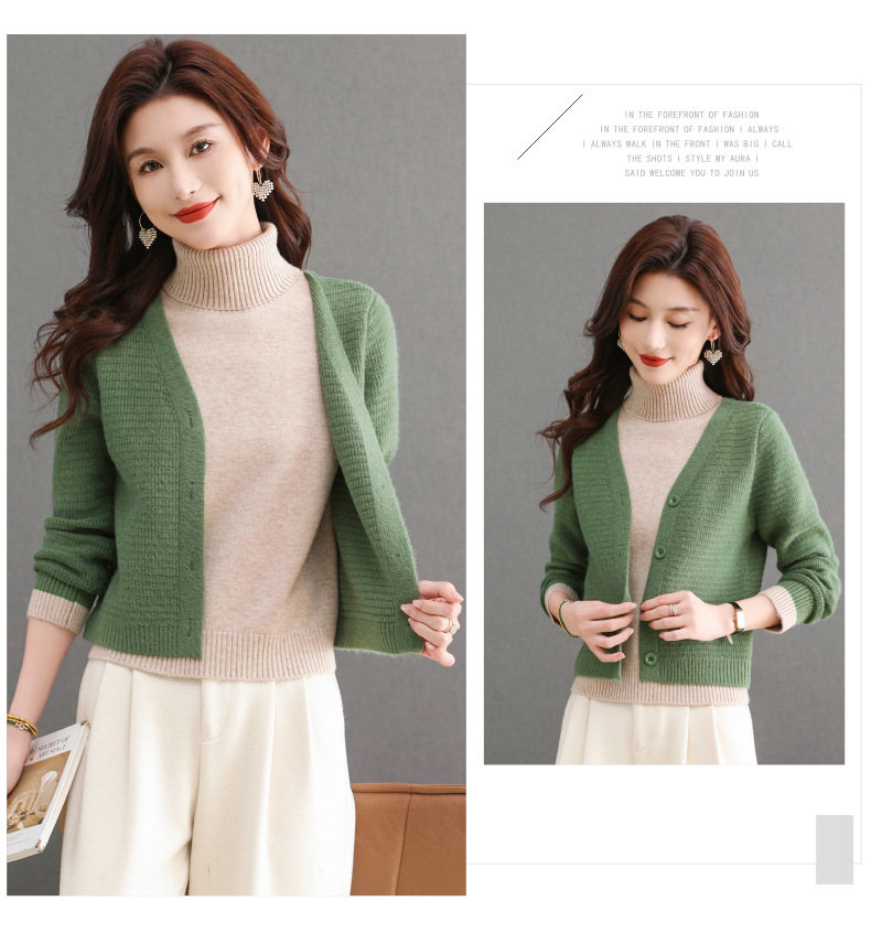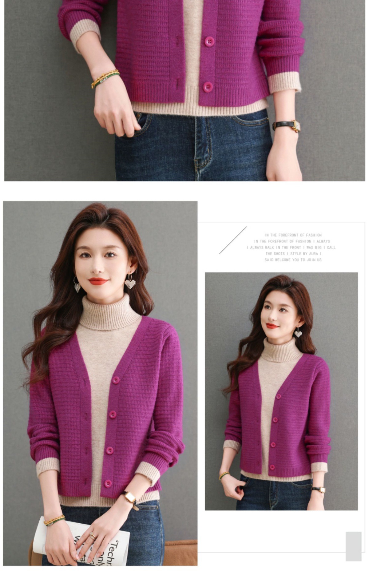 CC-103-A986秋冬季新款深色显白高翻领针织衫毛衣设计感百搭叠穿上衣厚