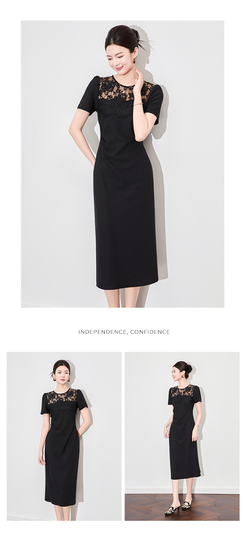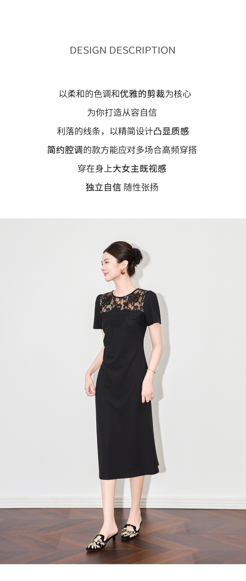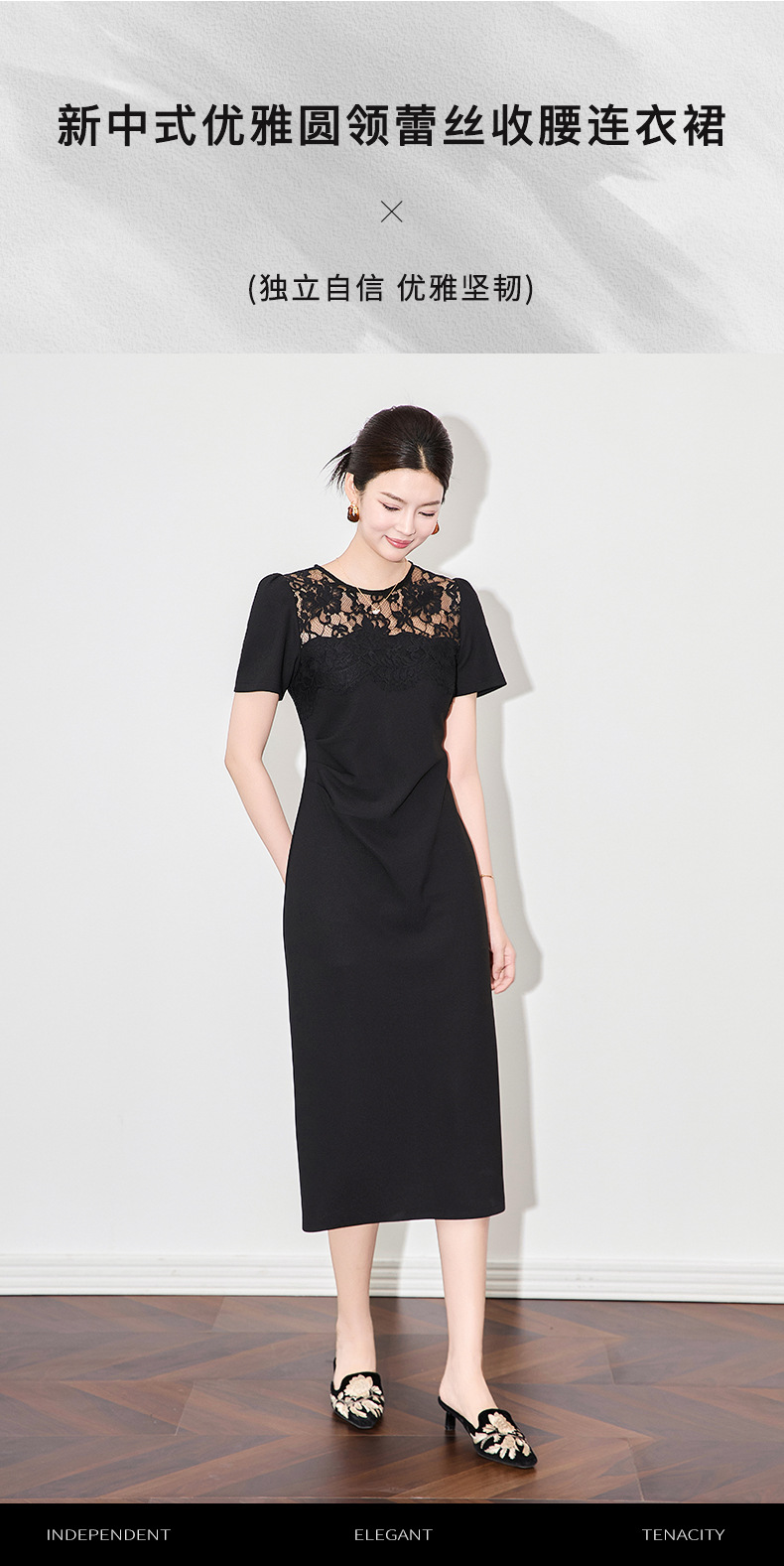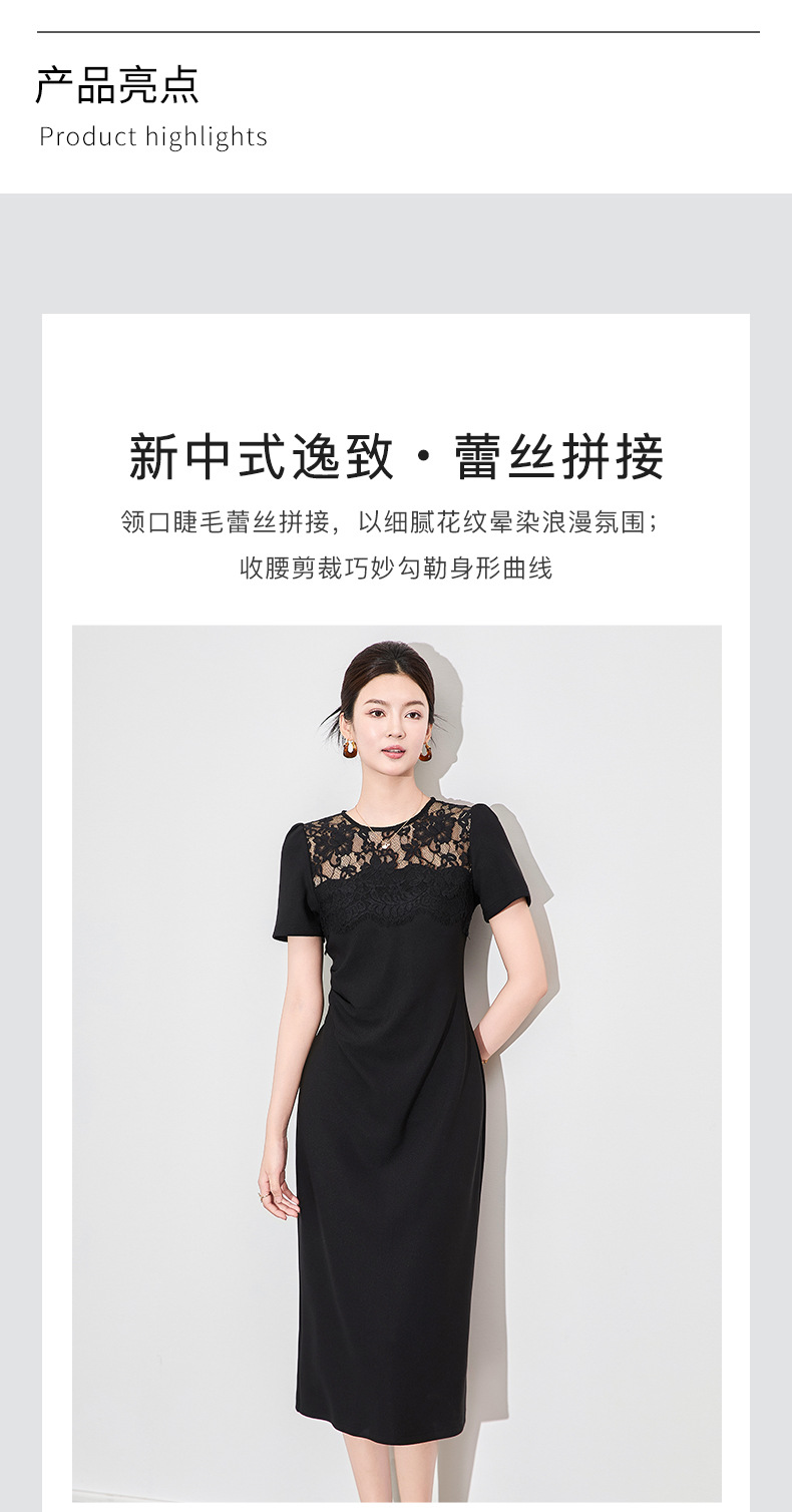「高货wl」全新升级【铂金会员284/天猫379/差价95】(44650)洛诗琳新中式时髦拼接蕾丝连衣裙2025夏季压褶收腰显瘦裙