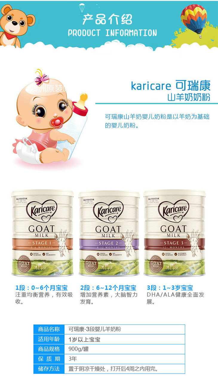 【海外直邮】Karicare 可瑞康 婴幼儿羊奶粉 3段 12个月以上 900克 新老包装随机发货