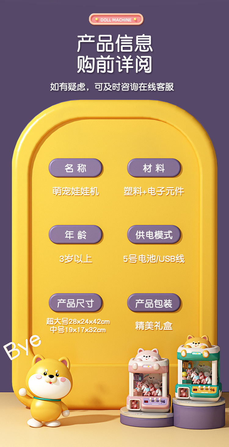 【足不出户,就能在家夹娃娃】高颜值柴犬抓娃娃机大号 可自行添加小玩具零食 儿童玩具家用迷你夹公仔扭蛋机 男女孩圣诞节礼物-QB