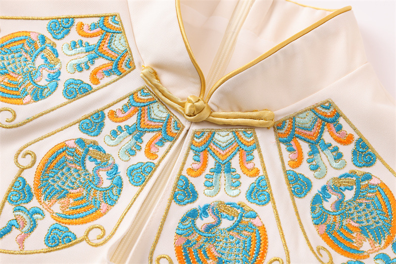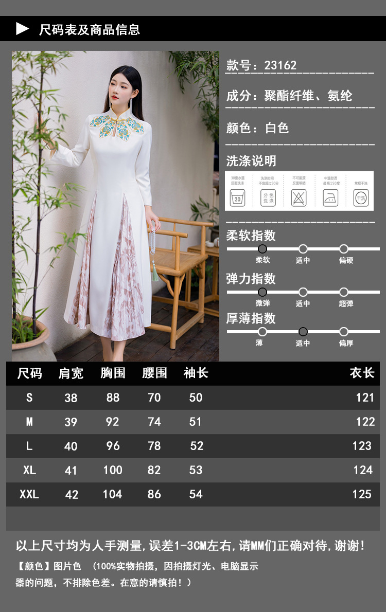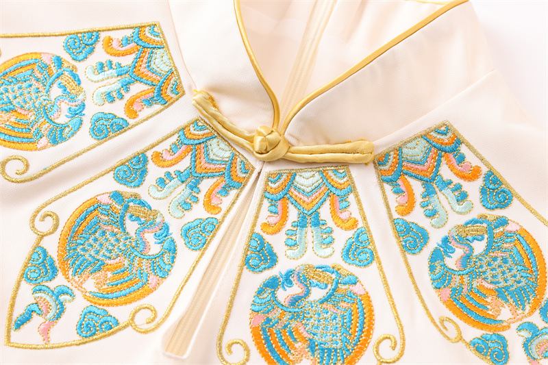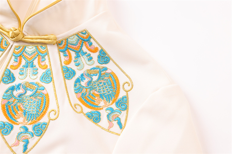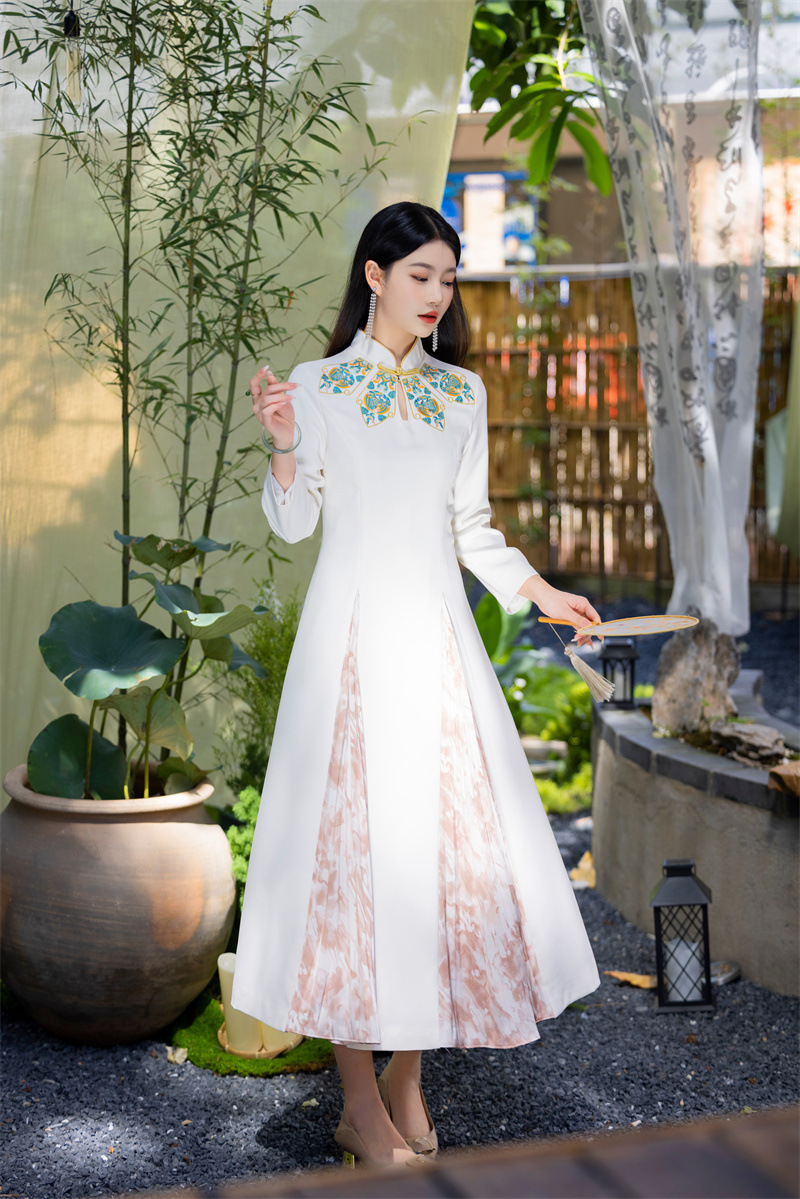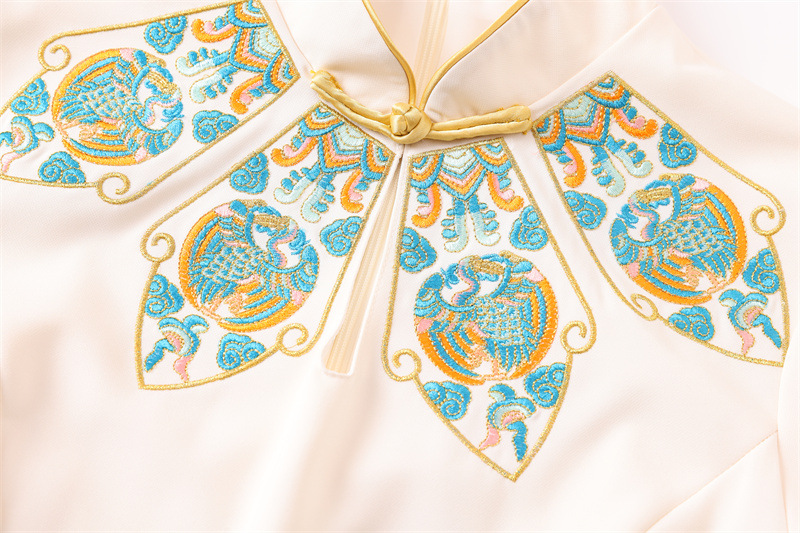 FLZD-23162波西米亚民族风刺绣花朵立领印花褶皱修身显瘦百搭长裙连衣裙女