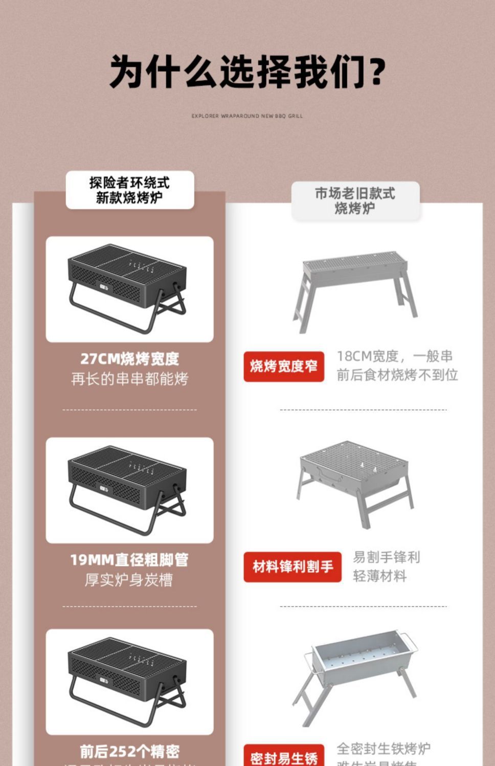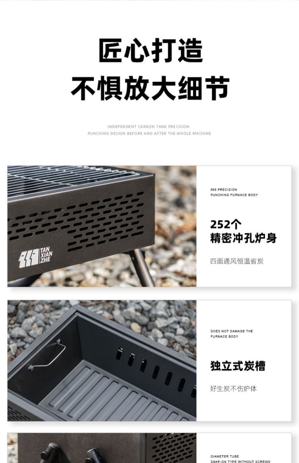 【匠心喷塑工艺❗️独立炭槽恒温省炭】户外烧烤炉子烧烤架可拆卸多功能烤肉折叠架子家用围炉煮茶碳烤炉。jb