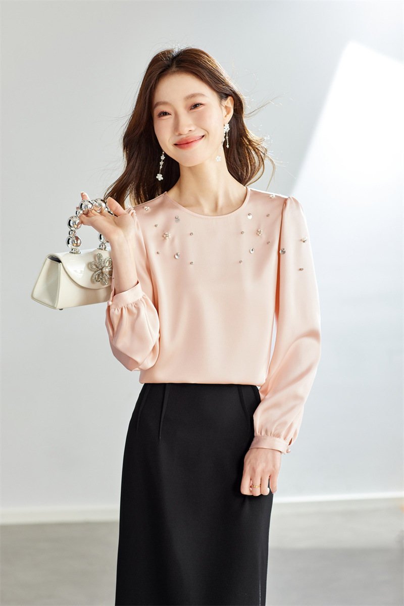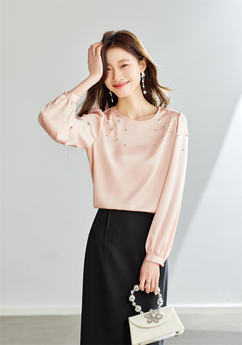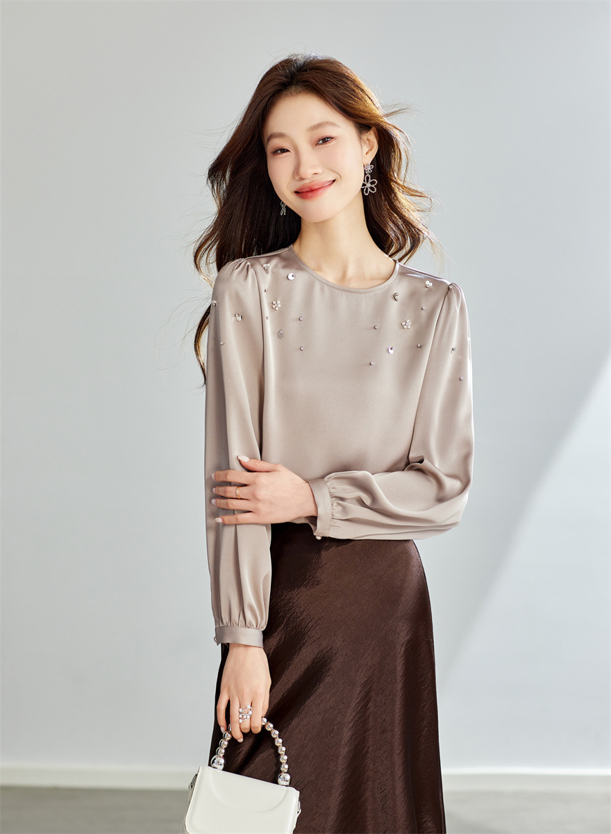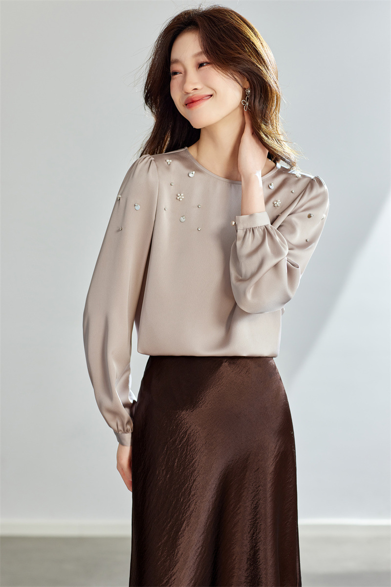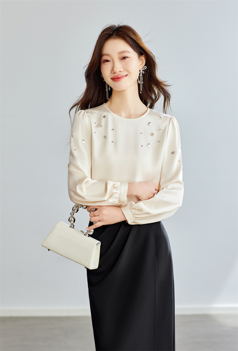 全新升级【铂金会员146/天猫199/差价53】(23349) 洛诗琳重工亮片钉珠衬衫2025春季新款气质圆领百搭雪纺上衣