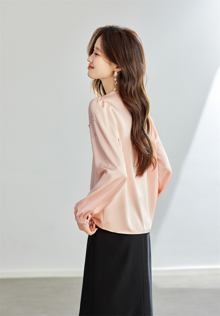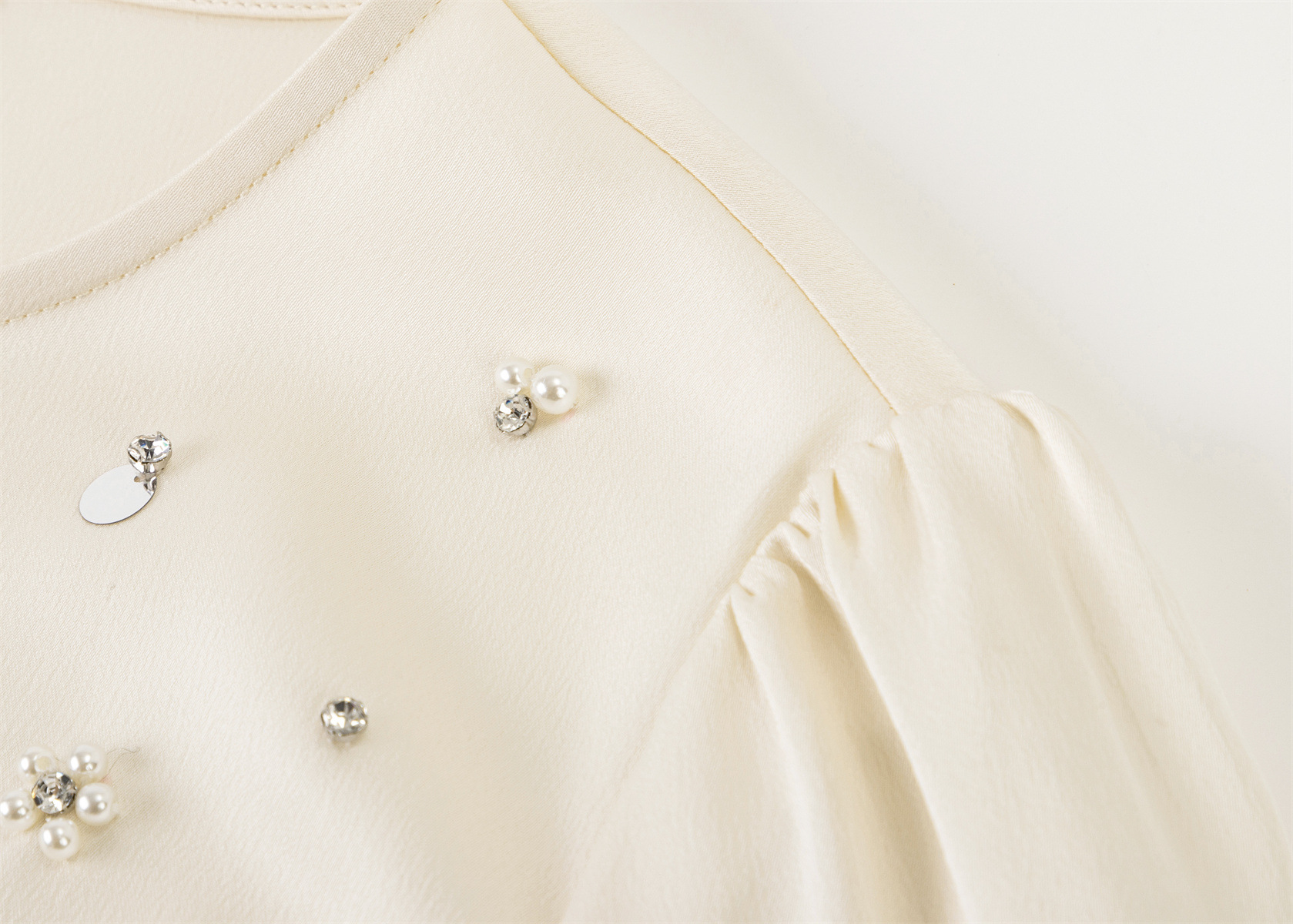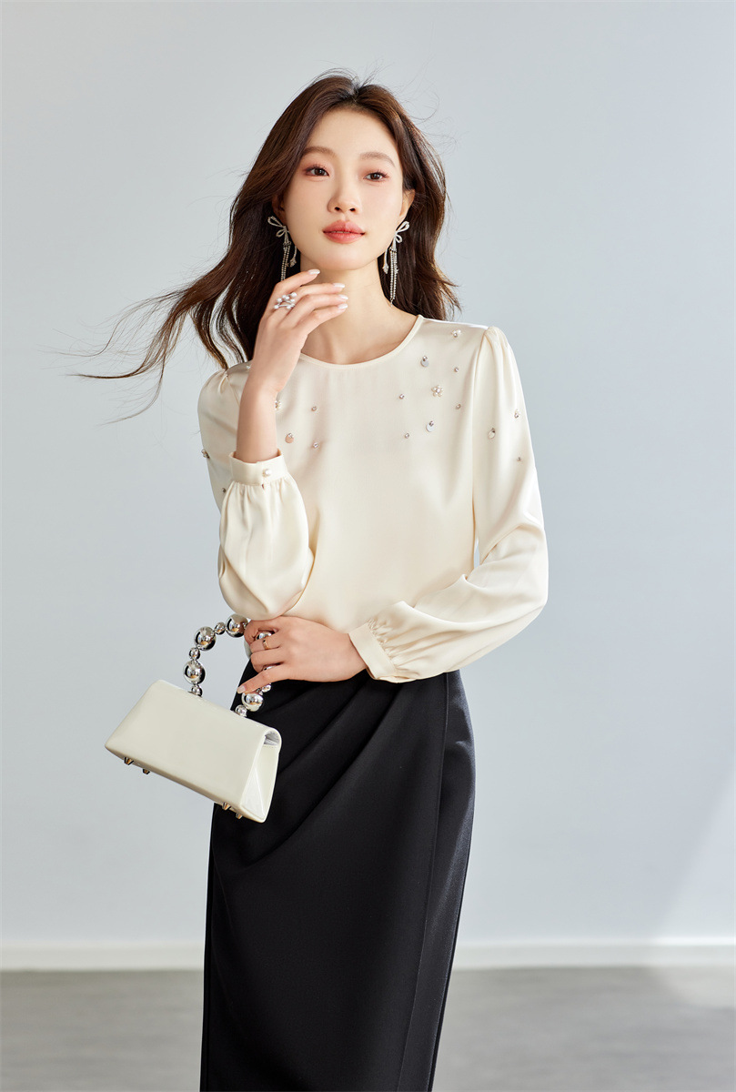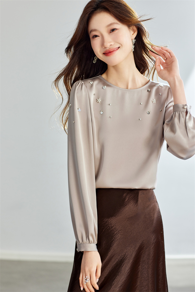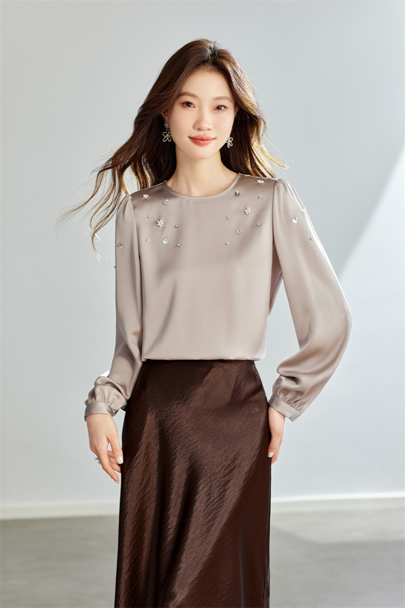 全新升级【铂金会员146/天猫199/差价53】(23349) 洛诗琳重工亮片钉珠衬衫2025春季新款气质圆领百搭雪纺上衣